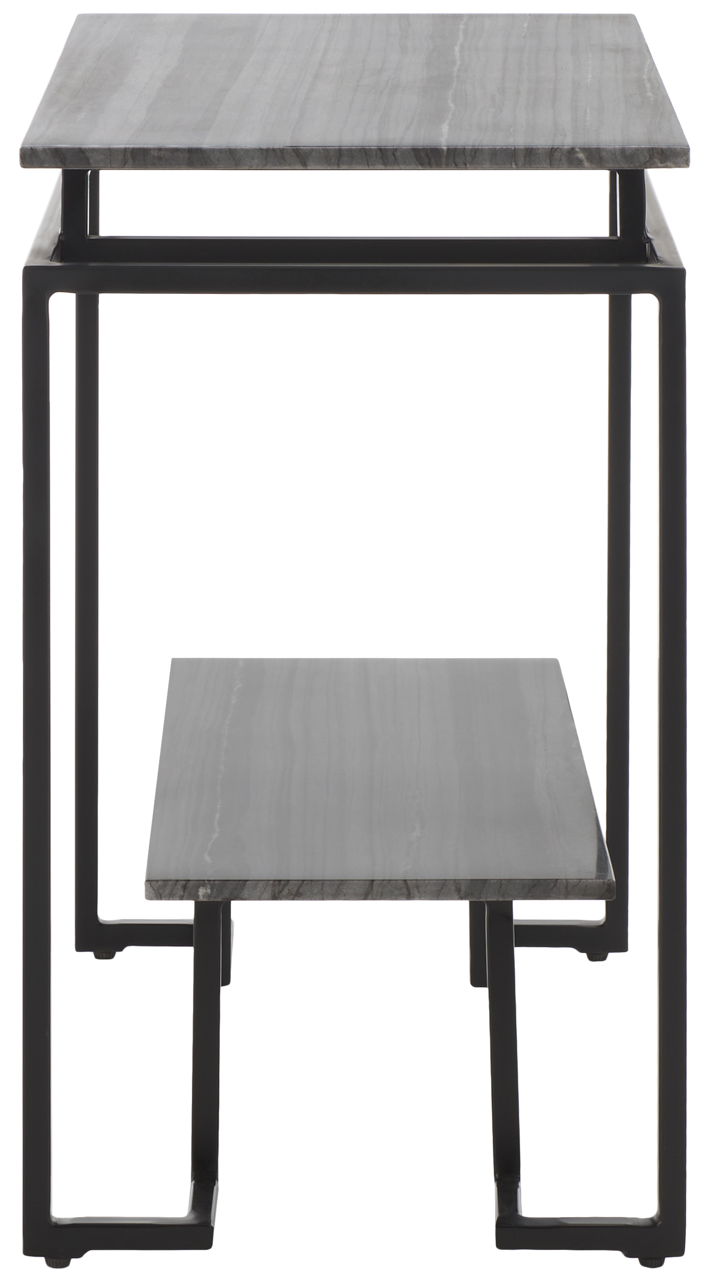 Upgrade your home with the sophisticated drama of our Guernica accent table. Our two-tiered table showcases a stunning, marquine black marble top. The ultra-slender and refined legs seamlessly flow to add drama to our modern table. Its metallic legs take a sweeping turn to beautifully afloat a marble shelf. Elegant and visually captivating, our accent table provides adequate space to display your decorative accents and keep your essentials within easy reach.