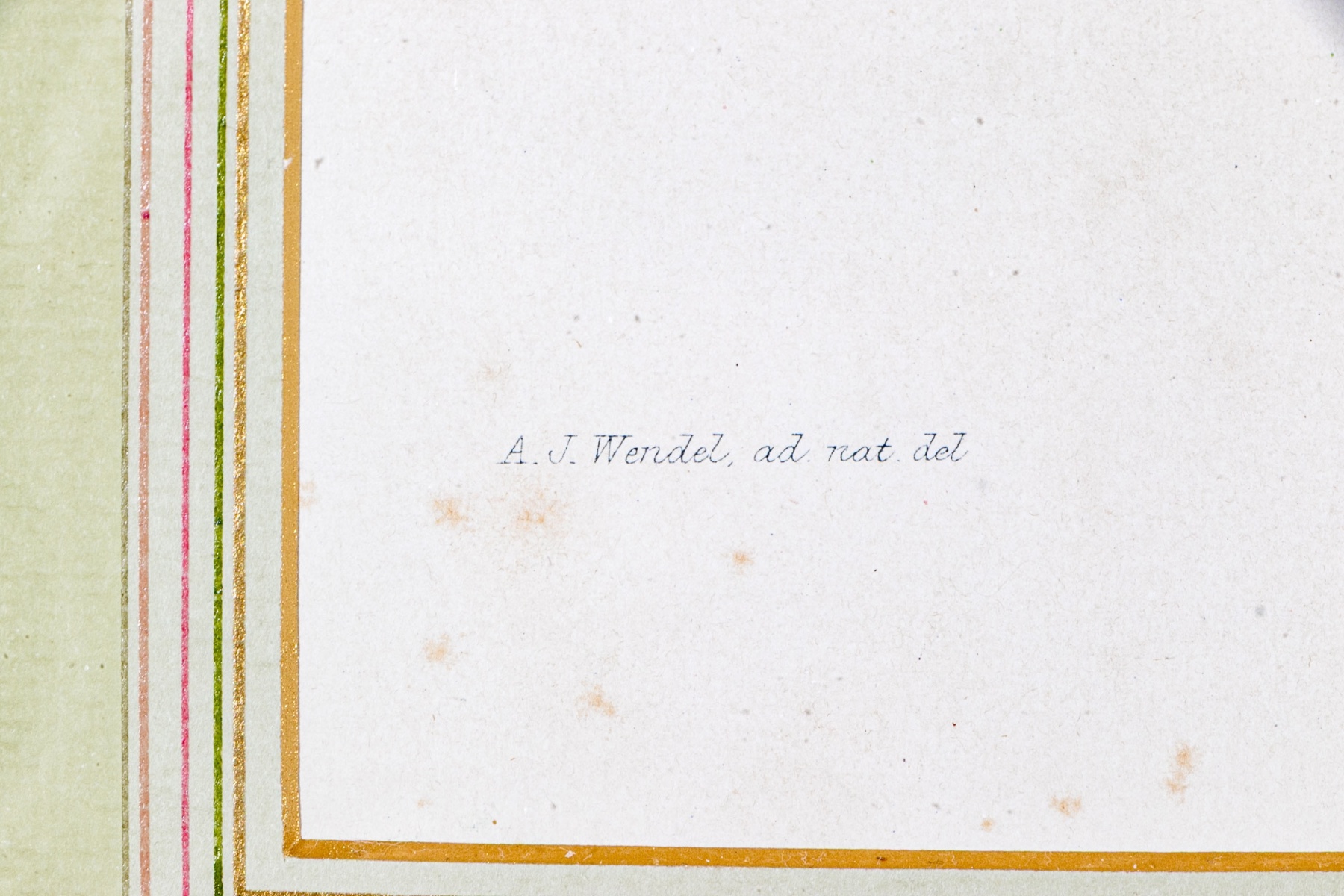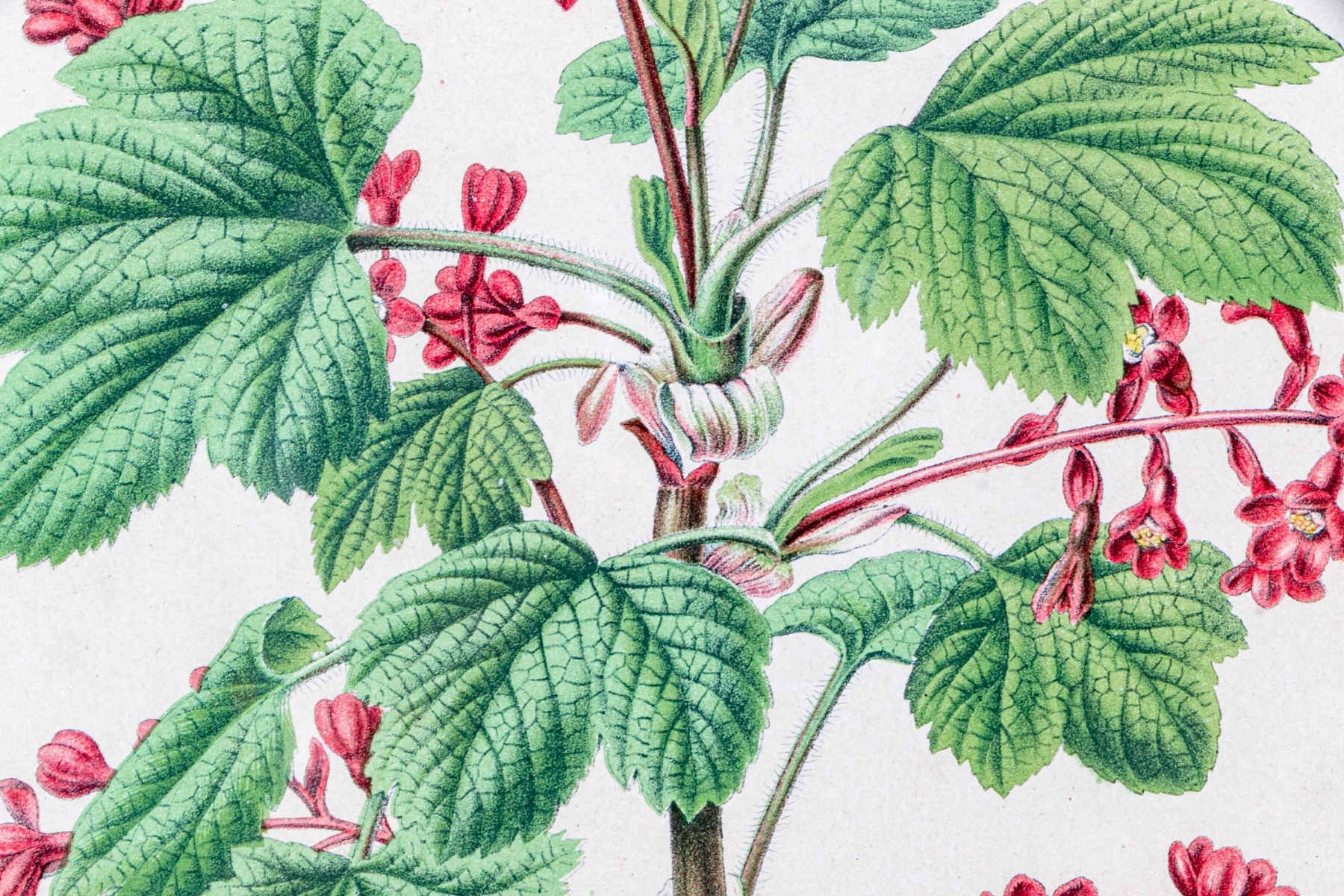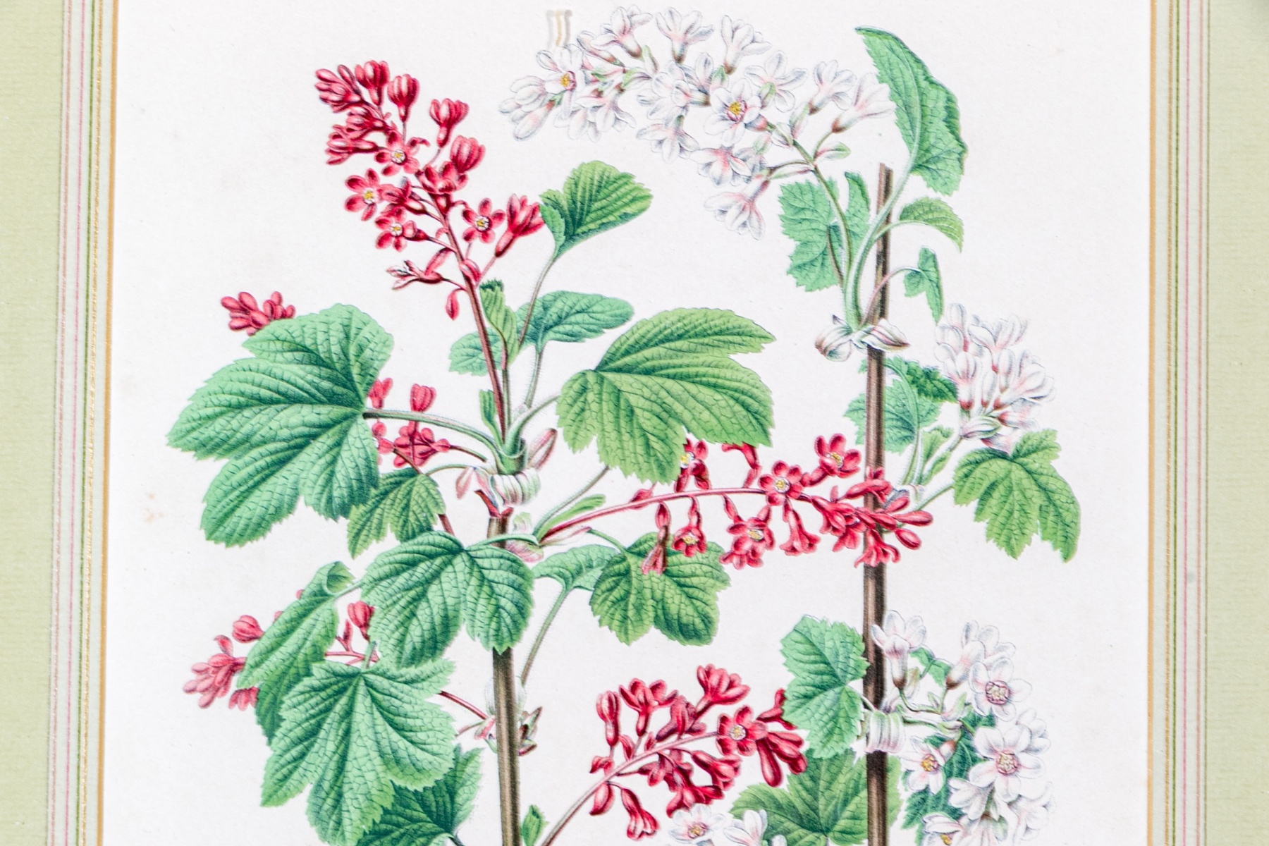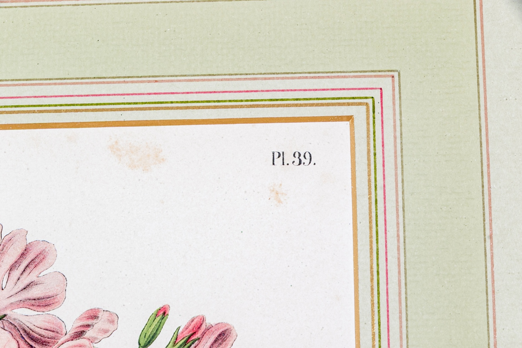 Guillaume Severeyns (Belgian, b. 1830) lithographs after the original artworks by Abraham Jacobus Wendel (Dutch, 1826-1915) "Rubes Sanguineum" depicting white and red flowers on tall, leafy stems and "Primula Cortusoides" depicting pink-red flowers with large green leaves.