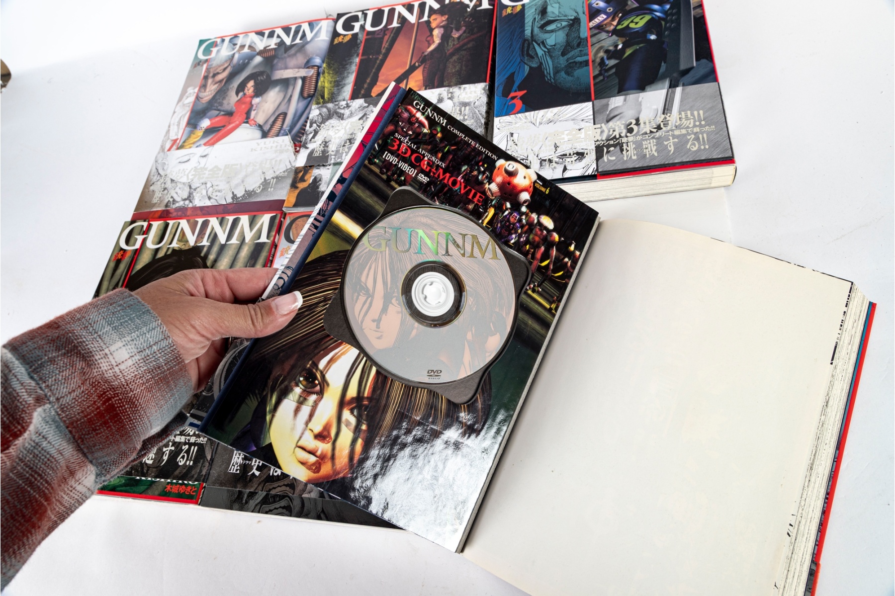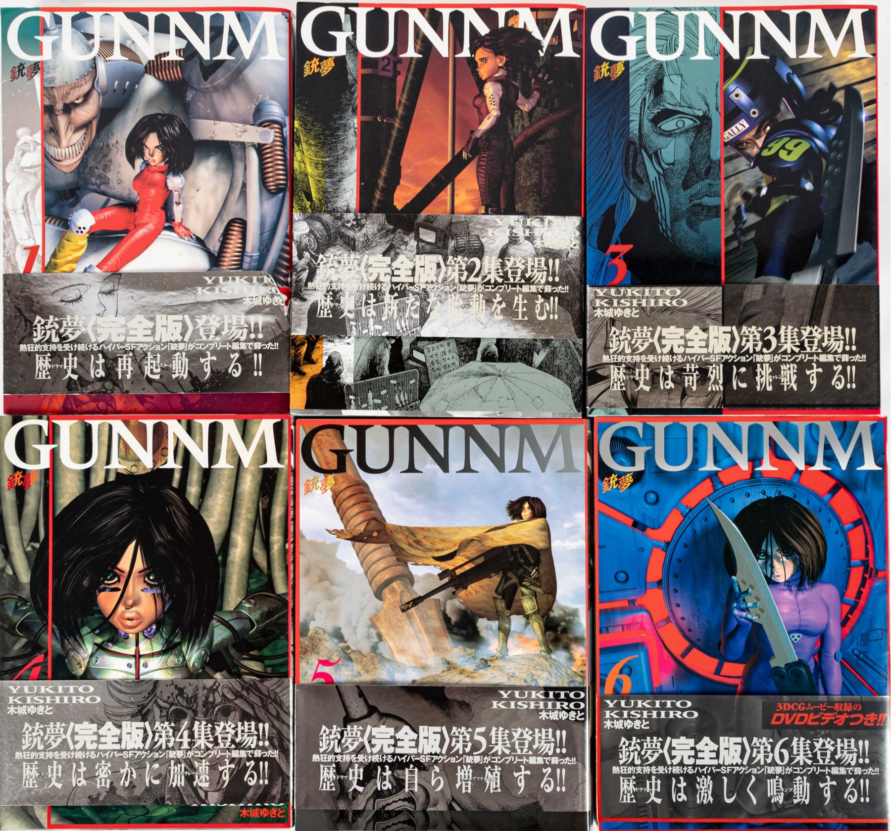 A complete six-volume set of Gunnm (Battle Angel Alita) by Yukito Kishiro, published in Japan. This striking collector’s set features full-size softcover volumes with vivid illustrated dust jackets and high-quality glossy pages. Volume 6 includes a special DVD featuring the 3DCG Gunnm Complete Edition short movie.