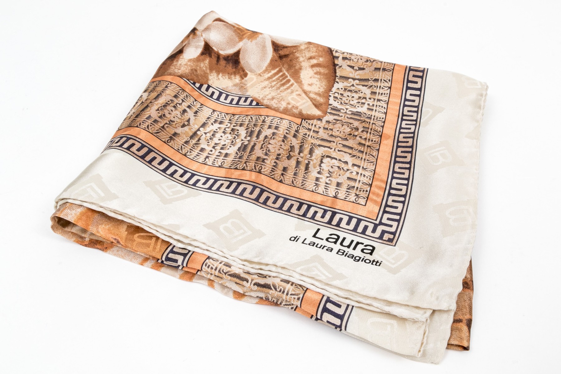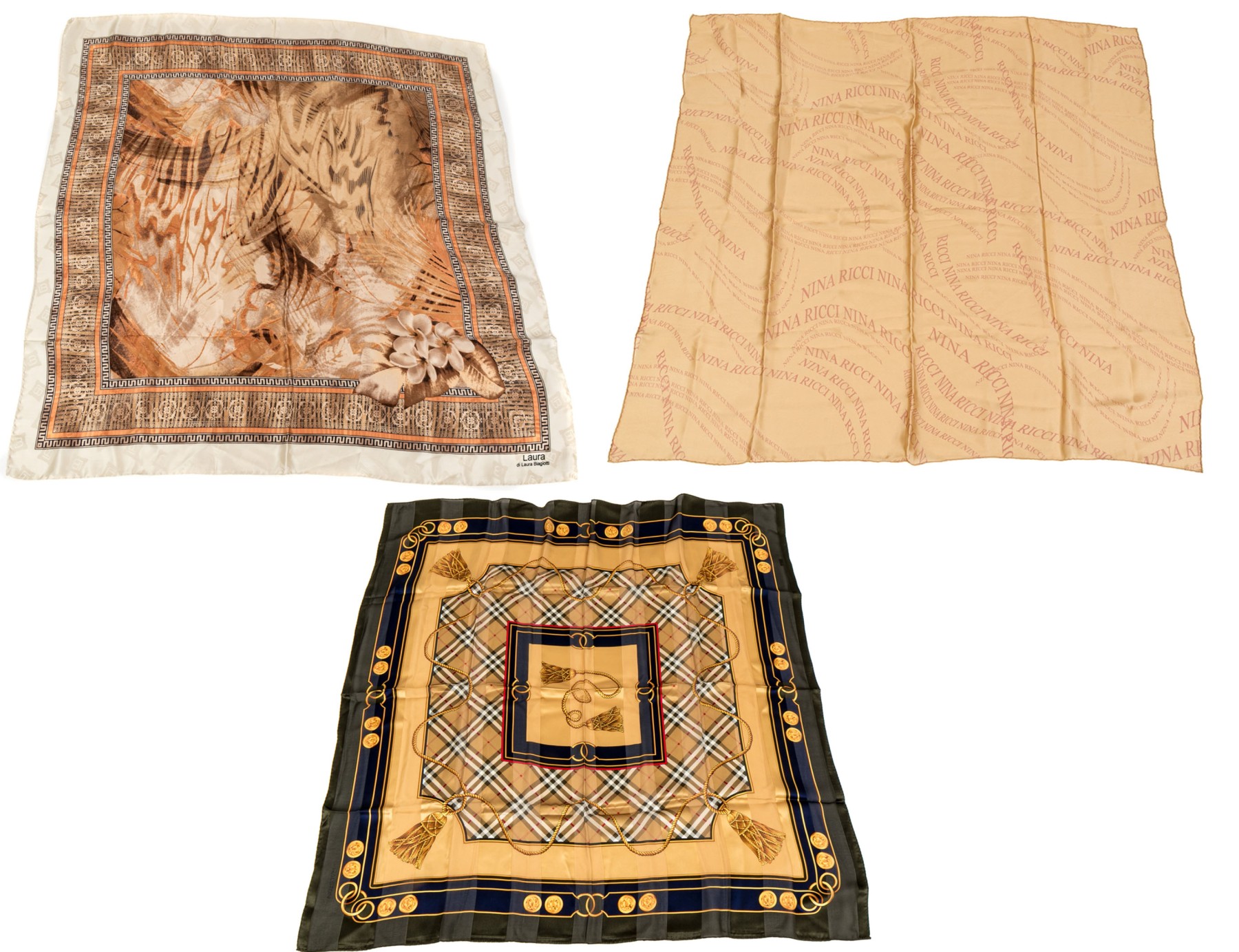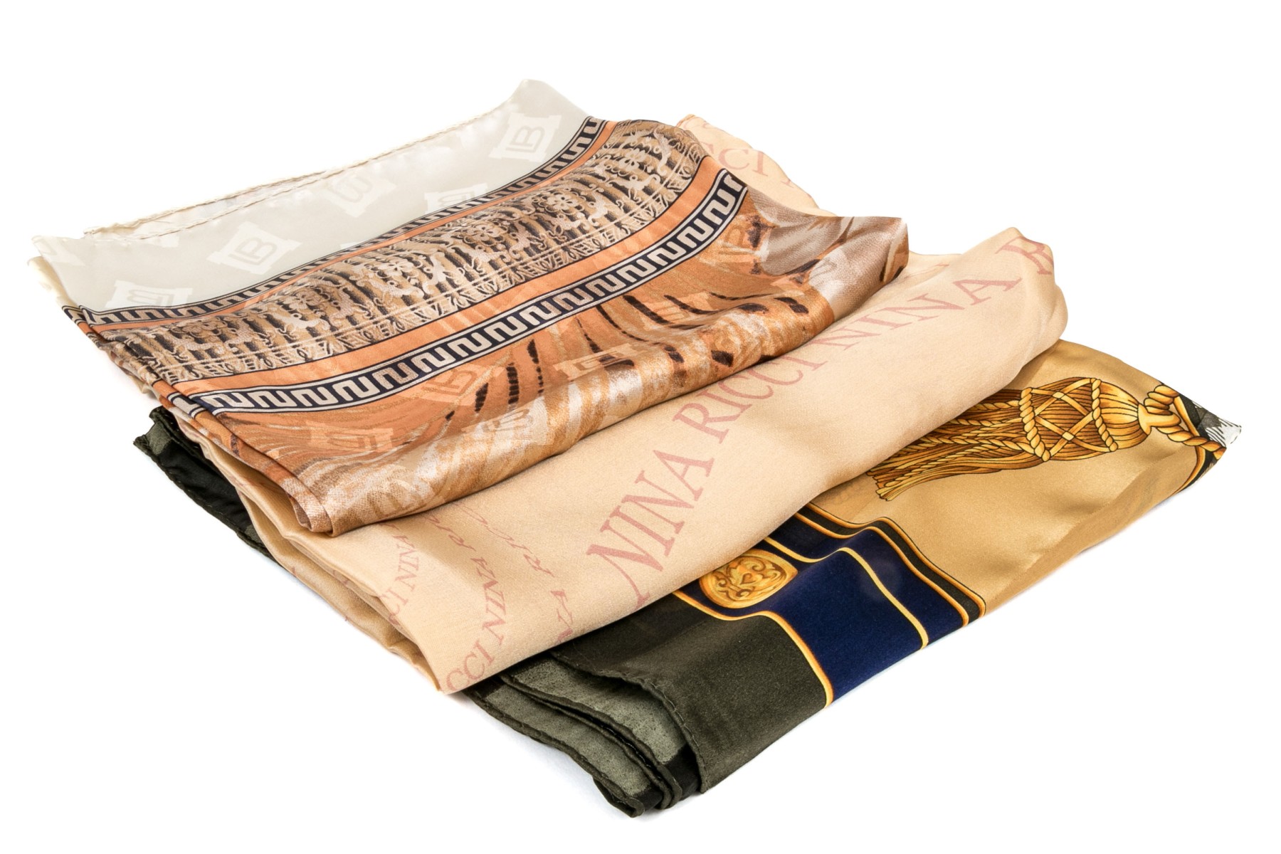 Halston, Nina Ricci, Laura Biagiotti lot of three pretty vintage silk scarves