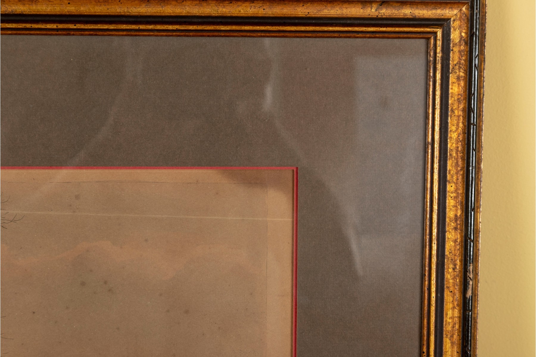 Both examples are presented in identical gold-tone frames, matted and faced with glass.