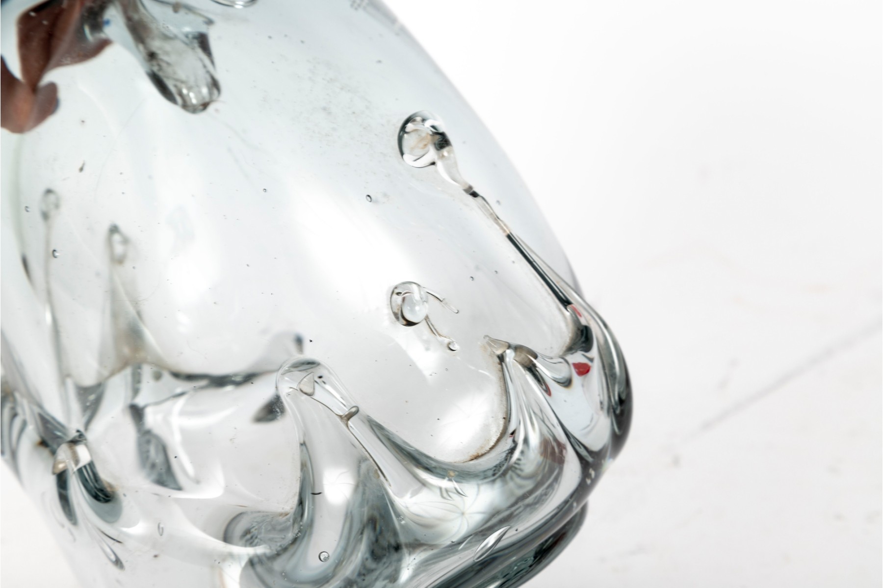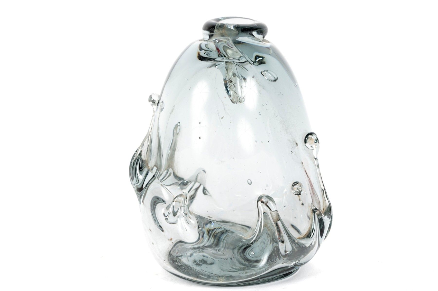 An unusual blown-glass vase. Substantial and dense, this decorative piece have organic swirls and splash-like reliefs. Unmarked -- no artist found.