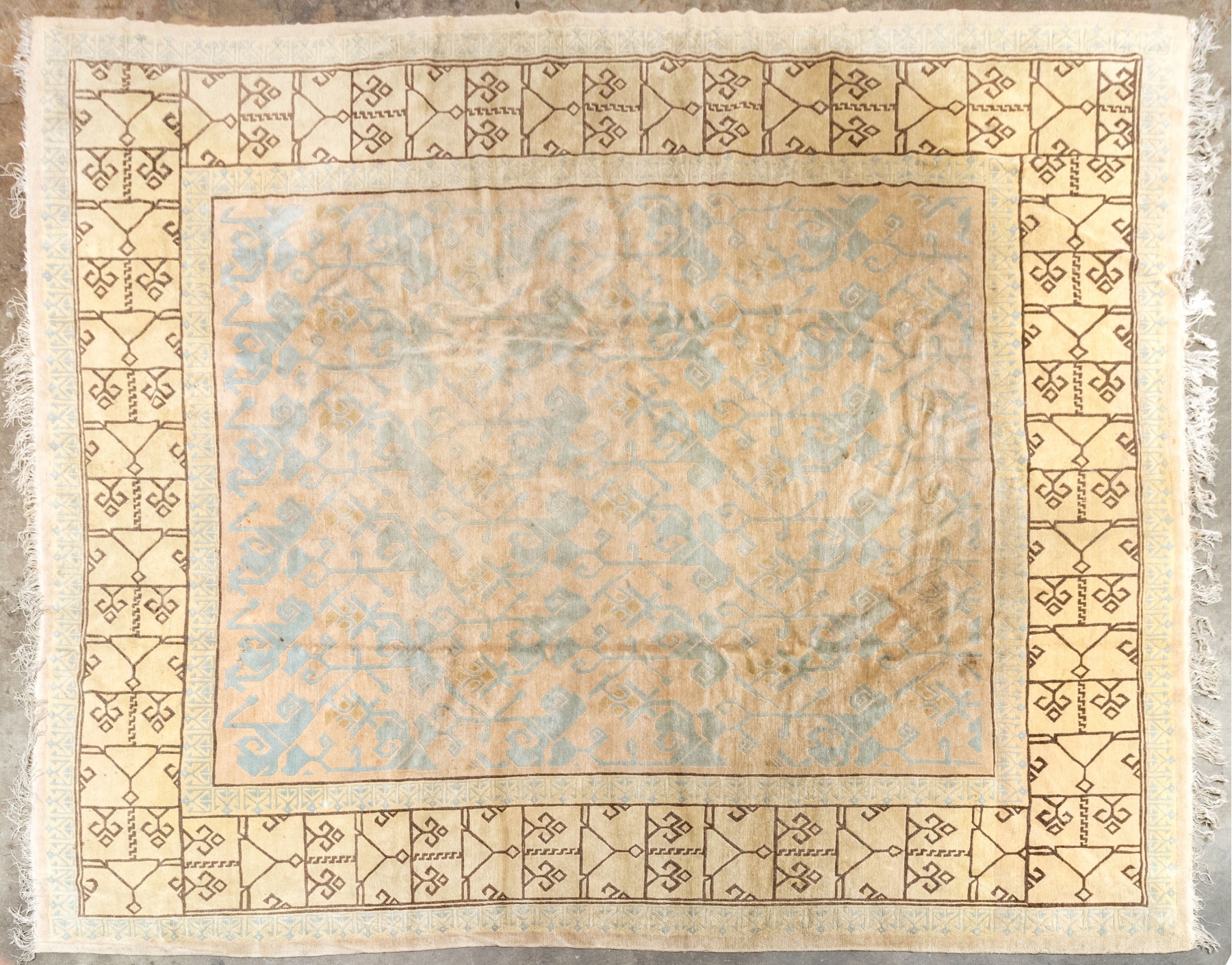 Losses to the trim, edges and fringe. Needs to be professionally cleaned.