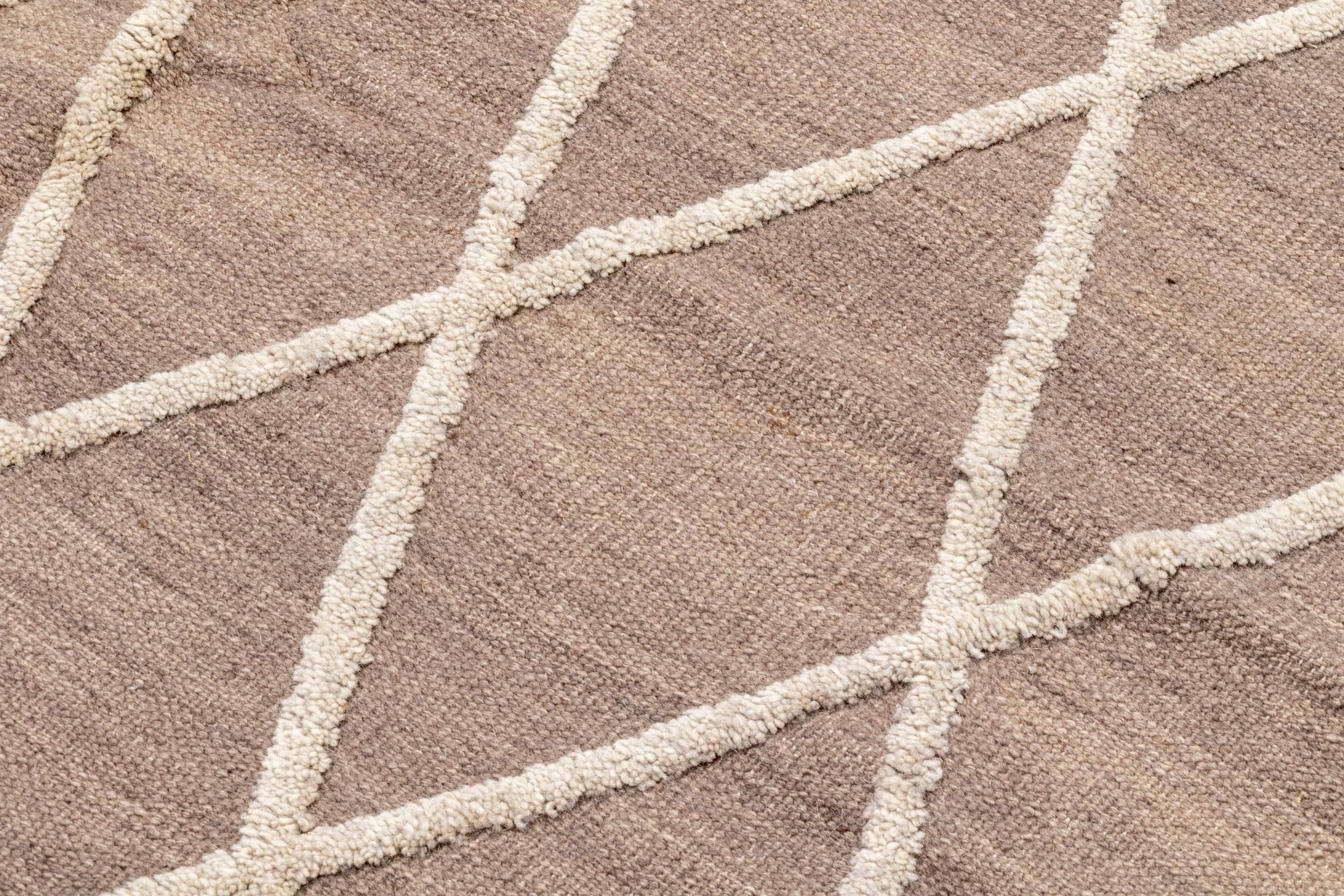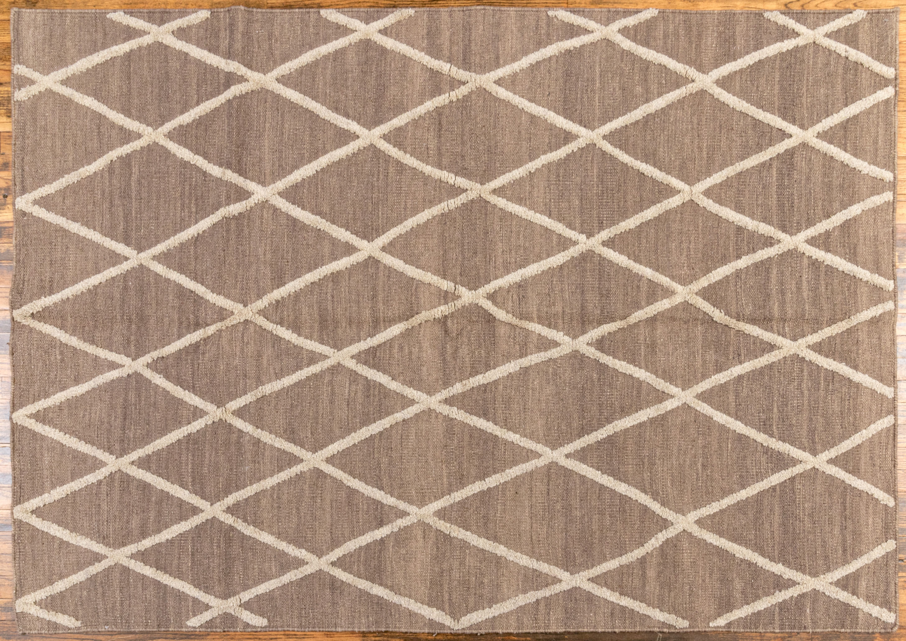 Awesome repeating diamond motif created by woven off white hued on warm earth tone ground.