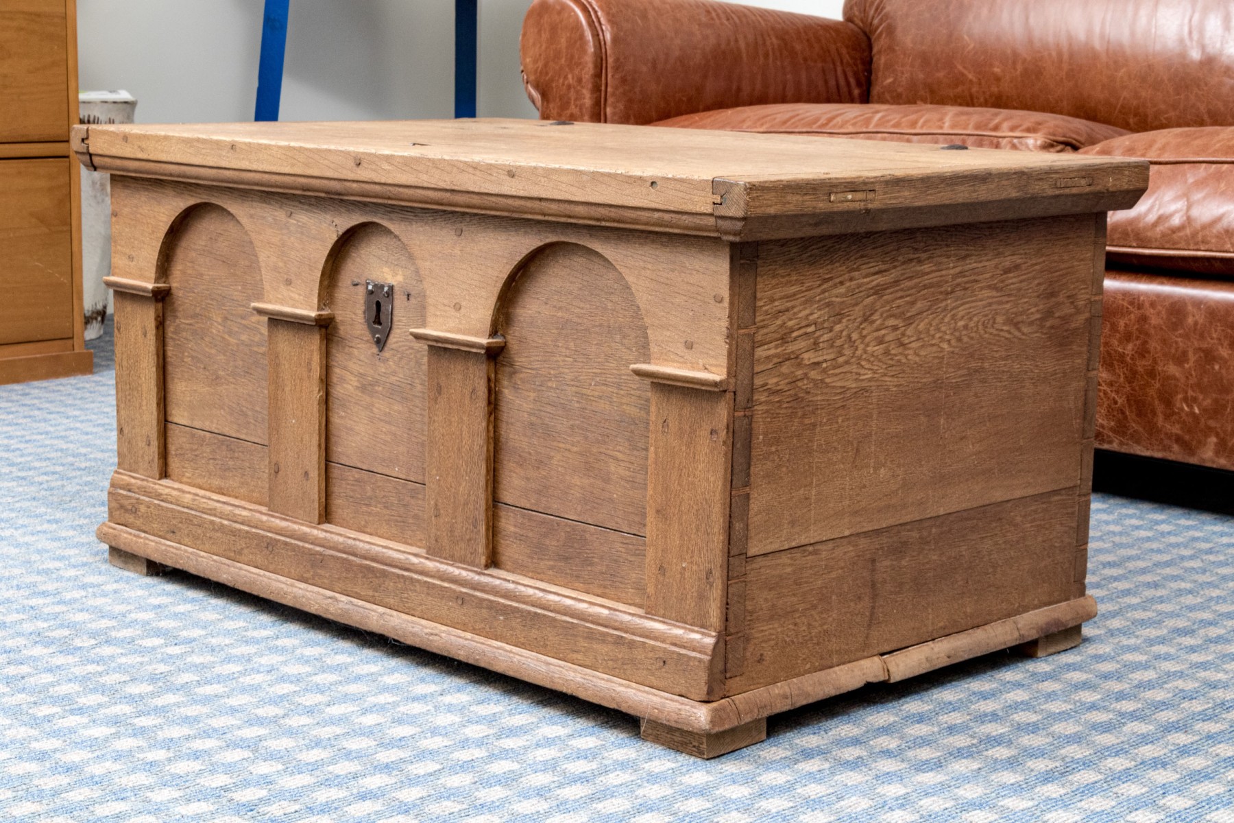 This wonderful antique storage chest is great for storage or for use as a coffee table! C 1780. Label inside. Purchased for $700 at Sheffield, MA antique store.