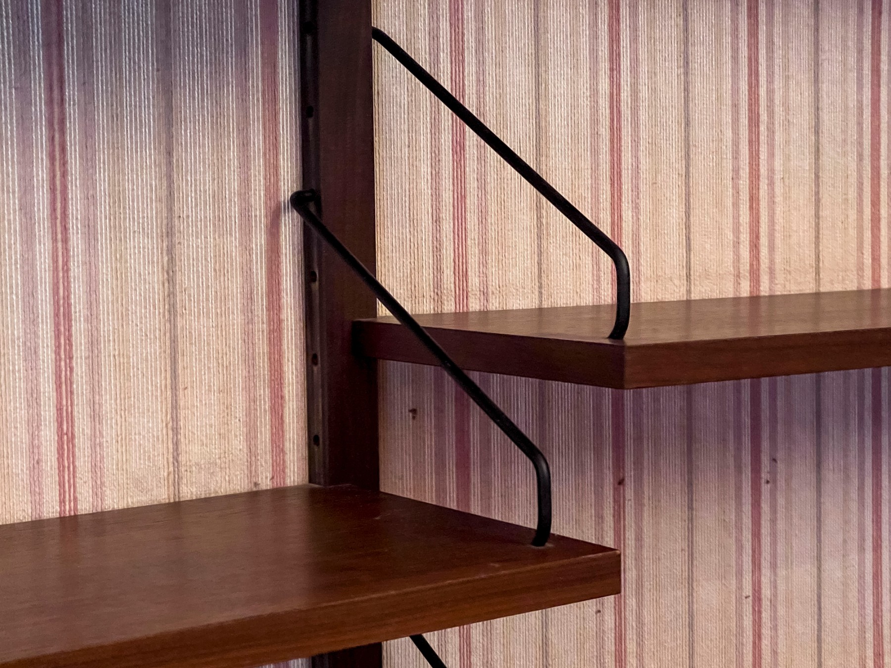 Includes 17 shelves with the first having four wall mounted brackets and the second with two brackets and three shelves.