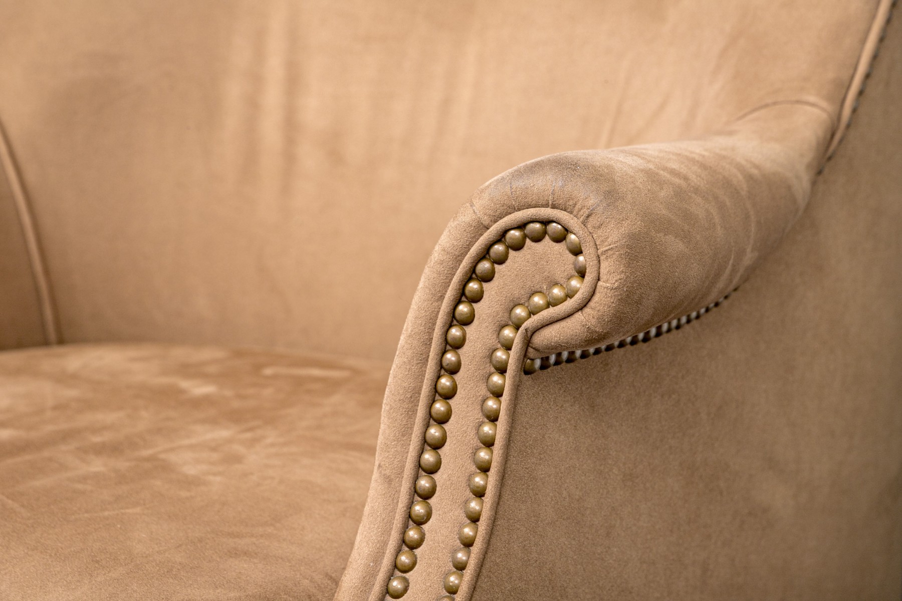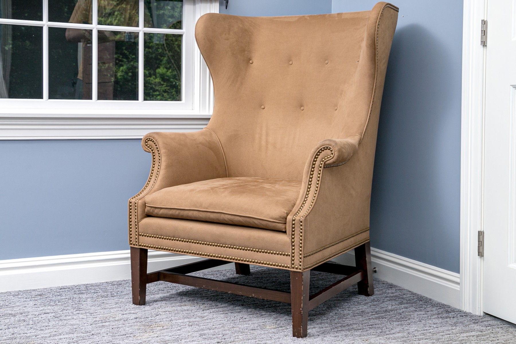 Handsome Suede Wingback Chair #325405. Black Rock Galleries provides high end estate liquidation services through online estate auctions and a 50,000 sq ft designer showroom. estate liquidator, estate sale, online auction, antiques, fine art, liquidation, clean outs, auction, consignment, interior design, fine jewelry, collectibles, appraisals, estate appraisals, estate services, decor, furniture, furniture consignment, antique center, consignment shop. We offer appraisal services and specialize in fine art, jewelry, antiques and decorative arts. Sell with us. Black Rock Galleries is the tri-state's largest estate liquidator serving New England and the greater New York City area. We are the trusted source for expert appraisals, auction services, estate sales, and consignments. Black Rock Galleries is the east coast's largest and most trusted estate liquidator, with locations in Connecticut, greater Boston, MA and Raleigh, NC, Fairfield, Southport, Apex, TX. We are the best source for expert appraisals, auction services, estate sales and consignments. We have served thousands of families and estates with compassion, professionalism and expertise. BRG works with attorneys, executors, realtors and families to bring the greatest return on personal and estate property in the current market. Our unique combination of services make us the easy choice to get the job done in a timely and stress-free manner. We are with you from the initial consultation to the final clean out. Our house-built online auction software platform offers clients a dynamic approach to liquidating their personal property. This venue is most successful in bringing the best return with the least amount of disruption for our clients. See our services page for a complete description of this offering. Handsome Suede Wingback Chair #325405