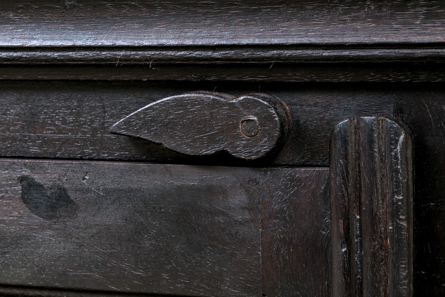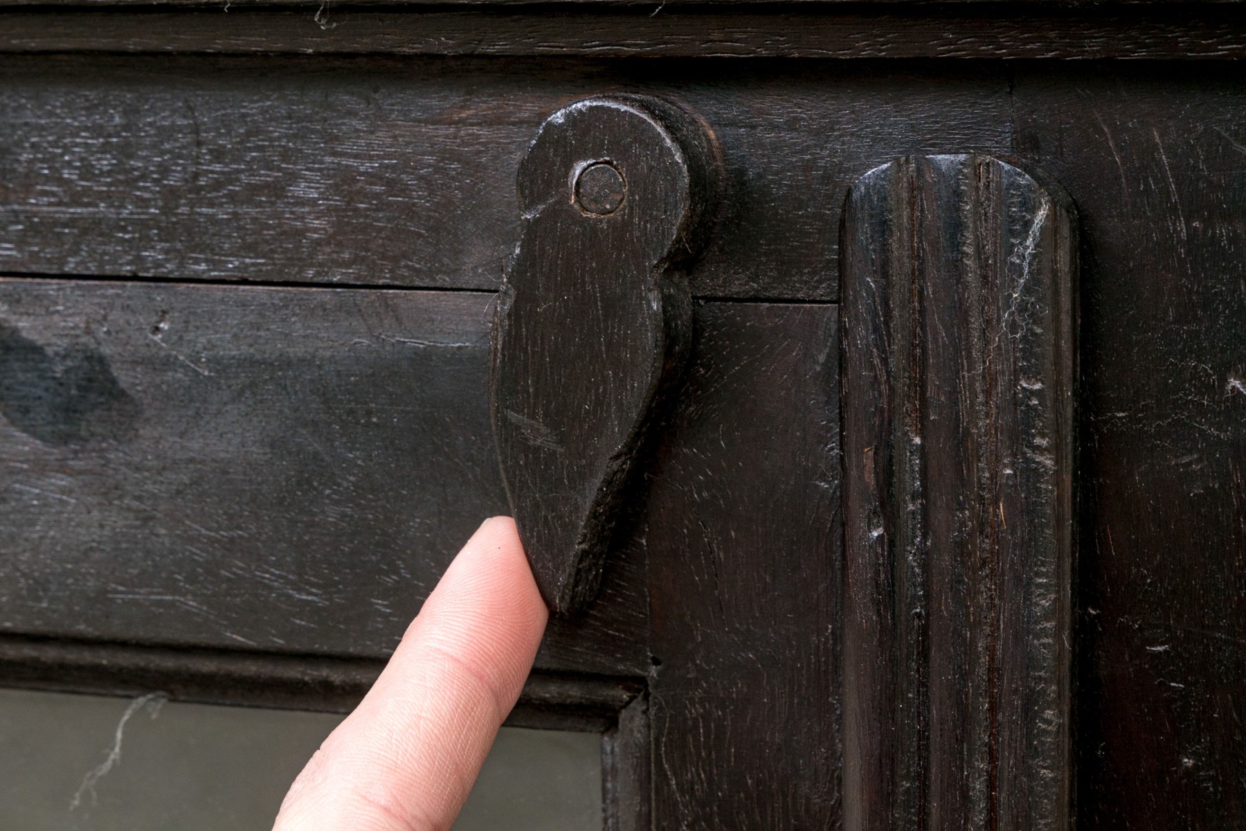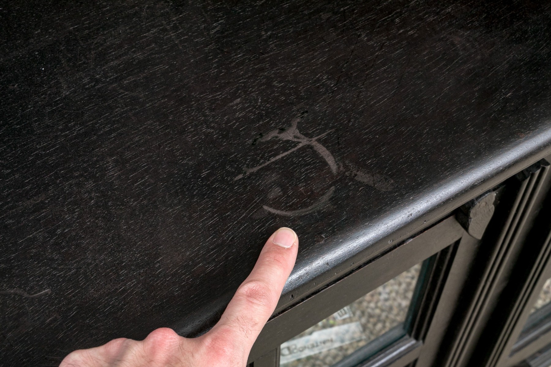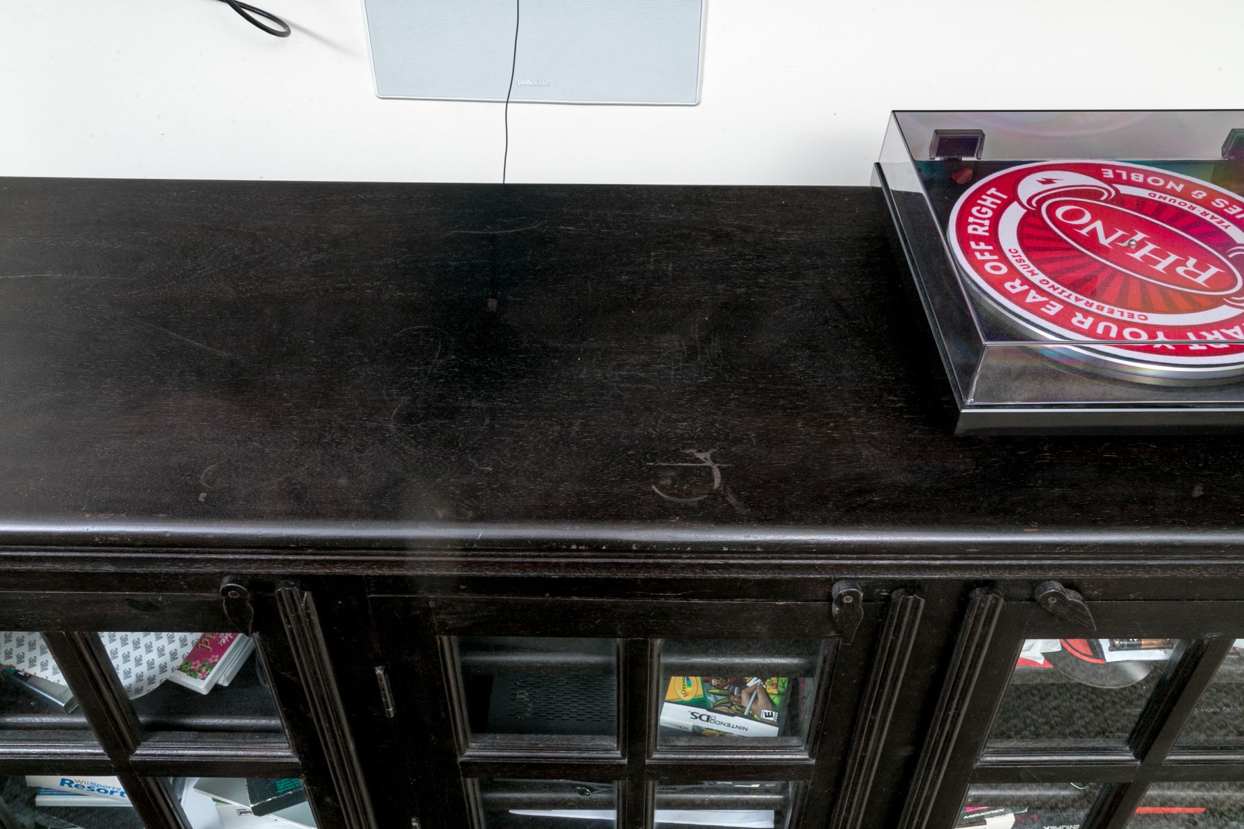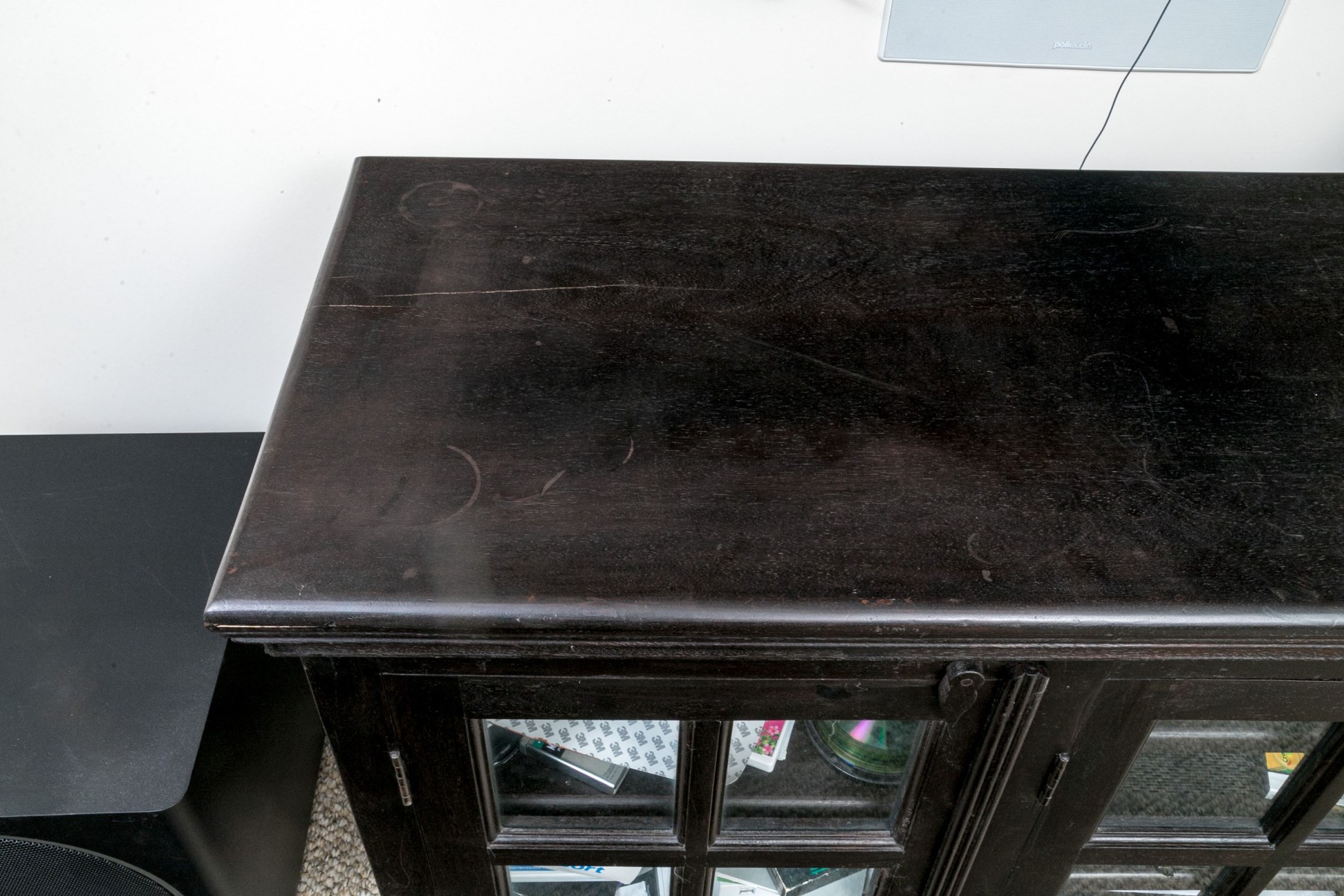 Some surface scuffs and scratches, with a ring stain to the top. Despite wear the chest presents well overall.