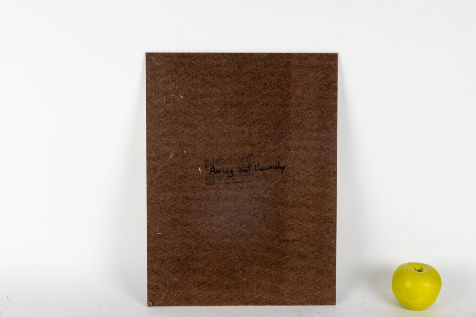 Hannah Cole Buie (American, B. 1955) "Airing Out Laundry" Oil On Board Painting