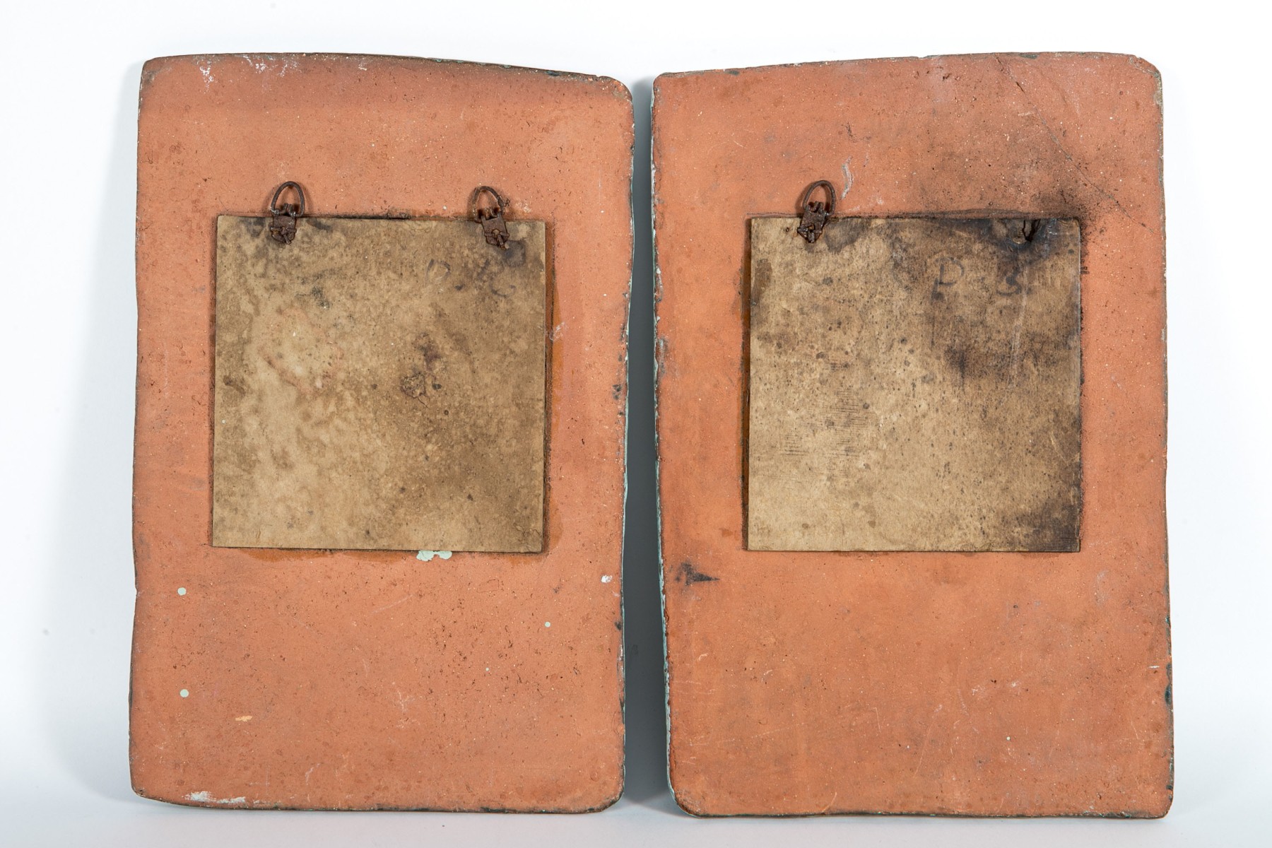 Displays well; one plaque has a past repair at the upper left corner and is missing a hanging hook on the back. Please review the pictures as they are a part of the condition report.