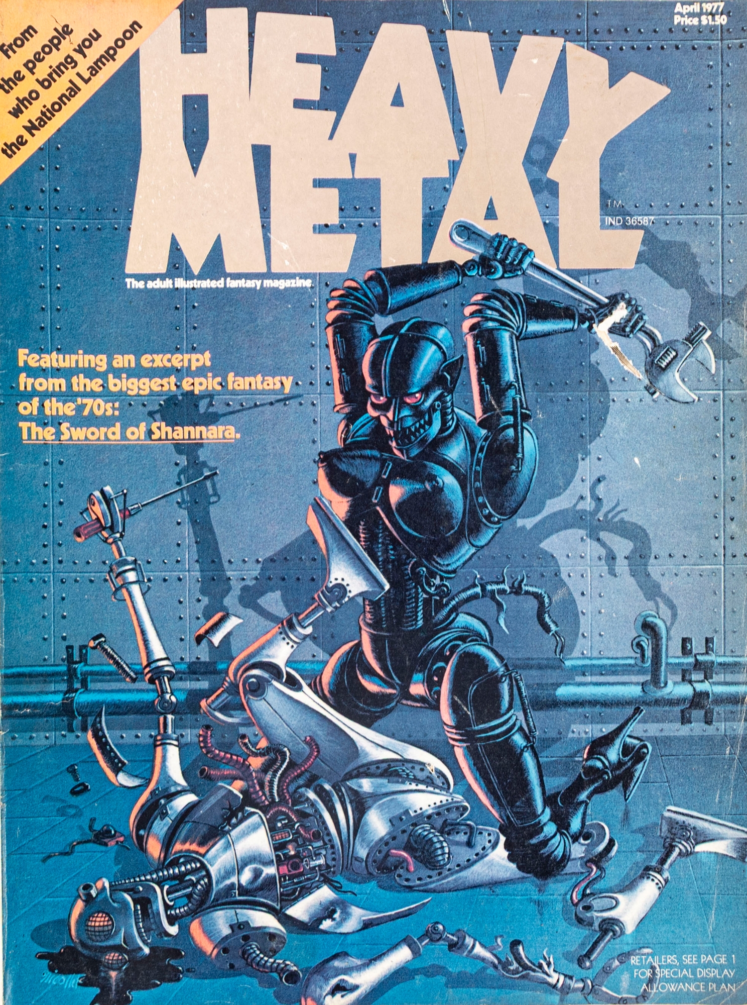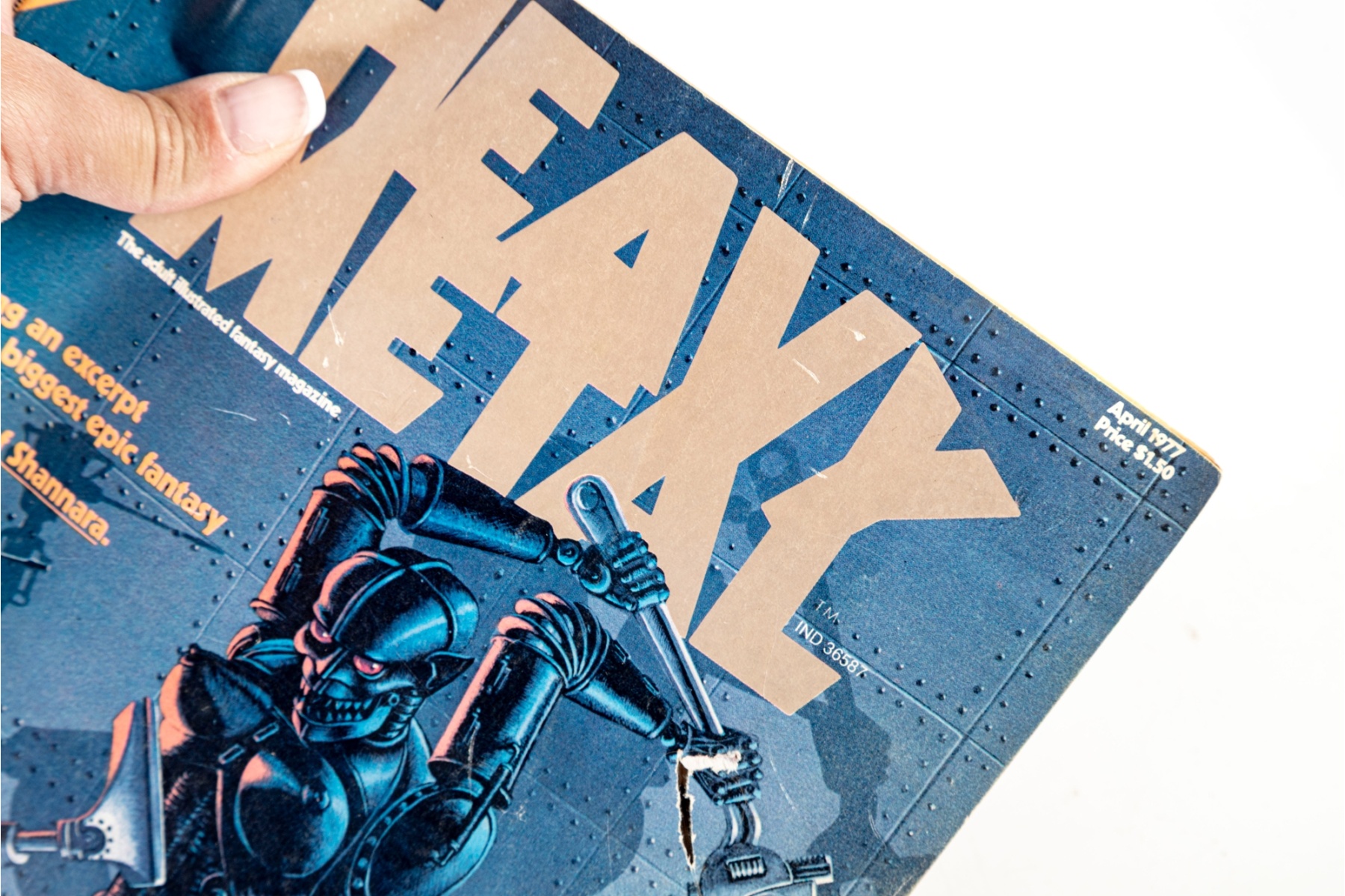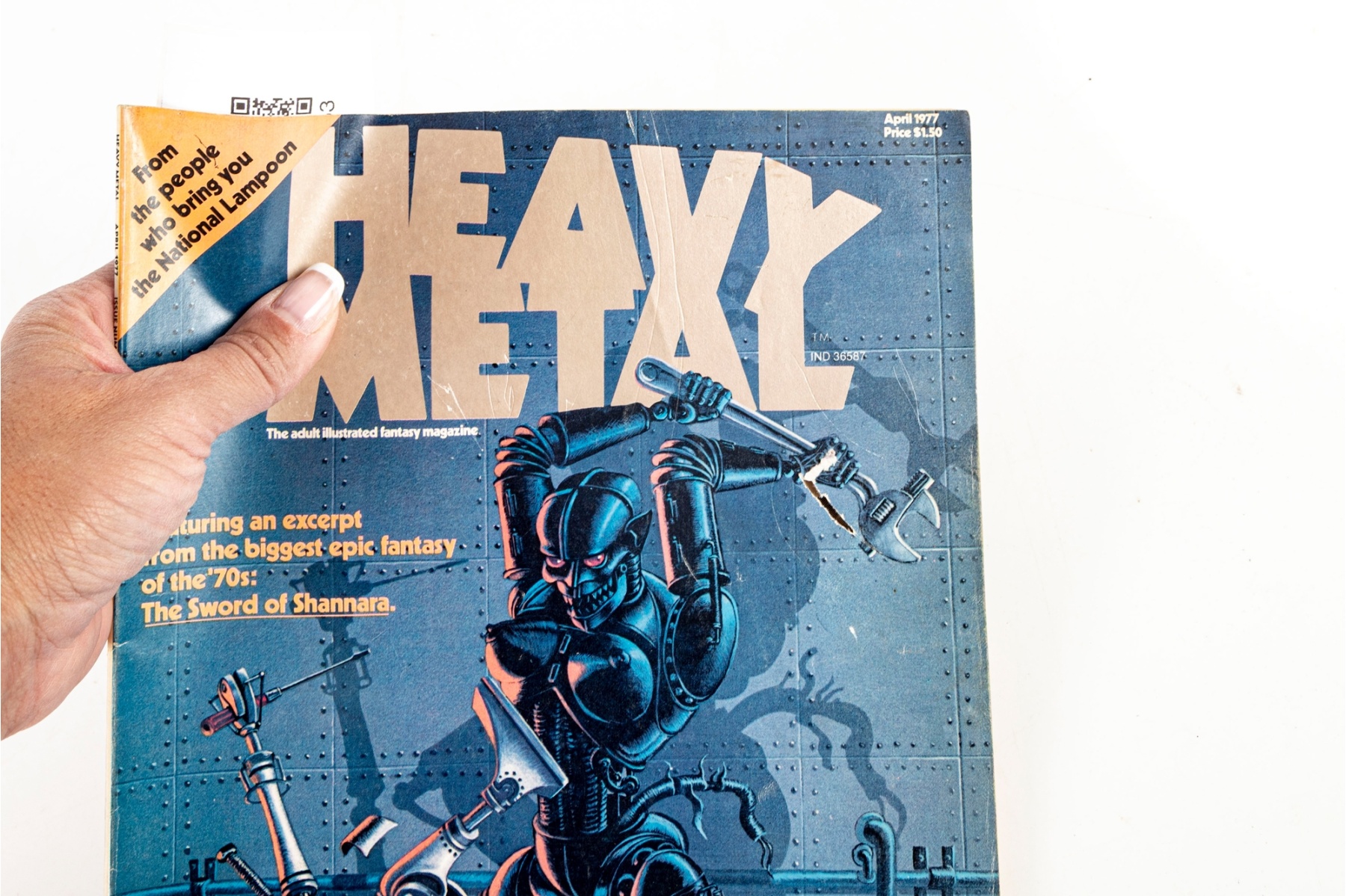 An original first issue of Heavy Metal magazine, April 1977, the debut publication of the legendary adult illustrated fantasy magazine adapted from the French Métal Hurlant. Published by National Lampoon’s HM Communications, this inaugural issue introduced American audiences to groundbreaking European artists and writers such as Moebius, Druillet, and Philippe Caza, establishing Heavy Metal as a cornerstone of sci-fi and fantasy illustration.