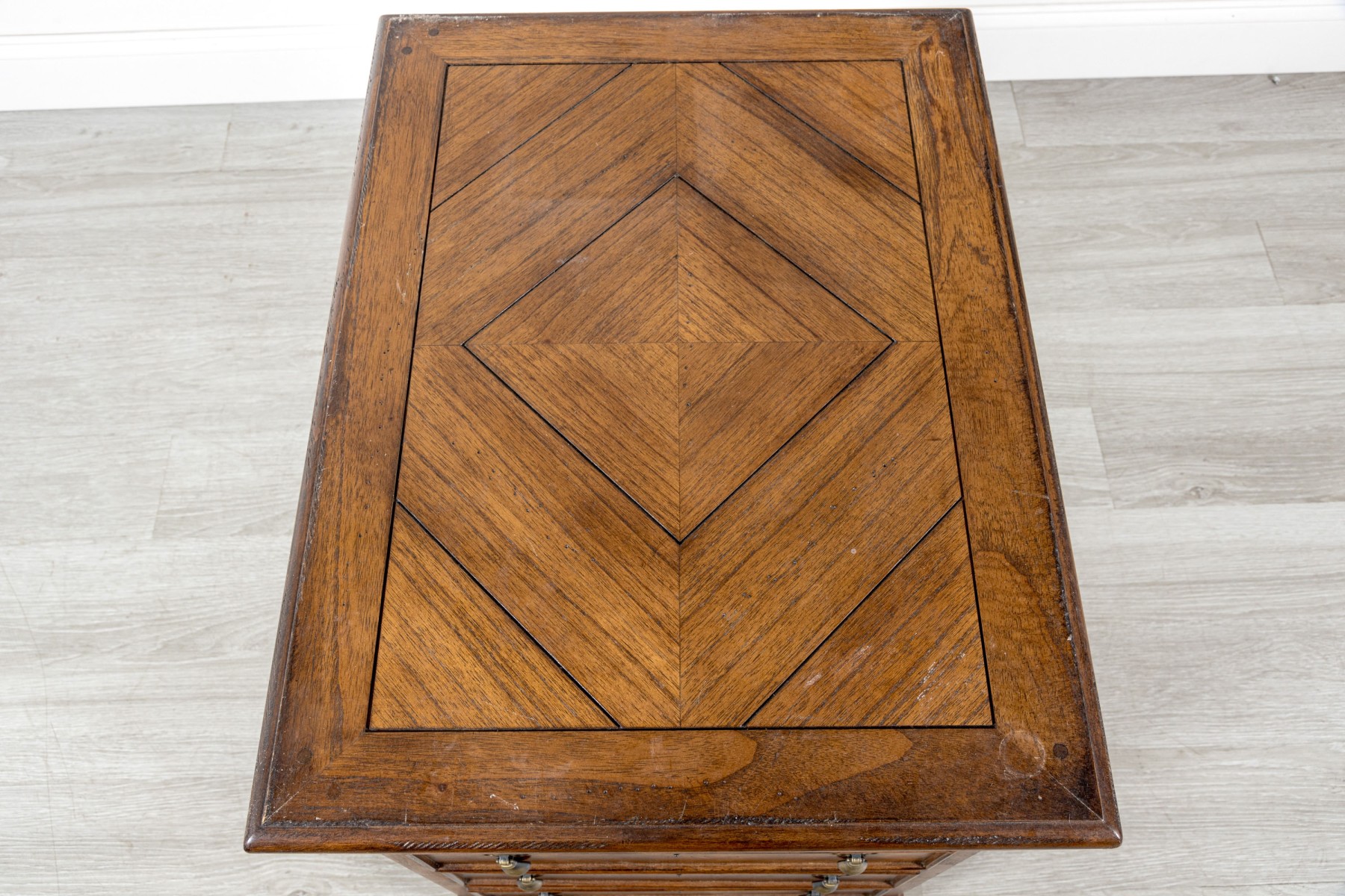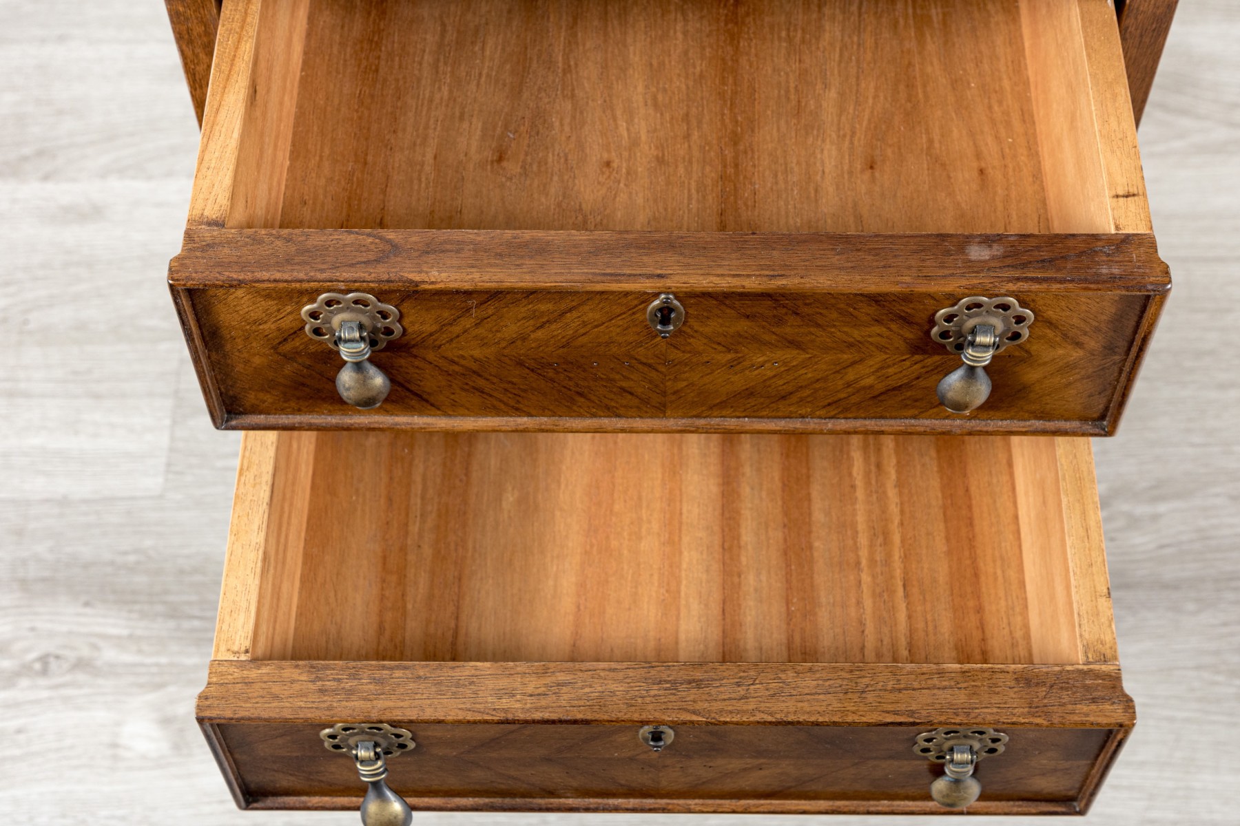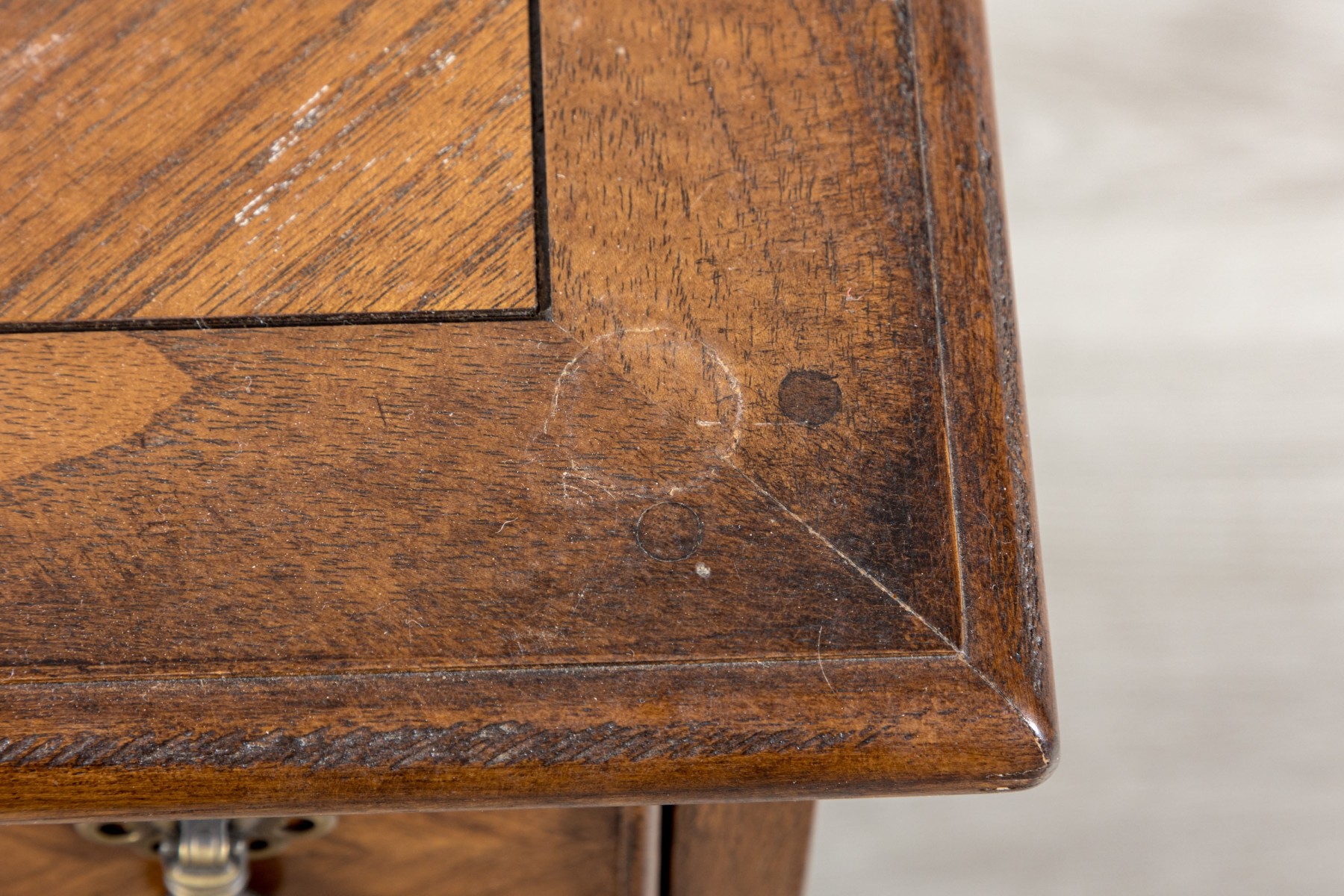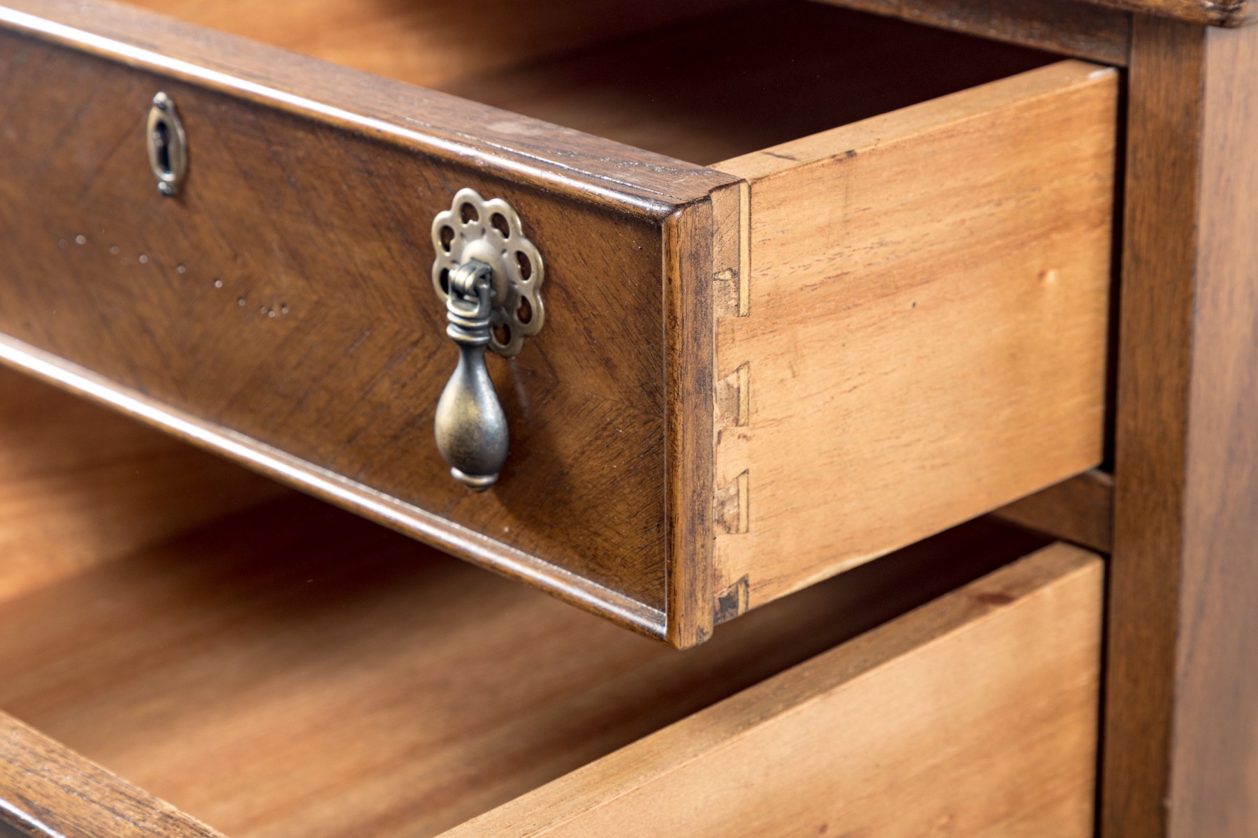 Ideal for a home office, this mango wood, Georgian-inspired chest produced by Hekman Furniture glides on brass castors. Additionally features brass pendant pulls and faux keyholes over four dovetailed and veneer-matched drawer fronts.
