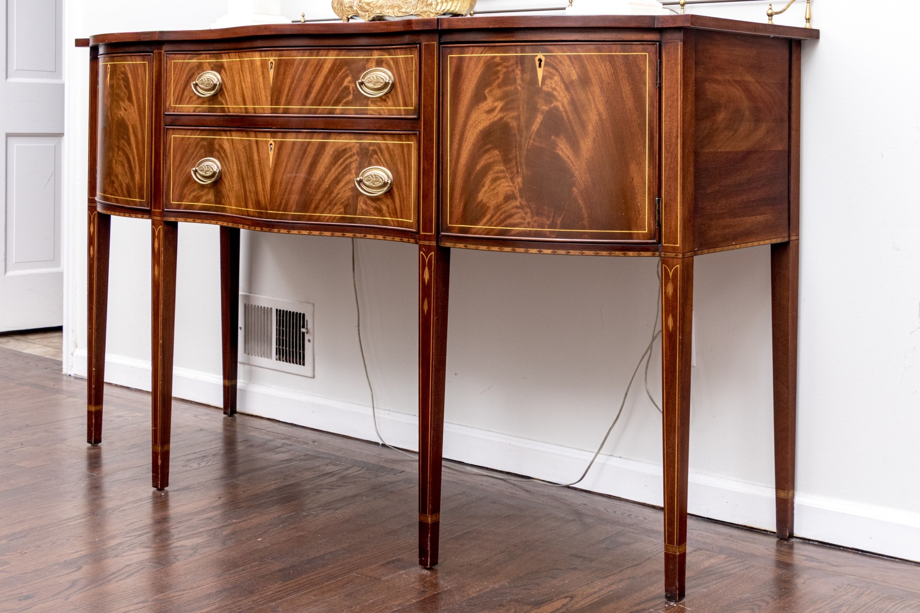 Henkel Harris Federal Style Mahogany Oxbow Sideboard #464438. Black Rock Galleries provides high end estate liquidation services through online estate auctions and a 50,000 sq ft designer showroom. estate liquidator, estate sale, online auction, antiques, fine art, liquidation, clean outs, auction, consignment, interior design, fine jewelry, collectibles, appraisals, estate appraisals, estate services, decor, furniture, furniture consignment, antique center, consignment shop. We offer appraisal services and specialize in fine art, jewelry, antiques and decorative arts. Sell with us. Black Rock Galleries is the tri-state's largest estate liquidator serving New England and the greater New York City area. We are the trusted source for expert appraisals, auction services, estate sales, and consignments. Black Rock Galleries is the east coast's largest and most trusted estate liquidator, with locations in Connecticut, greater Boston, MA and Raleigh, NC, Fairfield, Southport, Apex, TX. We are the best source for expert appraisals, auction services, estate sales and consignments. We have served thousands of families and estates with compassion, professionalism and expertise. BRG works with attorneys, executors, realtors and families to bring the greatest return on personal and estate property in the current market. Our unique combination of services make us the easy choice to get the job done in a timely and stress-free manner. We are with you from the initial consultation to the final clean out. Our house-built online auction software platform offers clients a dynamic approach to liquidating their personal property. This venue is most successful in bringing the best return with the least amount of disruption for our clients. See our services page for a complete description of this offering. Henkel Harris Federal Style Mahogany Oxbow Sideboard #464438