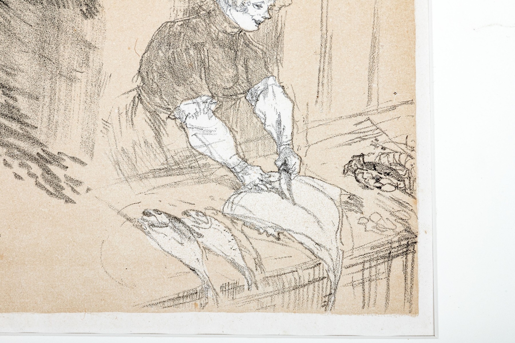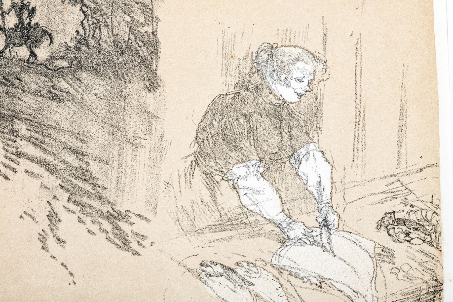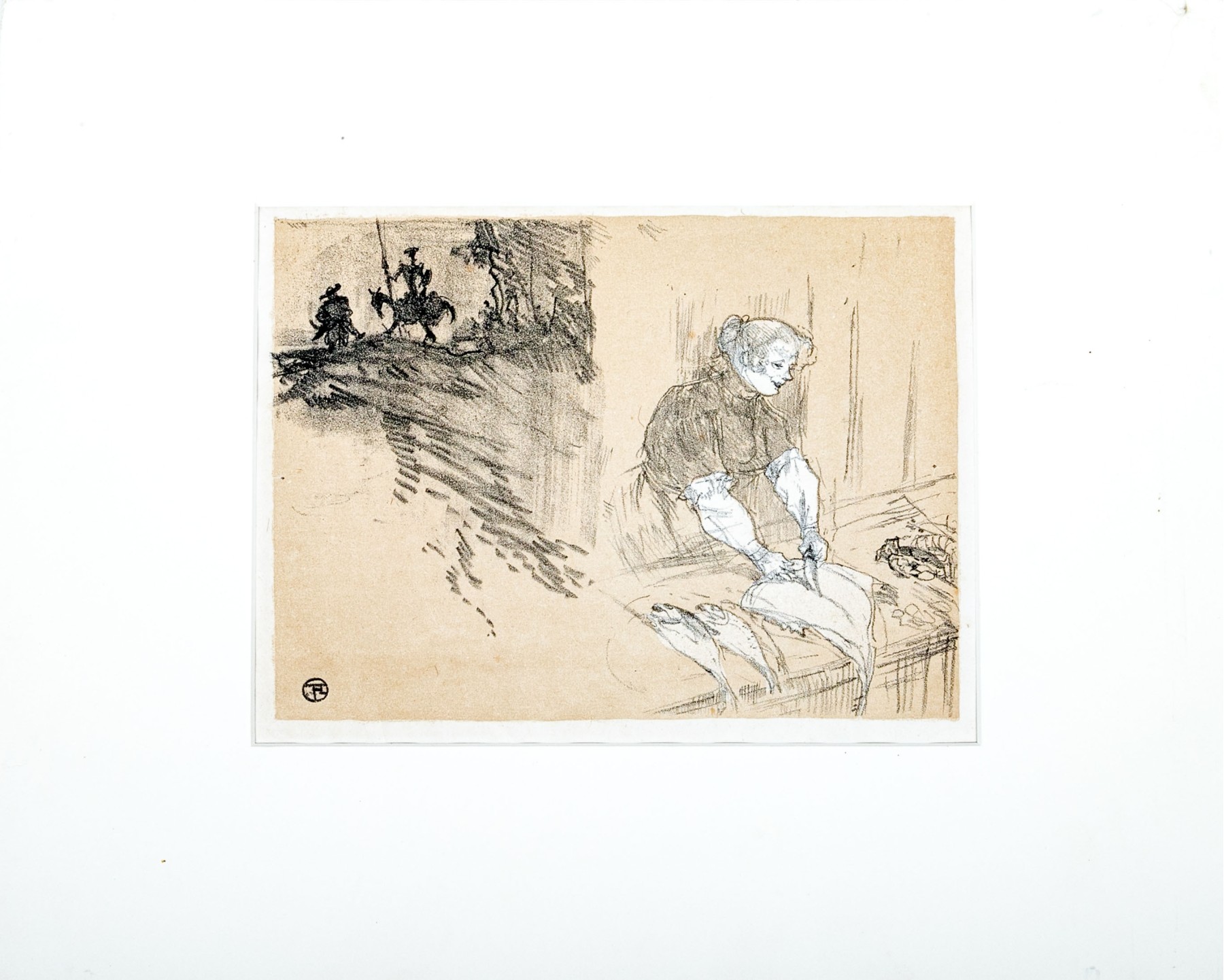 Monogram in plate lower left. The artist created this artwork for the cover of the 1897 work of the same name by Jean Sermet. It was published in 1925 by Edmond Papier, Paris. Unframed and presented within a clam shell mat.