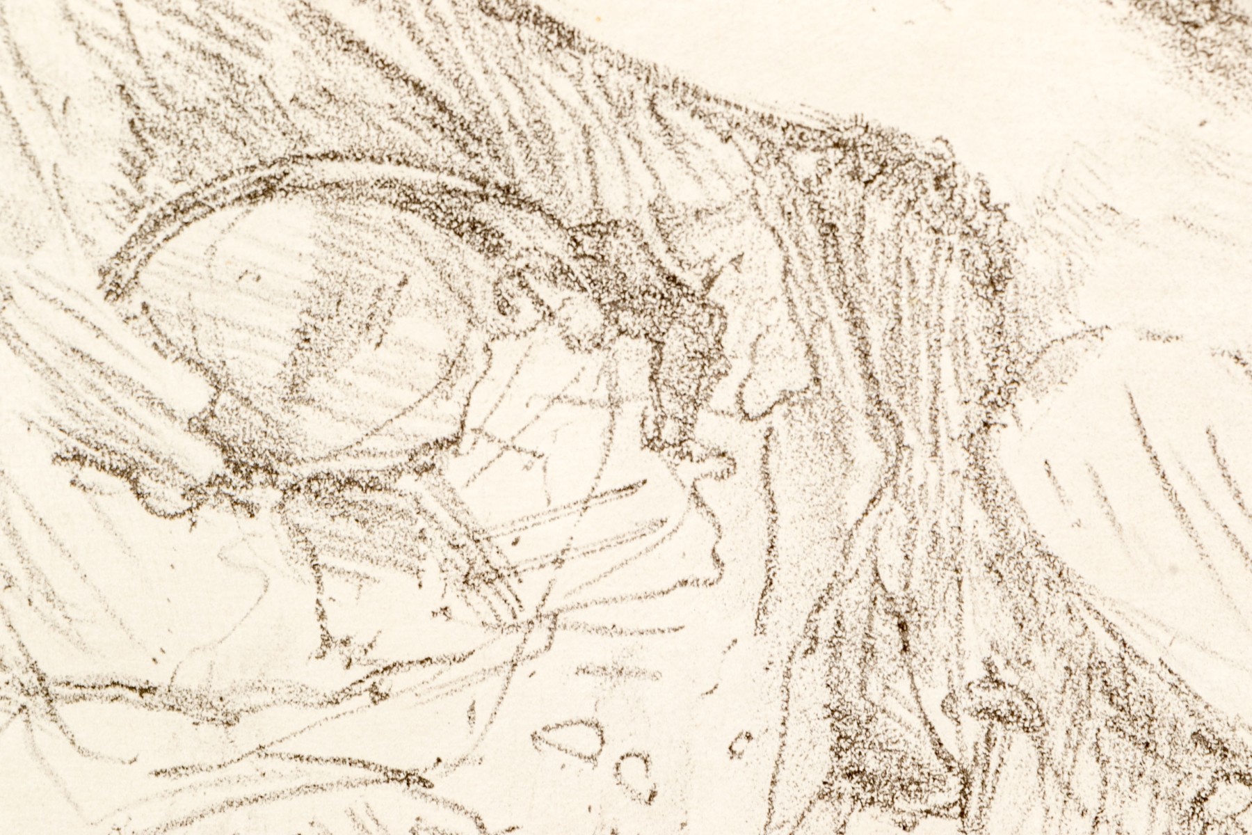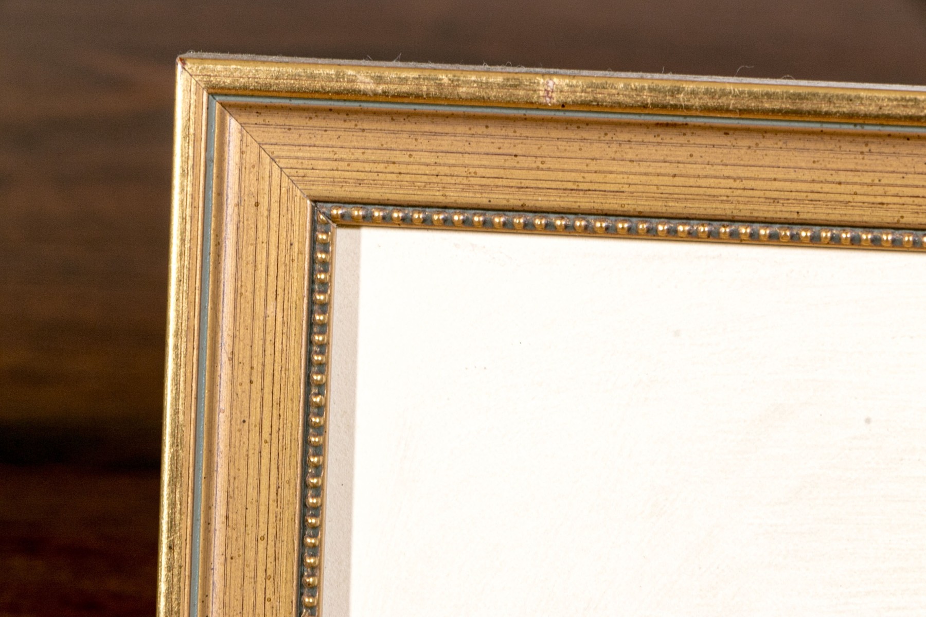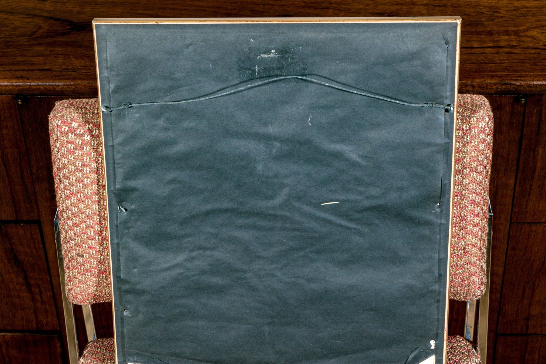 There is a chip to the lower trim edge of the frame. Additionally the backing is torn and could be re covered or re-framed for protection. Despite wear overall the work is in good form and house ready.