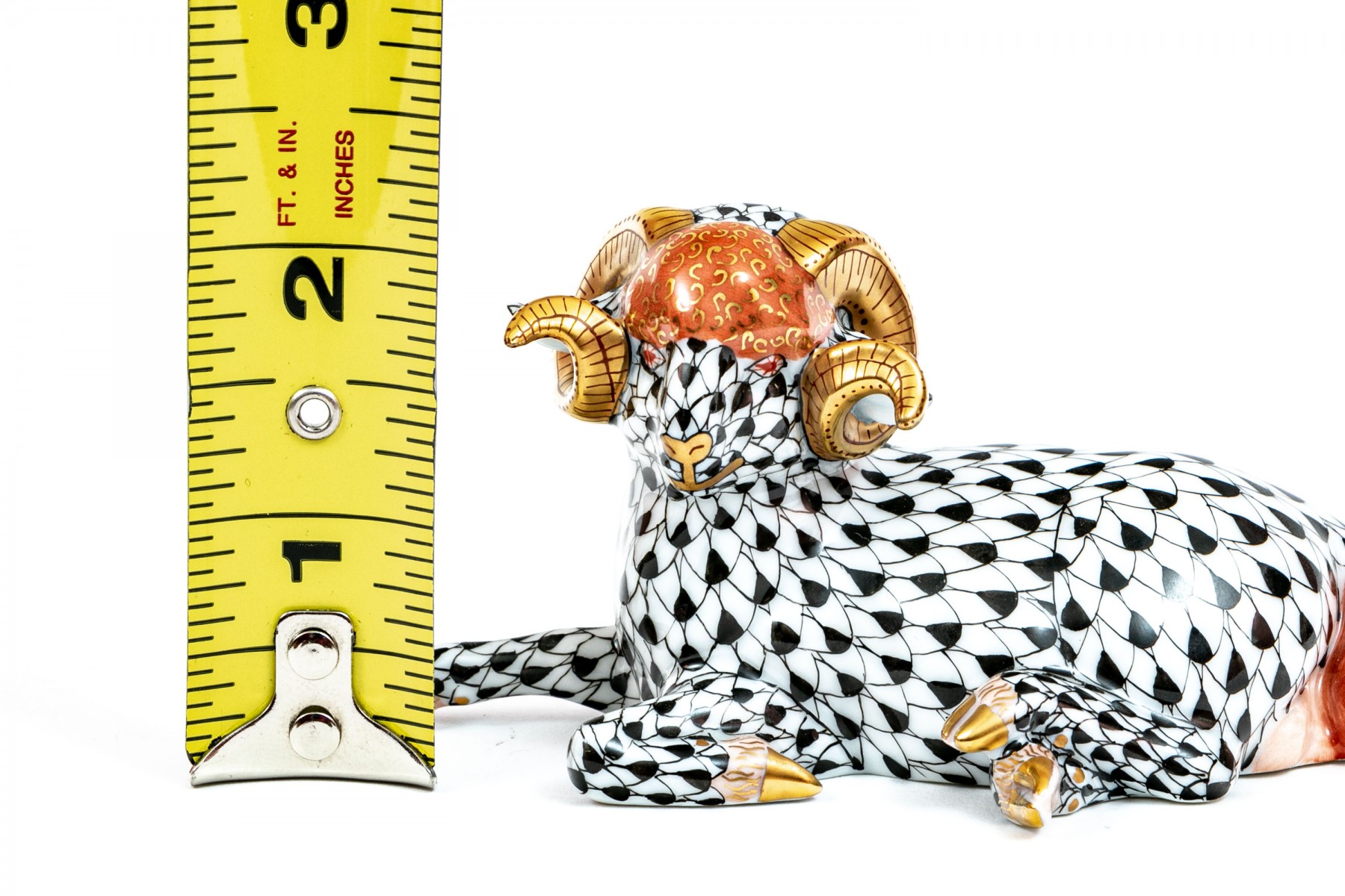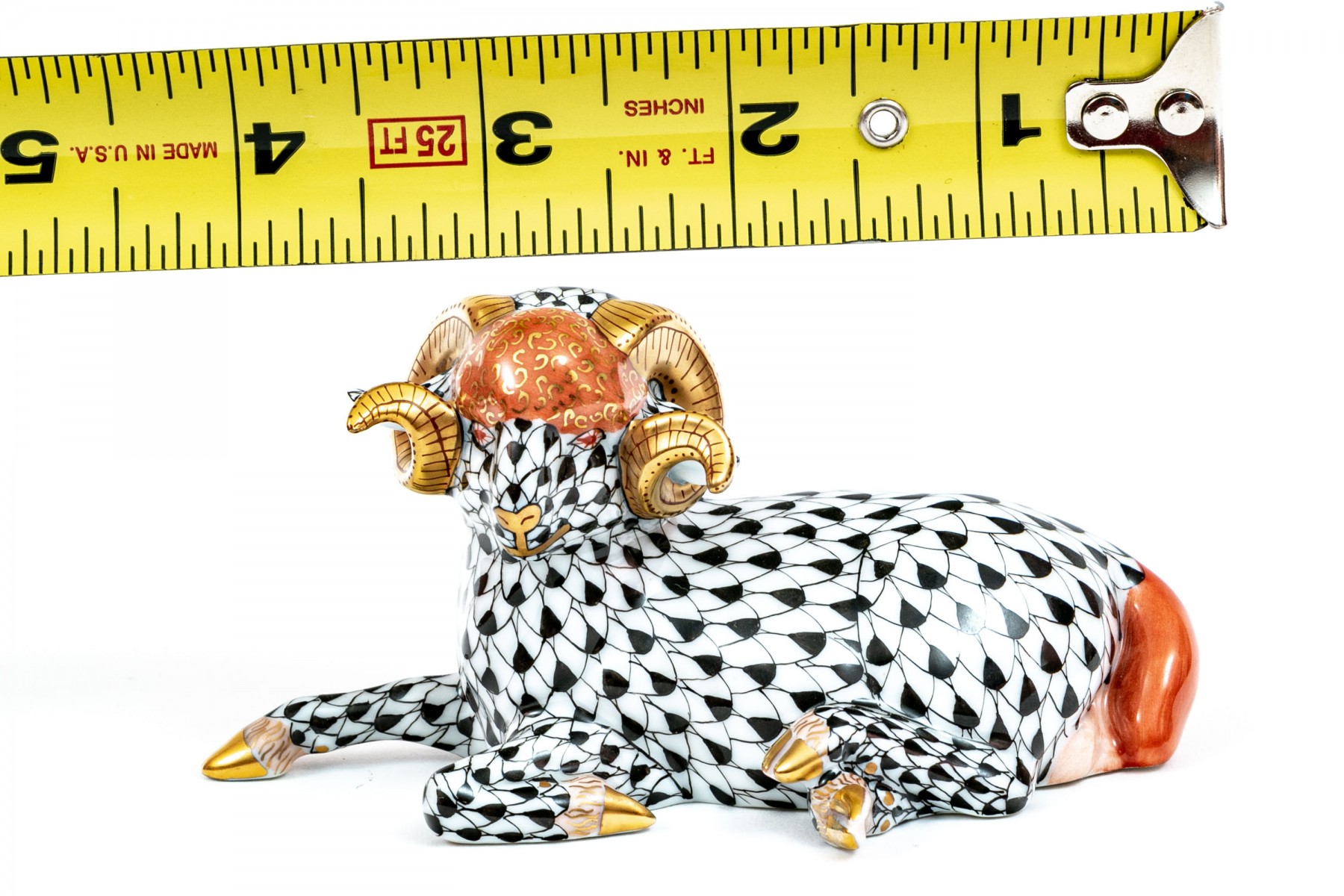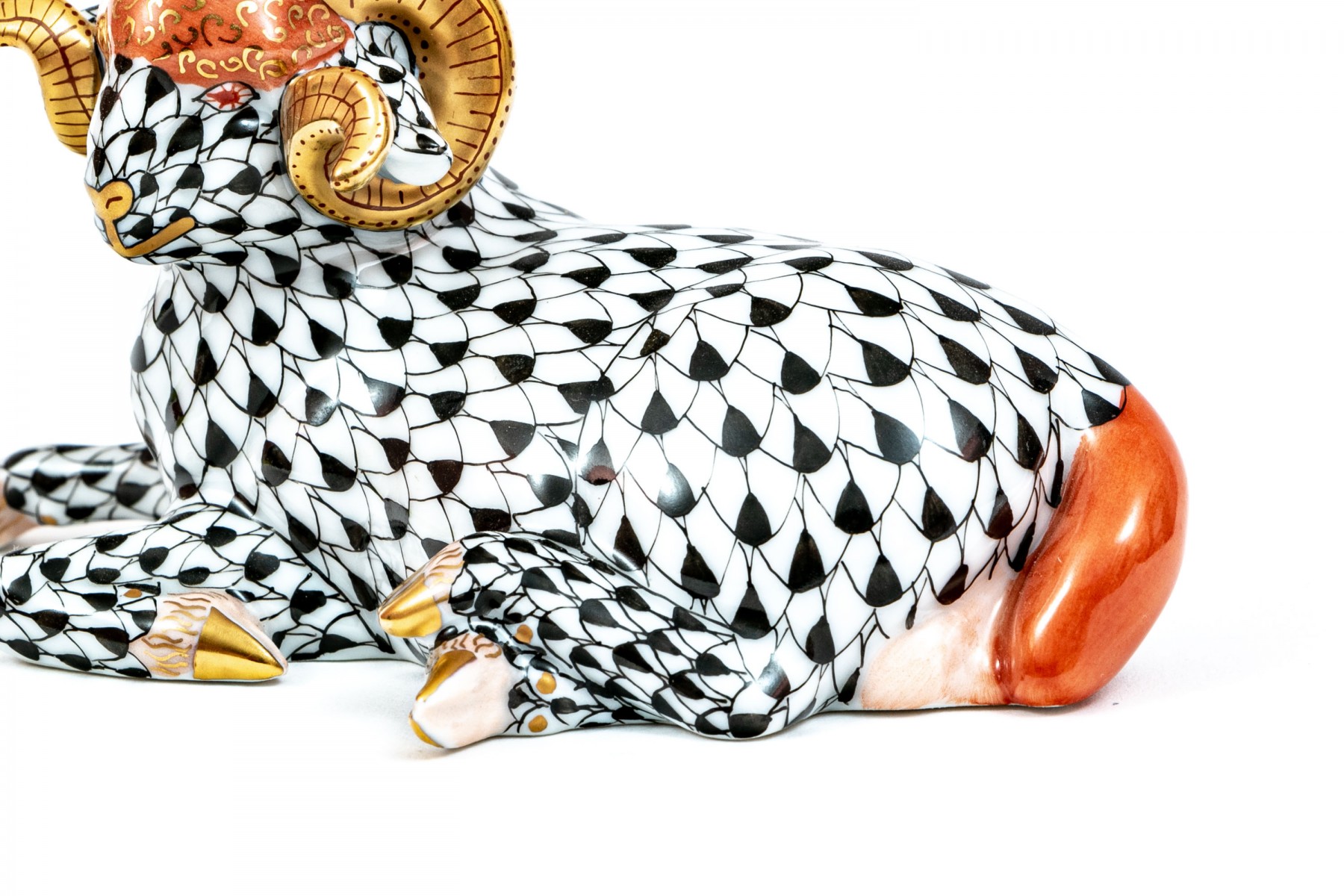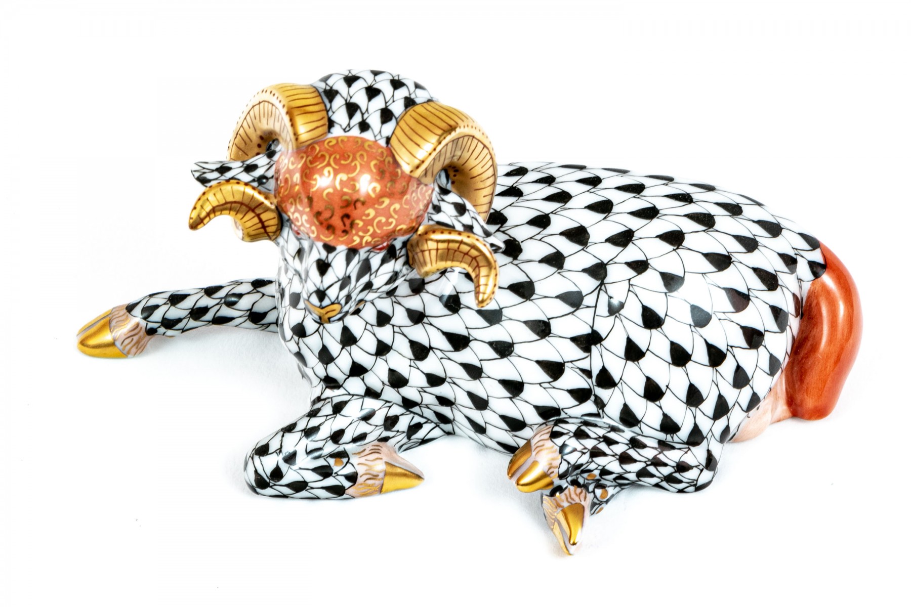 Herend black fishnet ram with rust accents, gold embellishments, 15379