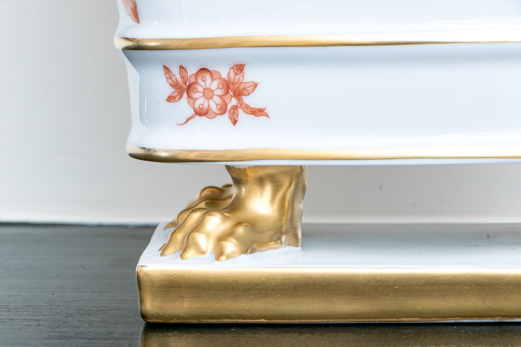 The bowl is raised upon four gilt finished feet on a rectangular base.