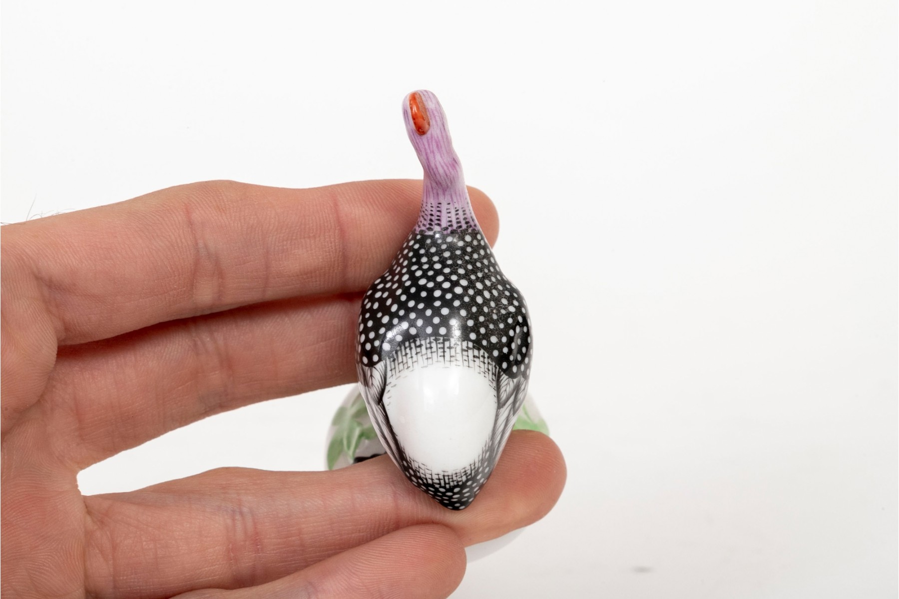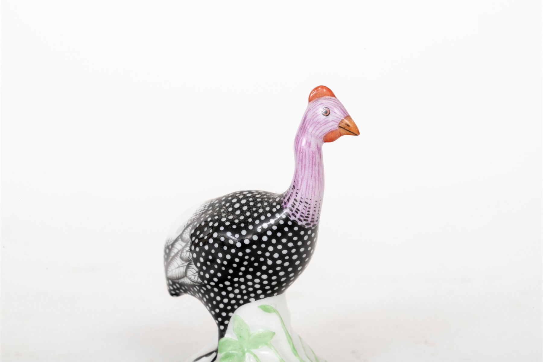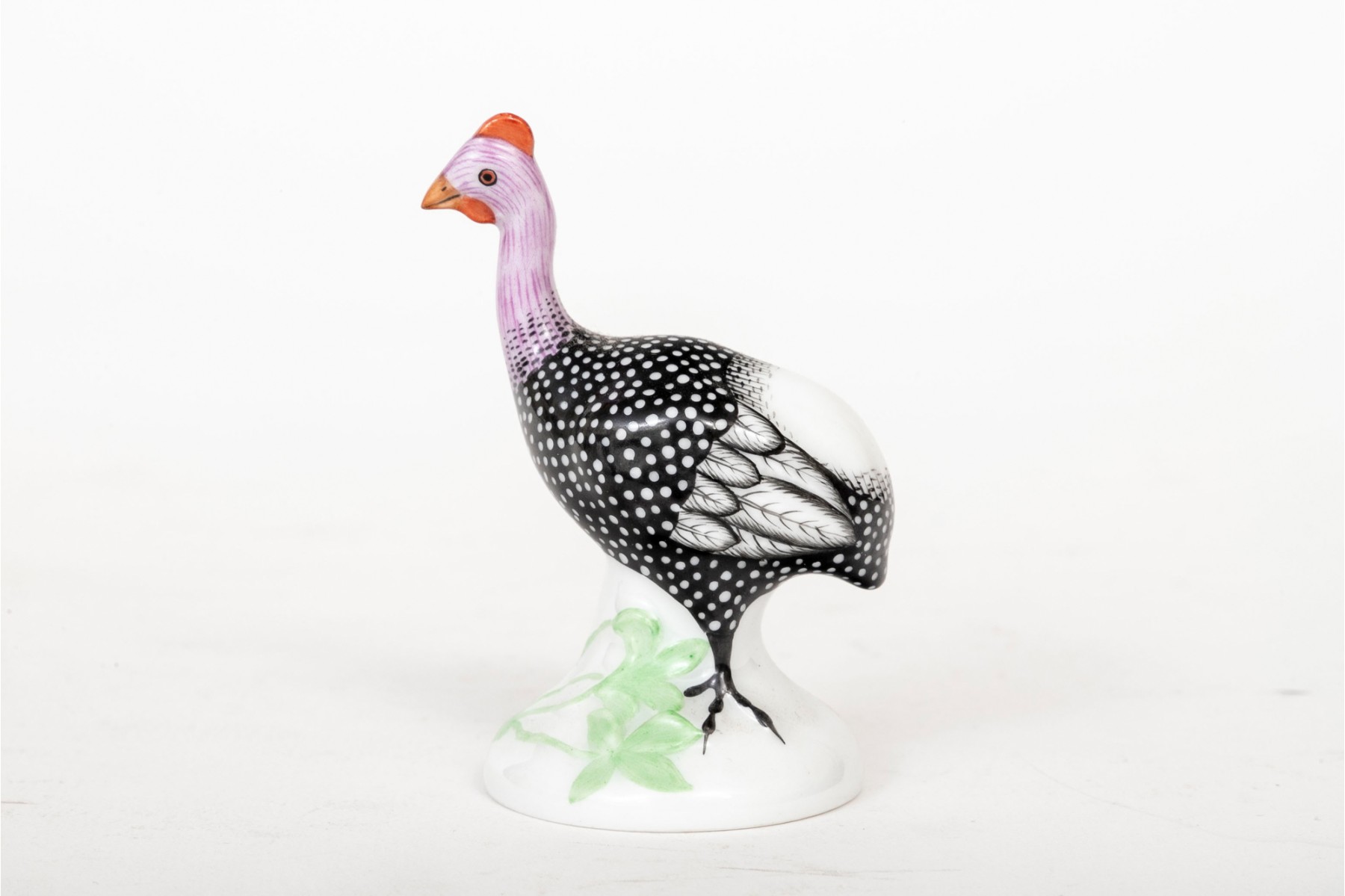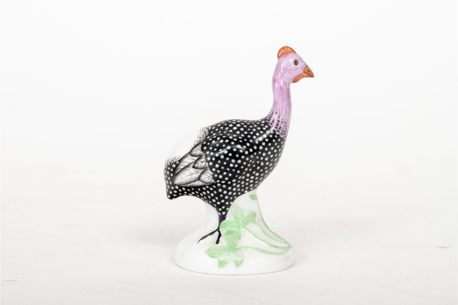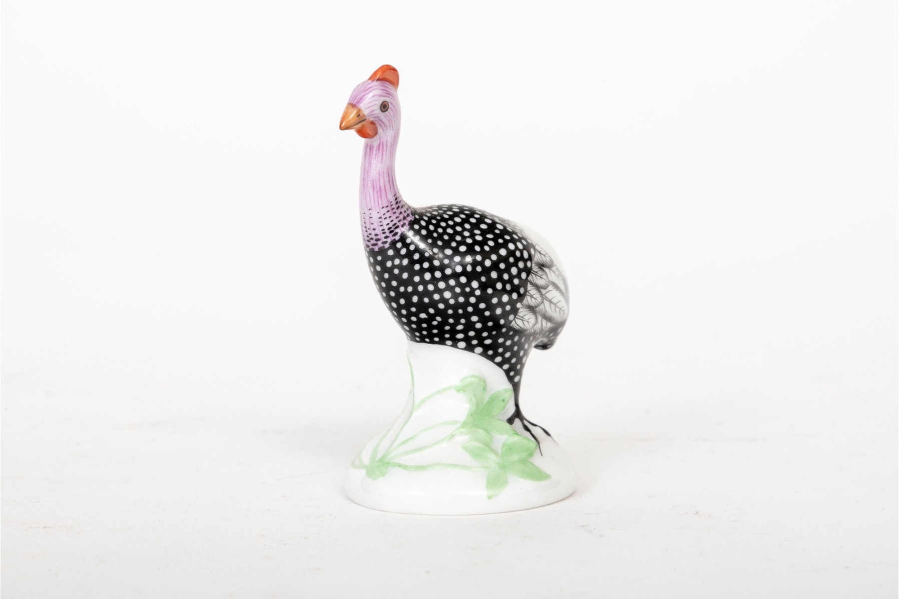Naturalistically modeled and hand painted to depict a standing turkey on a grass decorated base.
