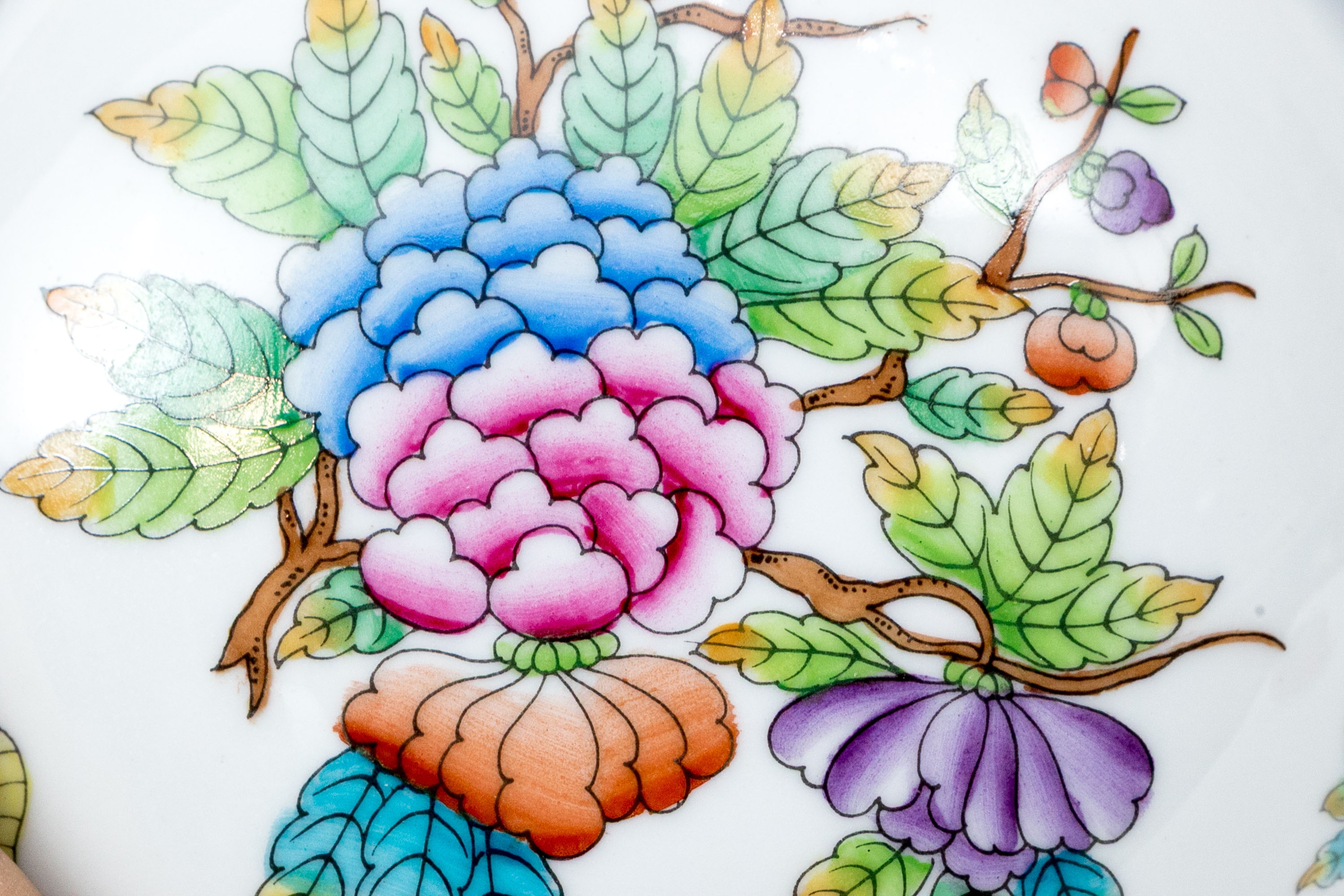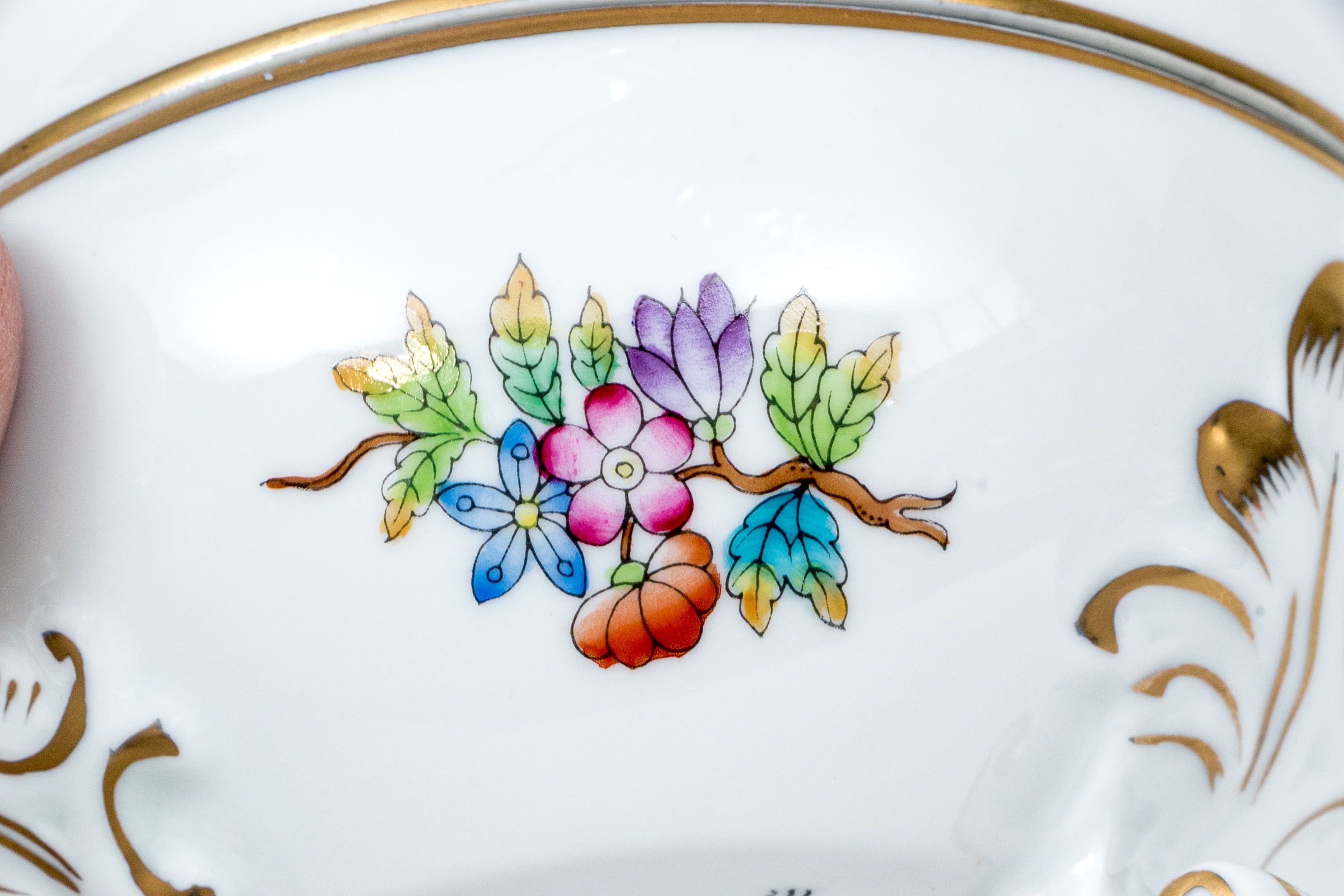Condition: Excellent condition. The porcelain is pristine, with no chips, cracks, crazing, or restorations. The hand-painted decoration remains vivid and crisp, and the 24K gold accents are bright and intact, showing only minimal signs of gentle handling. The interior and base are clean and glossy, with light shelf wear consistent with careful display.