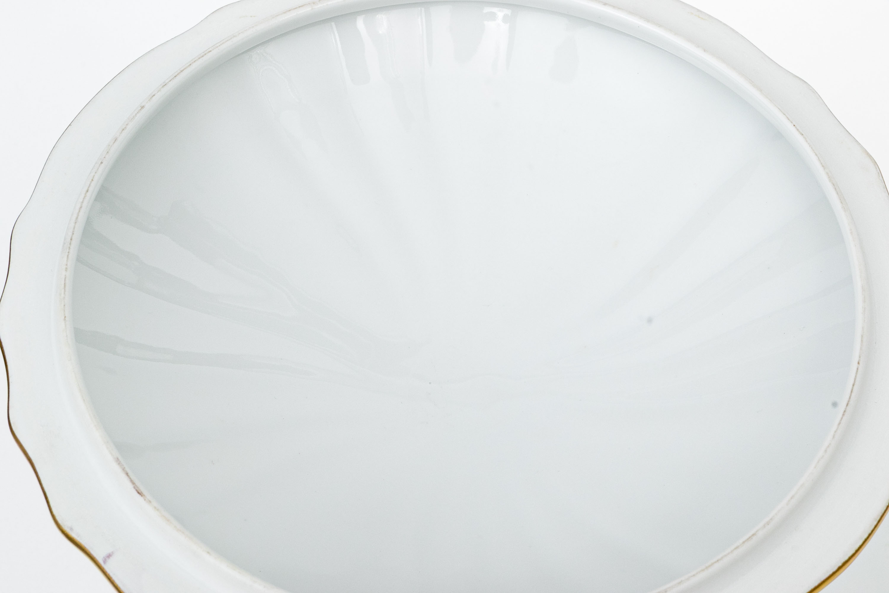 Condition: Excellent condition overall. The porcelain is clean and free of chips, cracks, or repairs, with bright gilding and vivid, unfaded enamels. The applied floral and branch details are intact and finely preserved. Minimal, expected surface wear consistent with careful handling. There are minor traces of old adhesive on bottom and minor marring to the unglazed edges of bottom from shelf display.