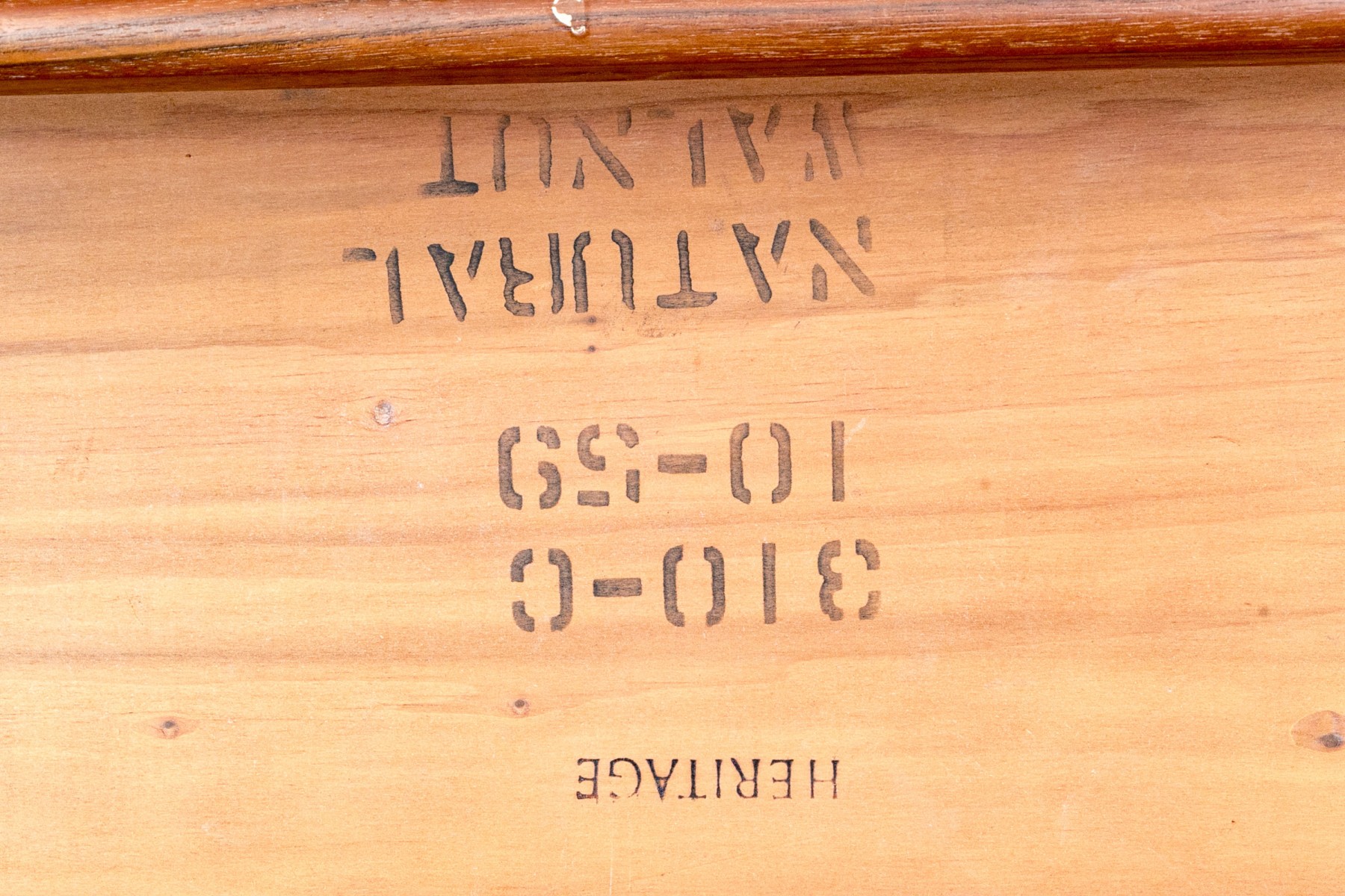 Presents well overall with wear commensurate with age and use. Finish wear, most notably a large ring stain to the top. Minor scuffs and surface scratches. Despite the wear it is a beautifully crafted piece with much more life to give. Please review the pictures as they are a part of the condition report.