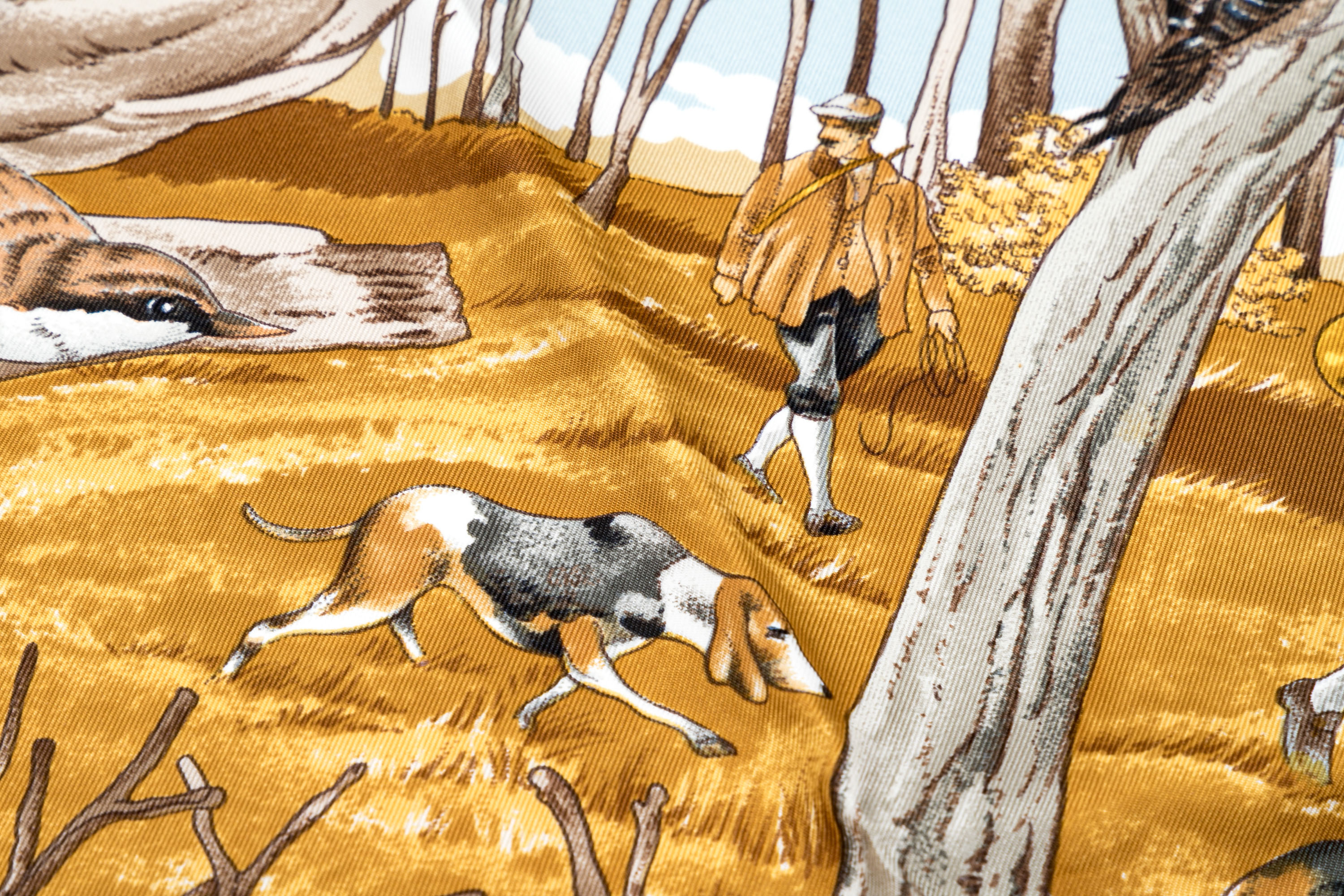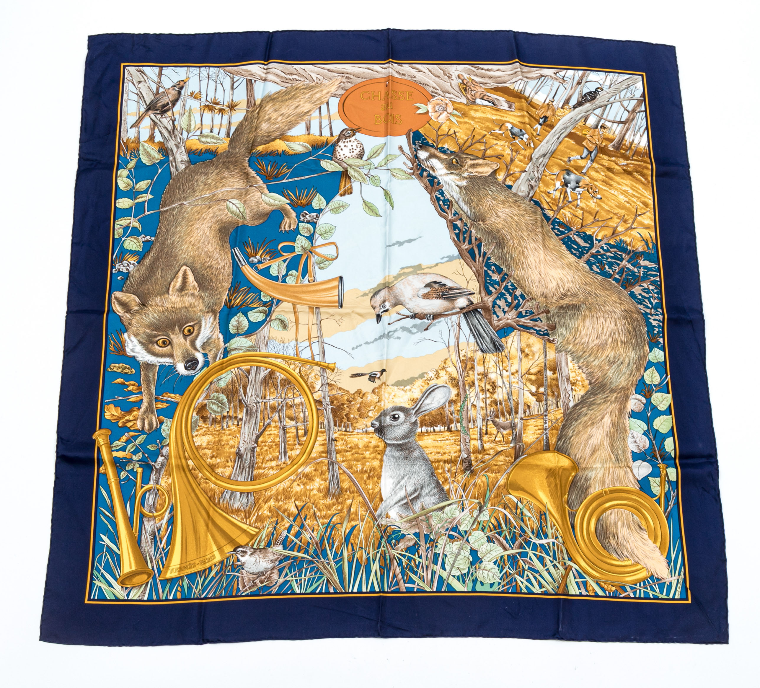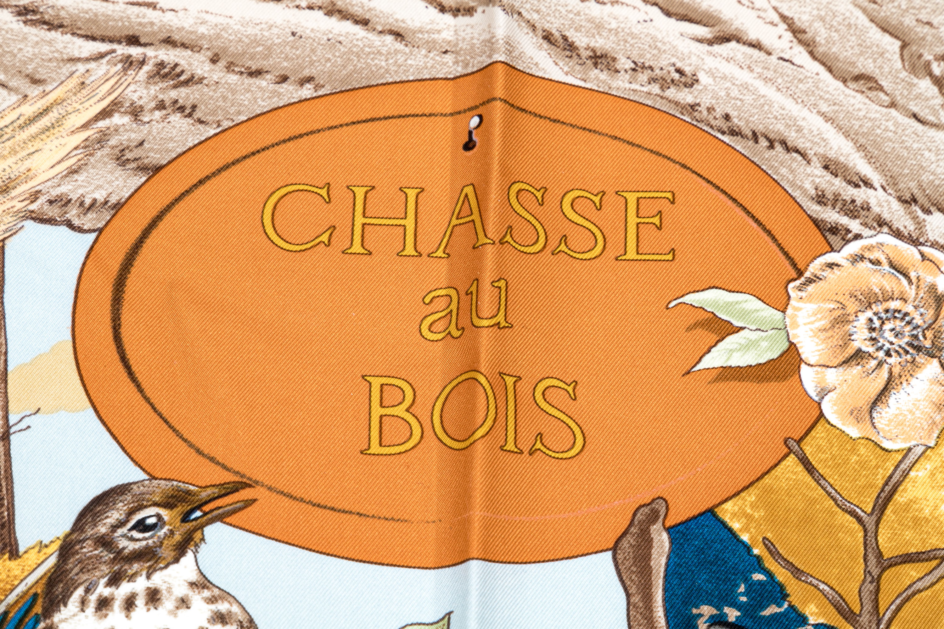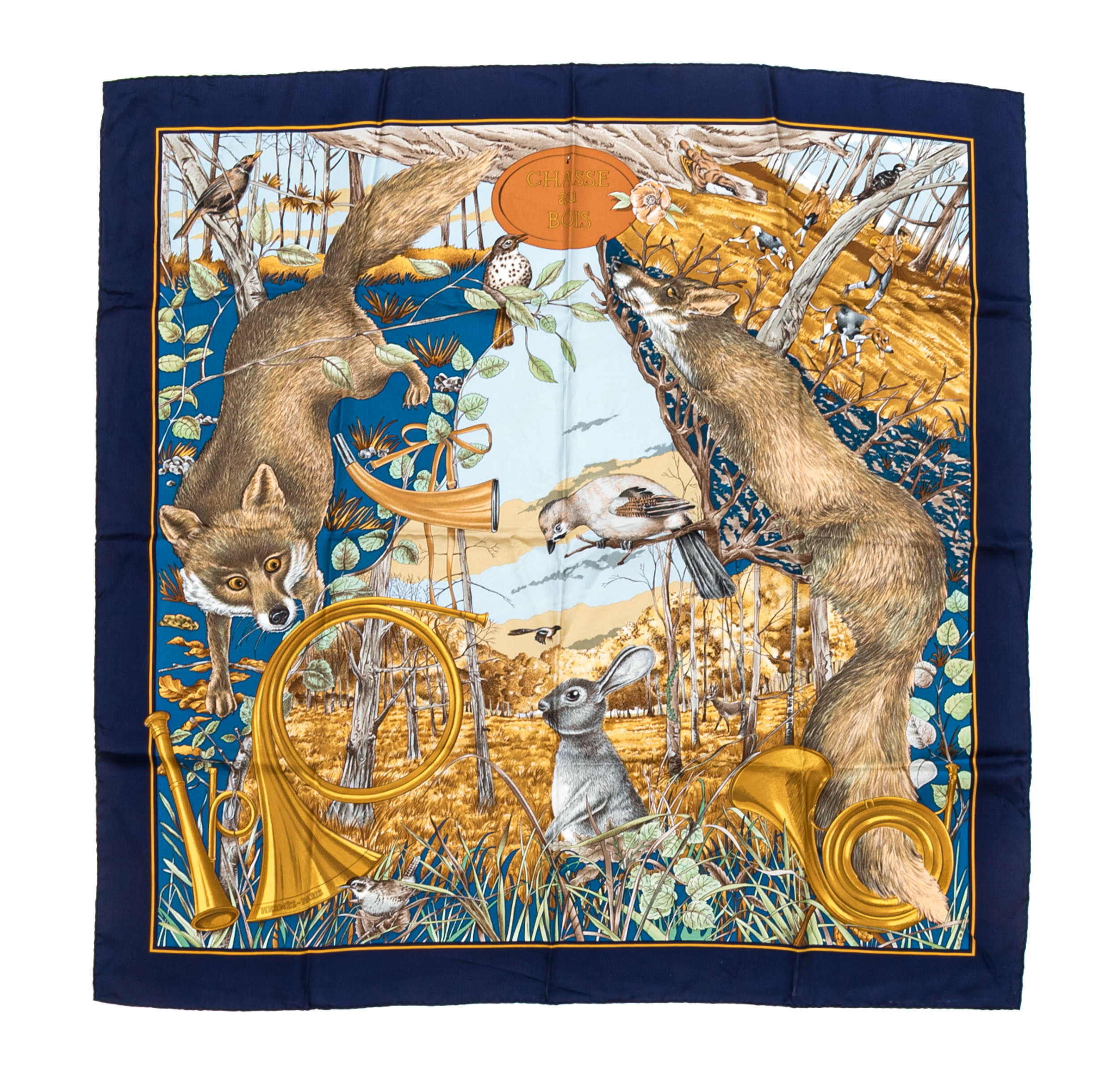 Hermès fabulous Chasse au Bois woodland scene silk scarf
