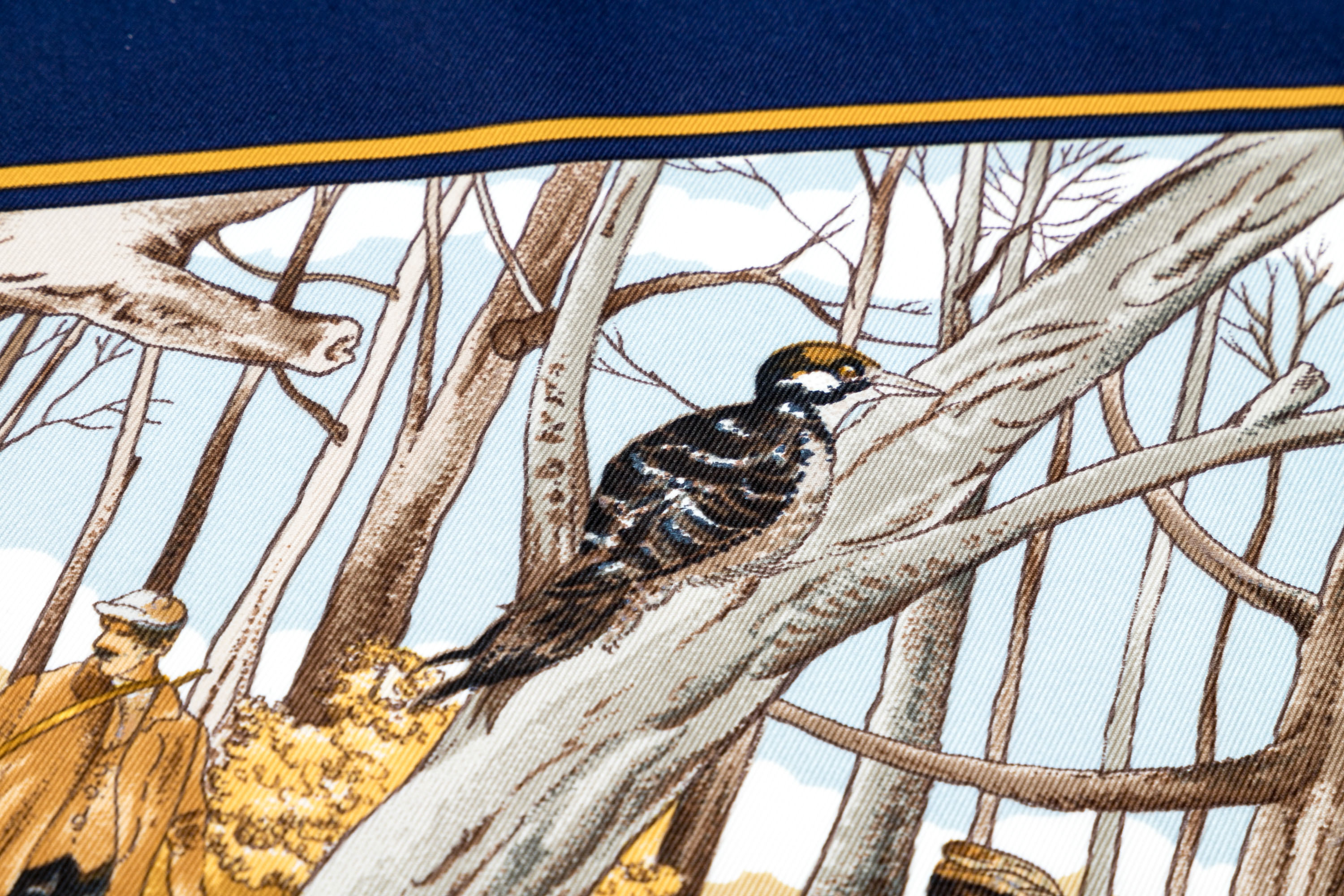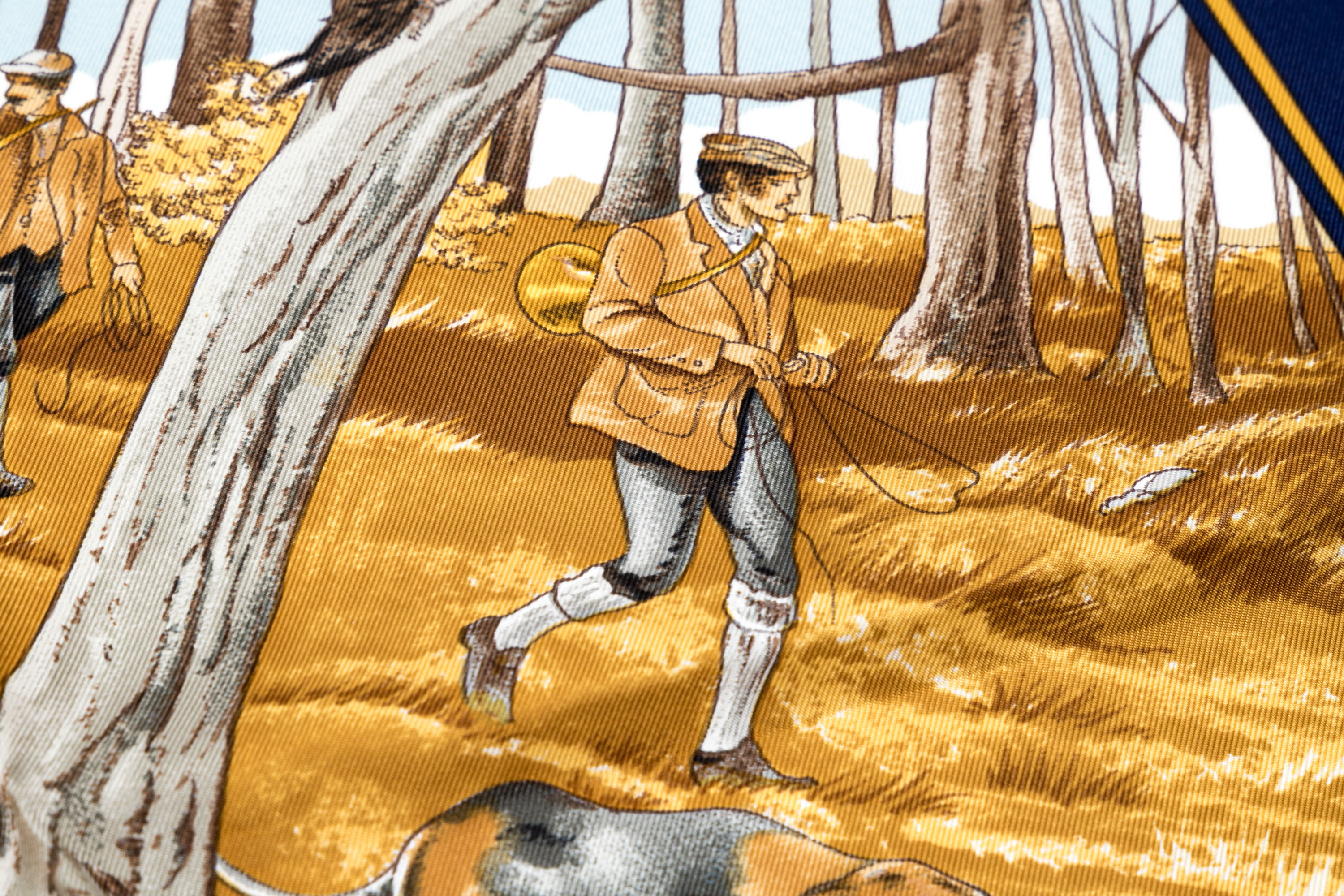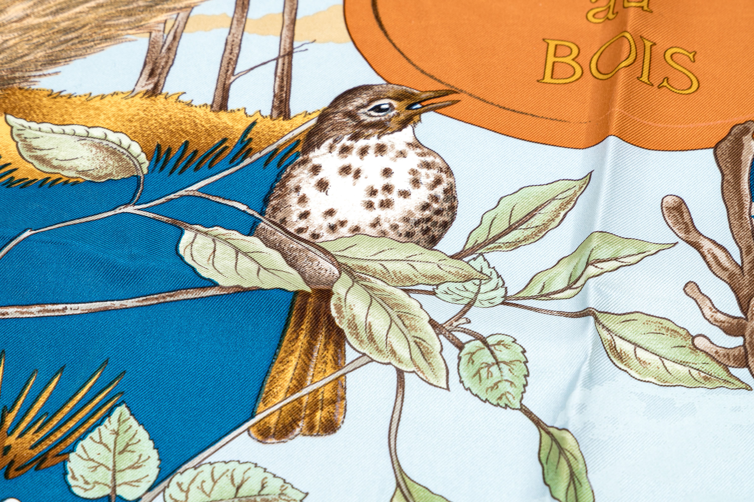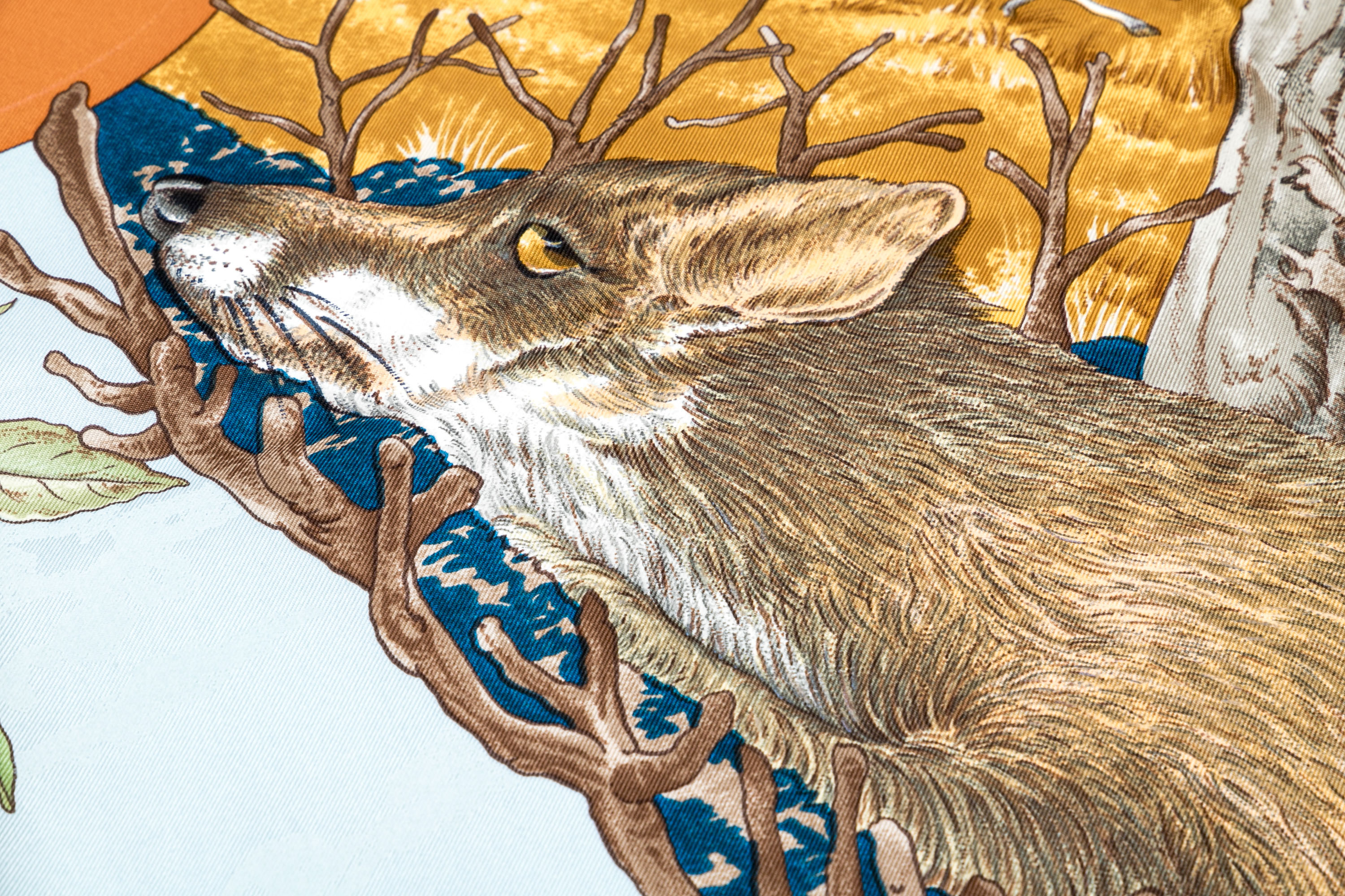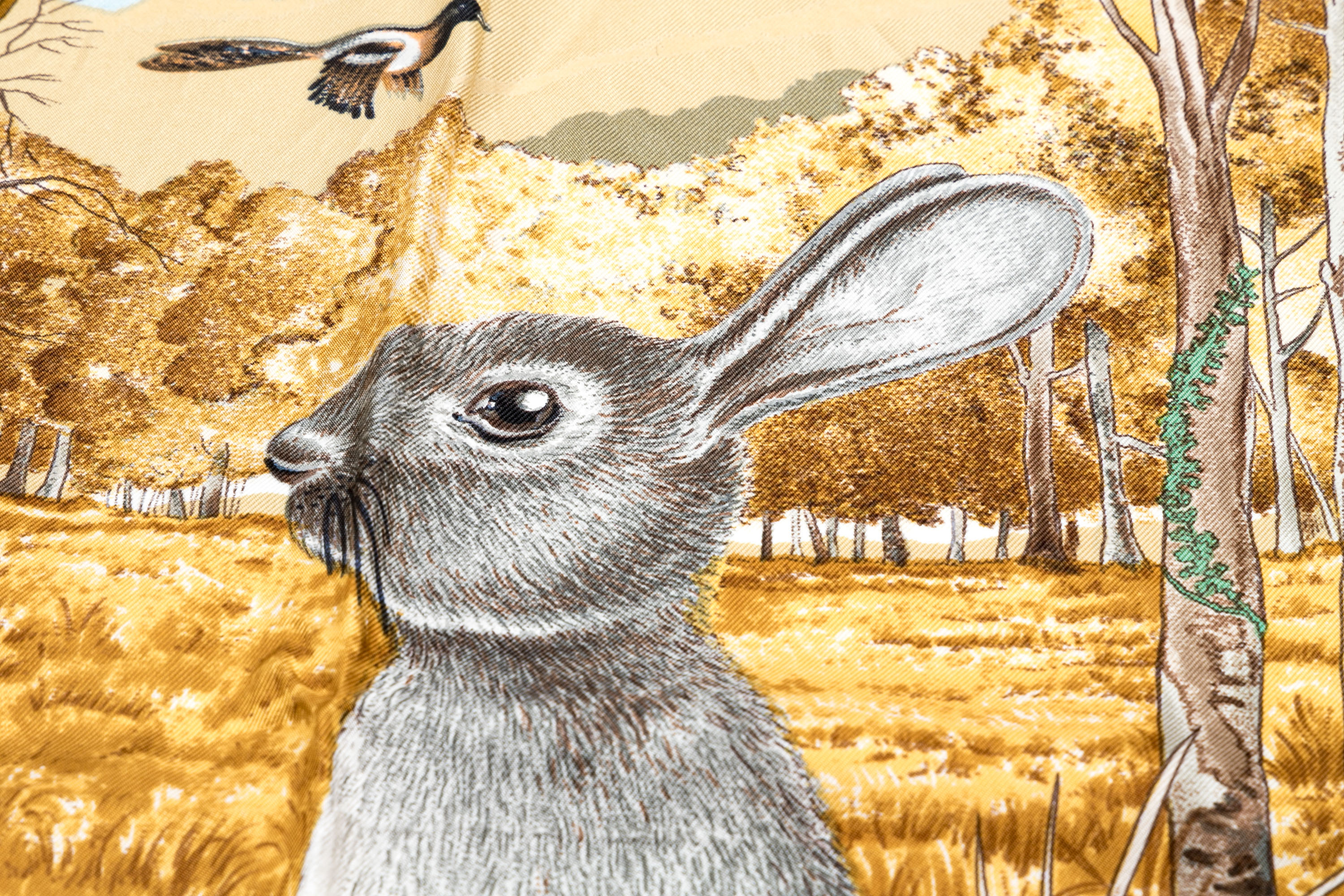 Hermès fabulous Chasse au Bois woodland scene silk scarf