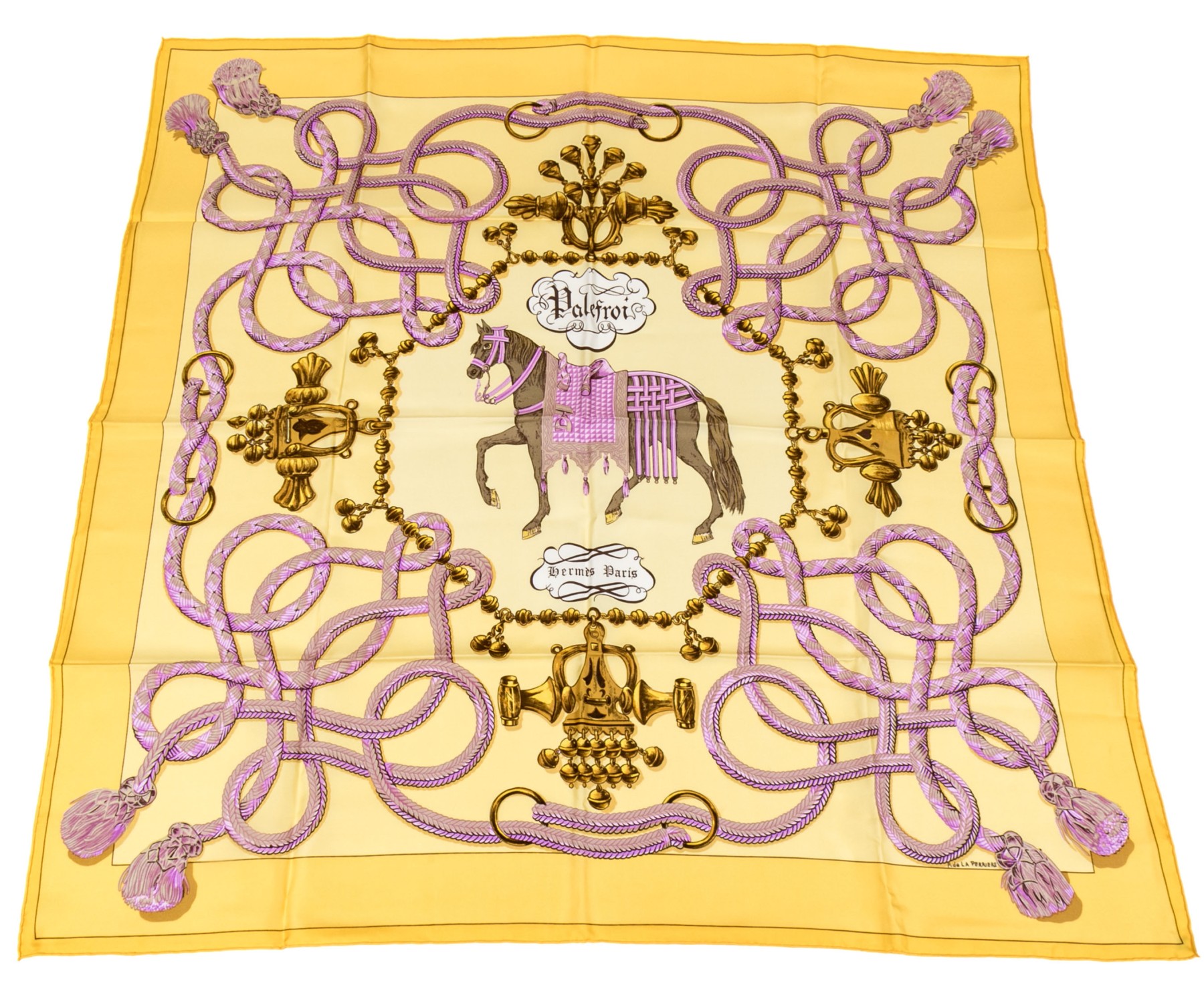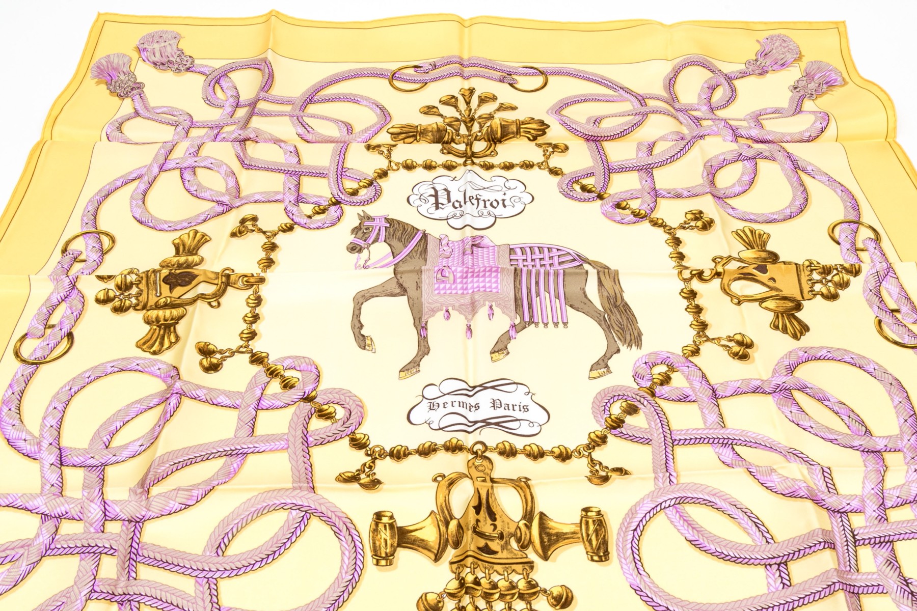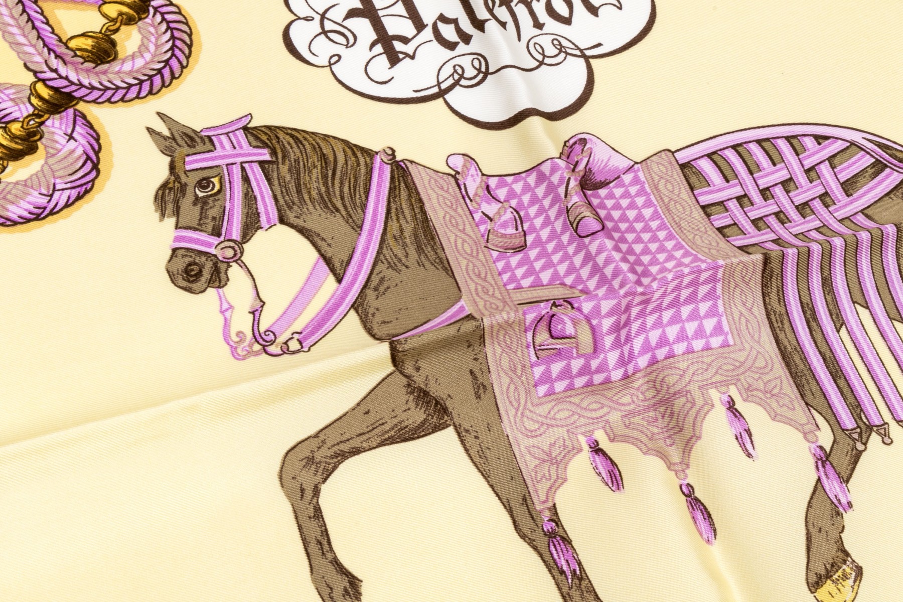 Hermès Paris interesting vintage "Palefroi" palfrey horse motif silk scarf, by Françoise de la Perrière