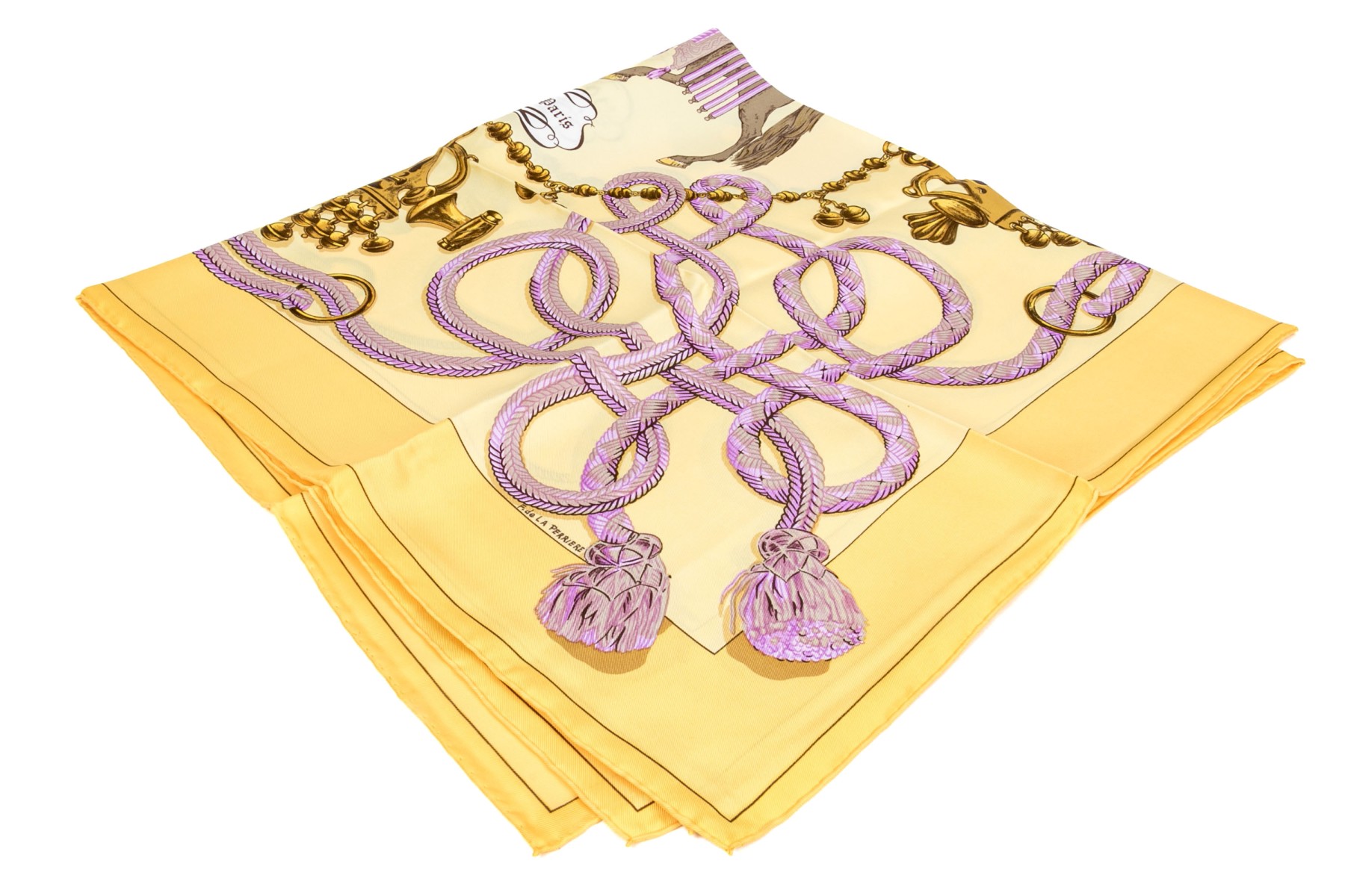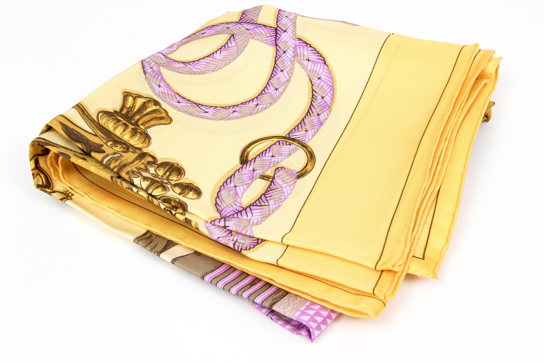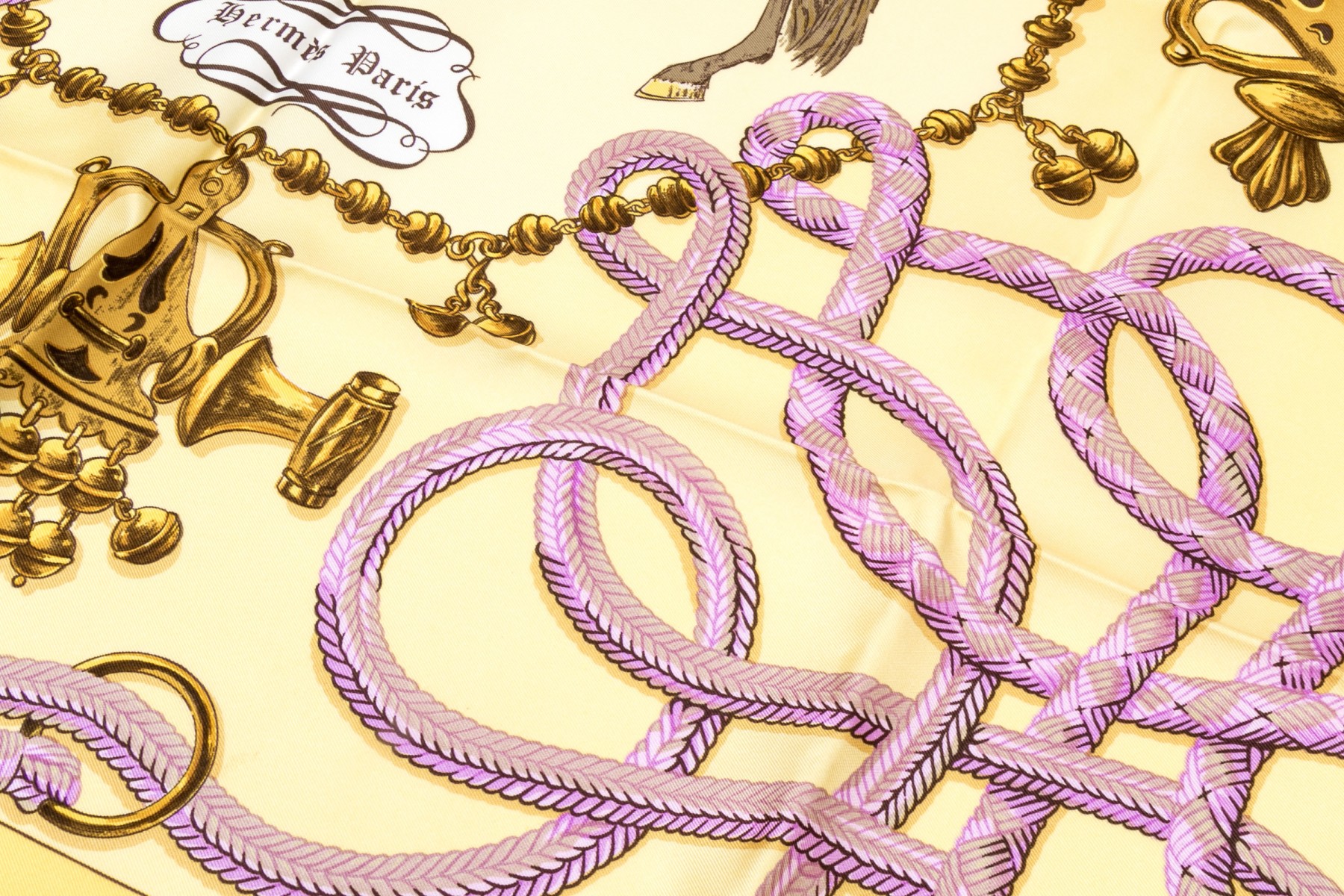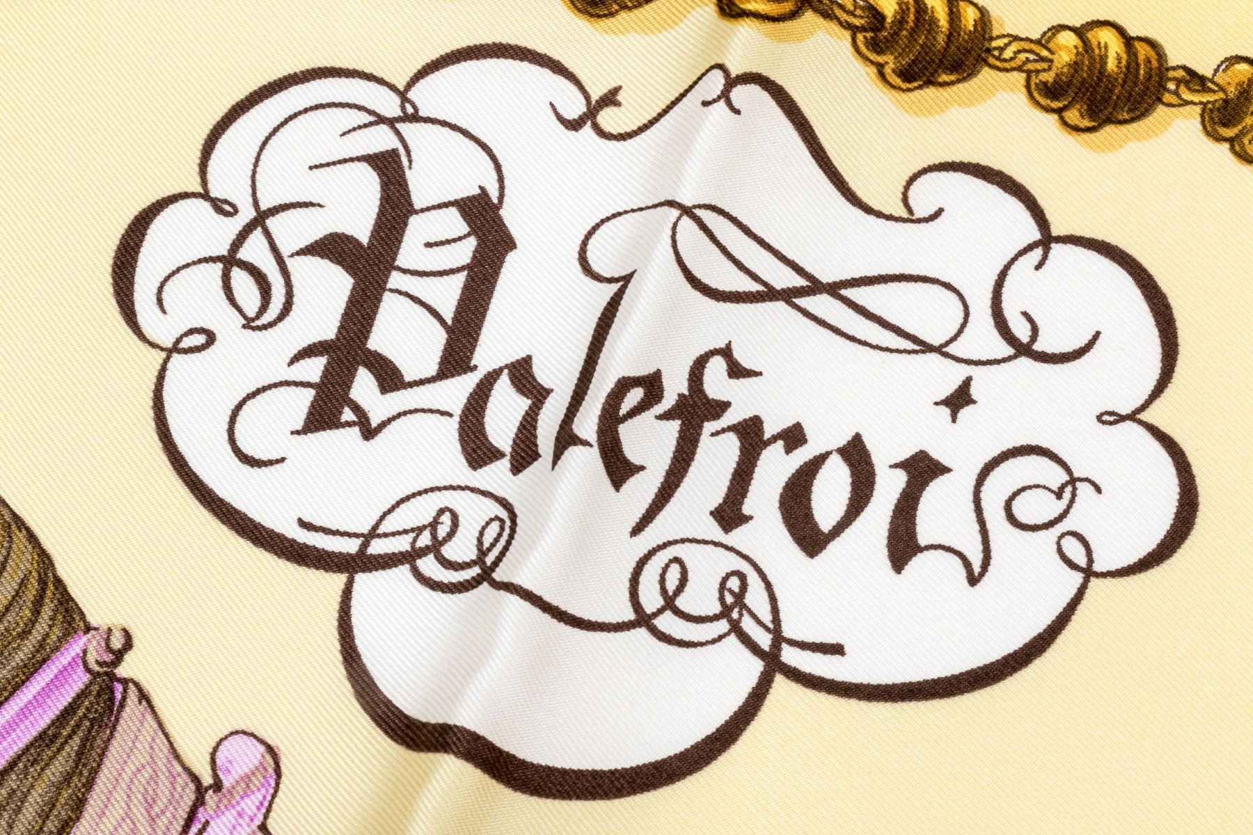 Hermès Paris interesting vintage "Palefroi" palfrey horse motif silk scarf, by Françoise de la Perrière