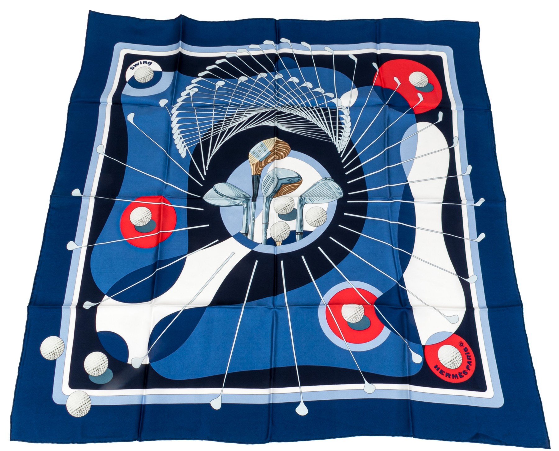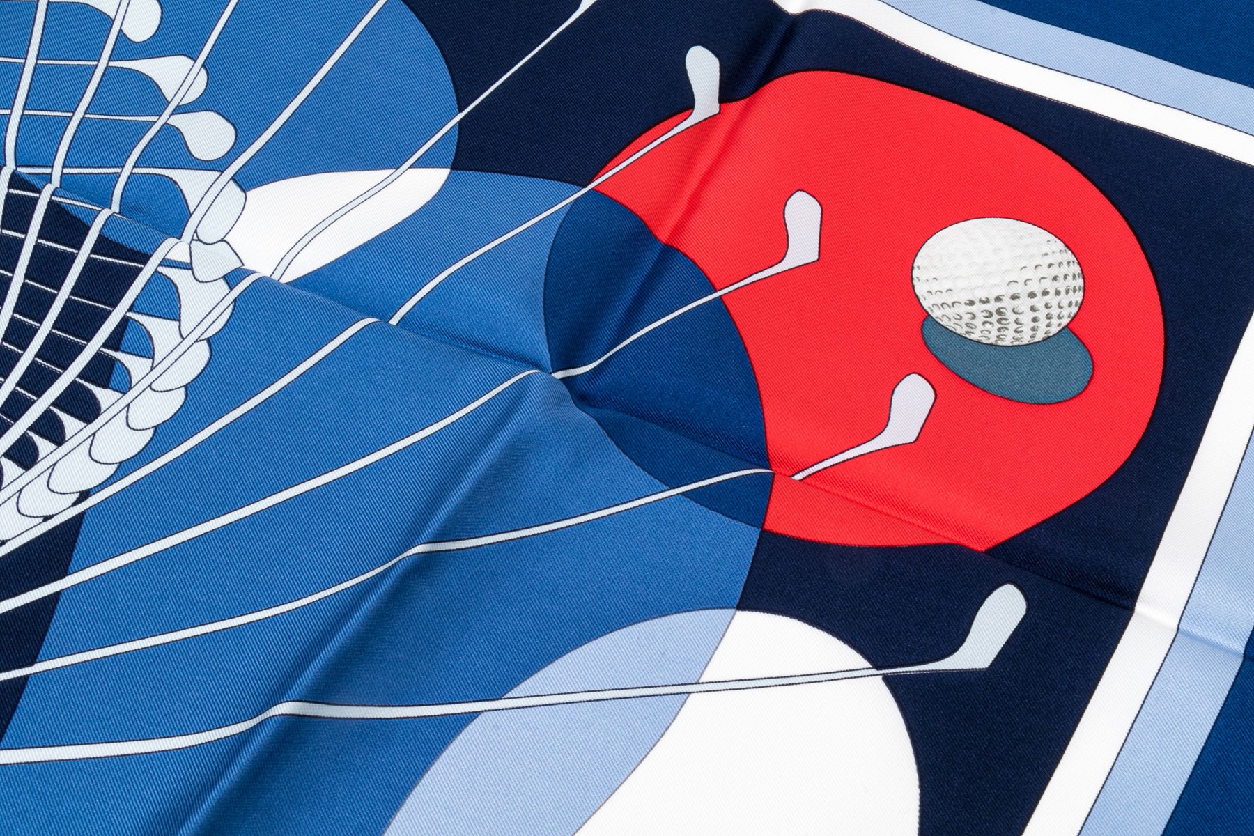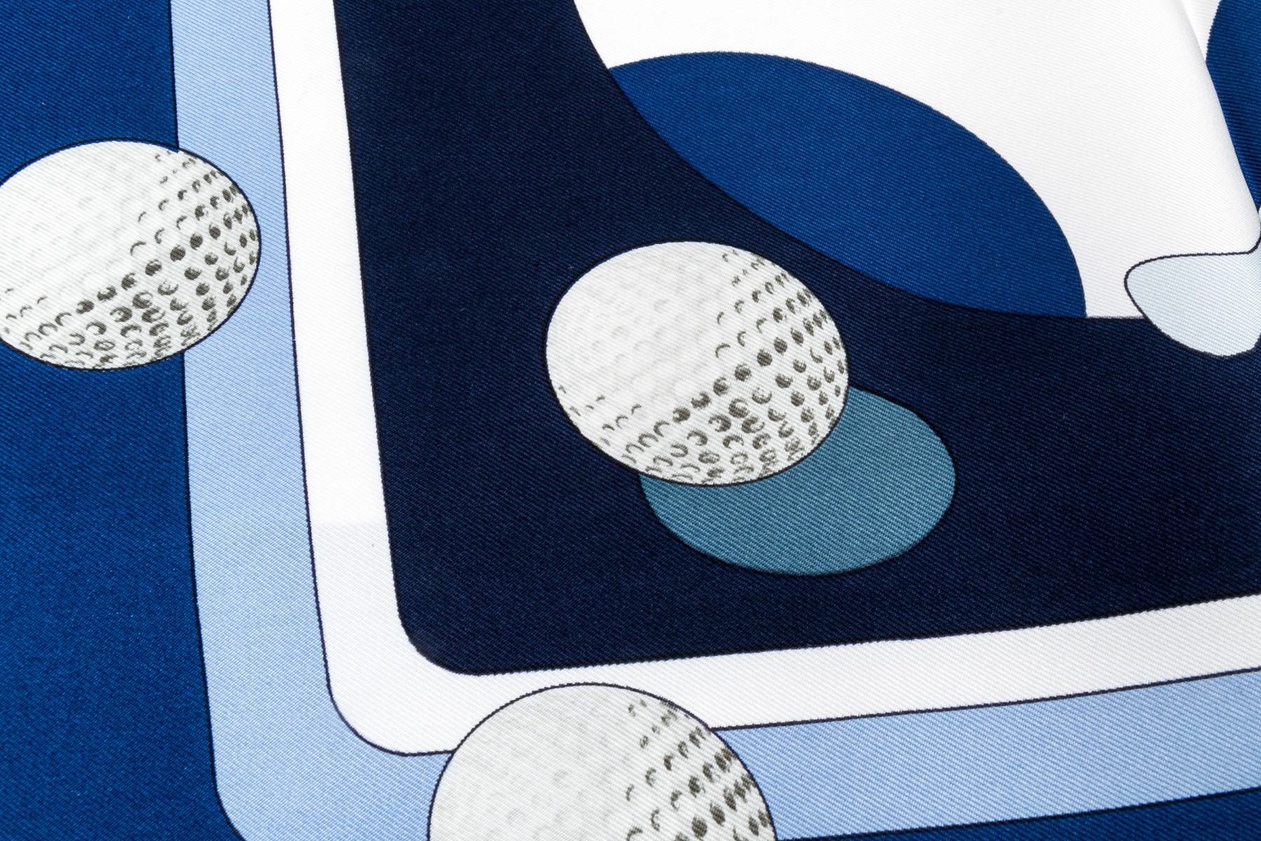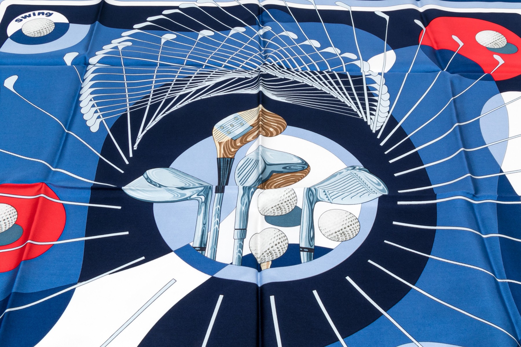 Hermès Paris striking "Swing" vintage golf motif silk scarf, by Julia Abadie