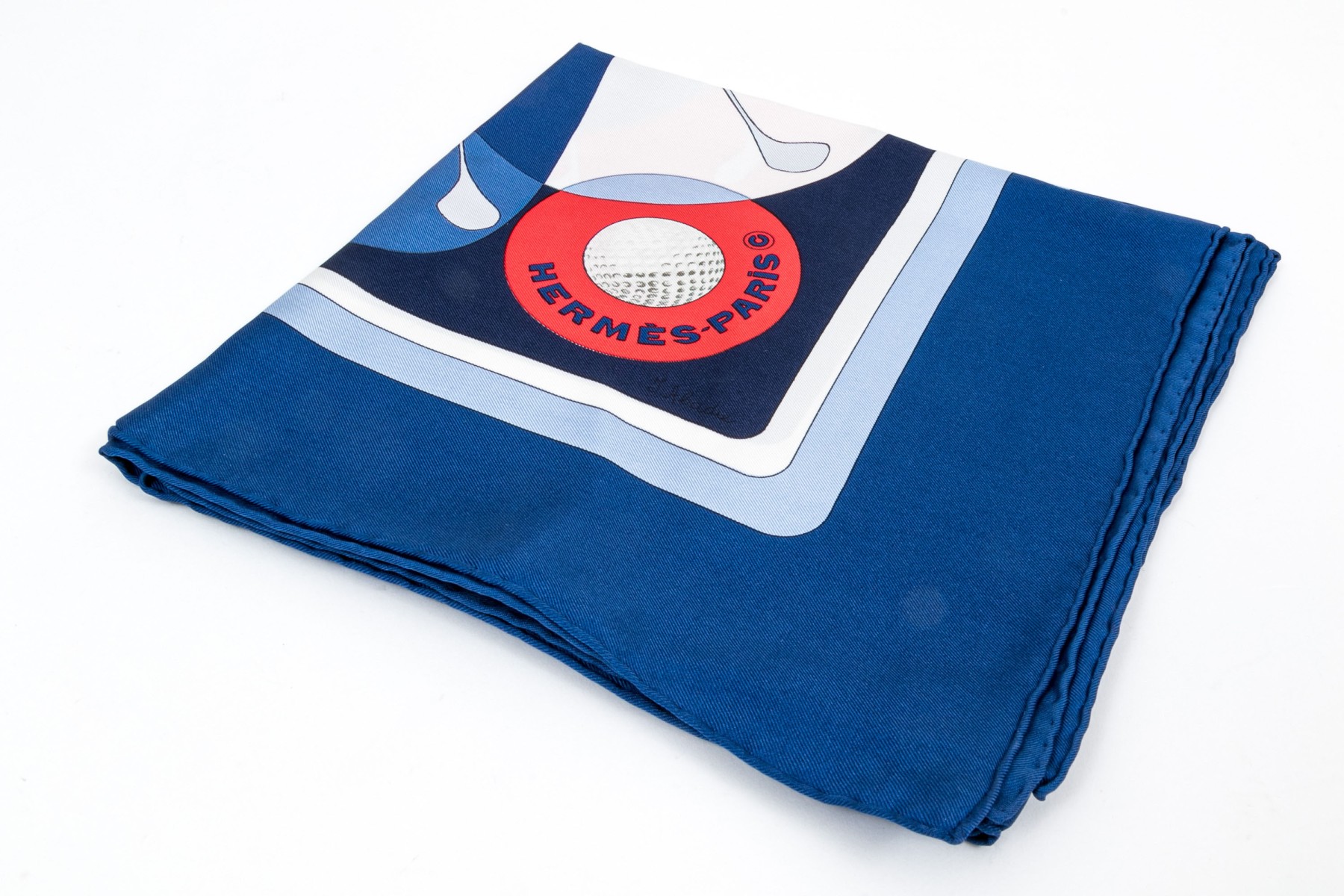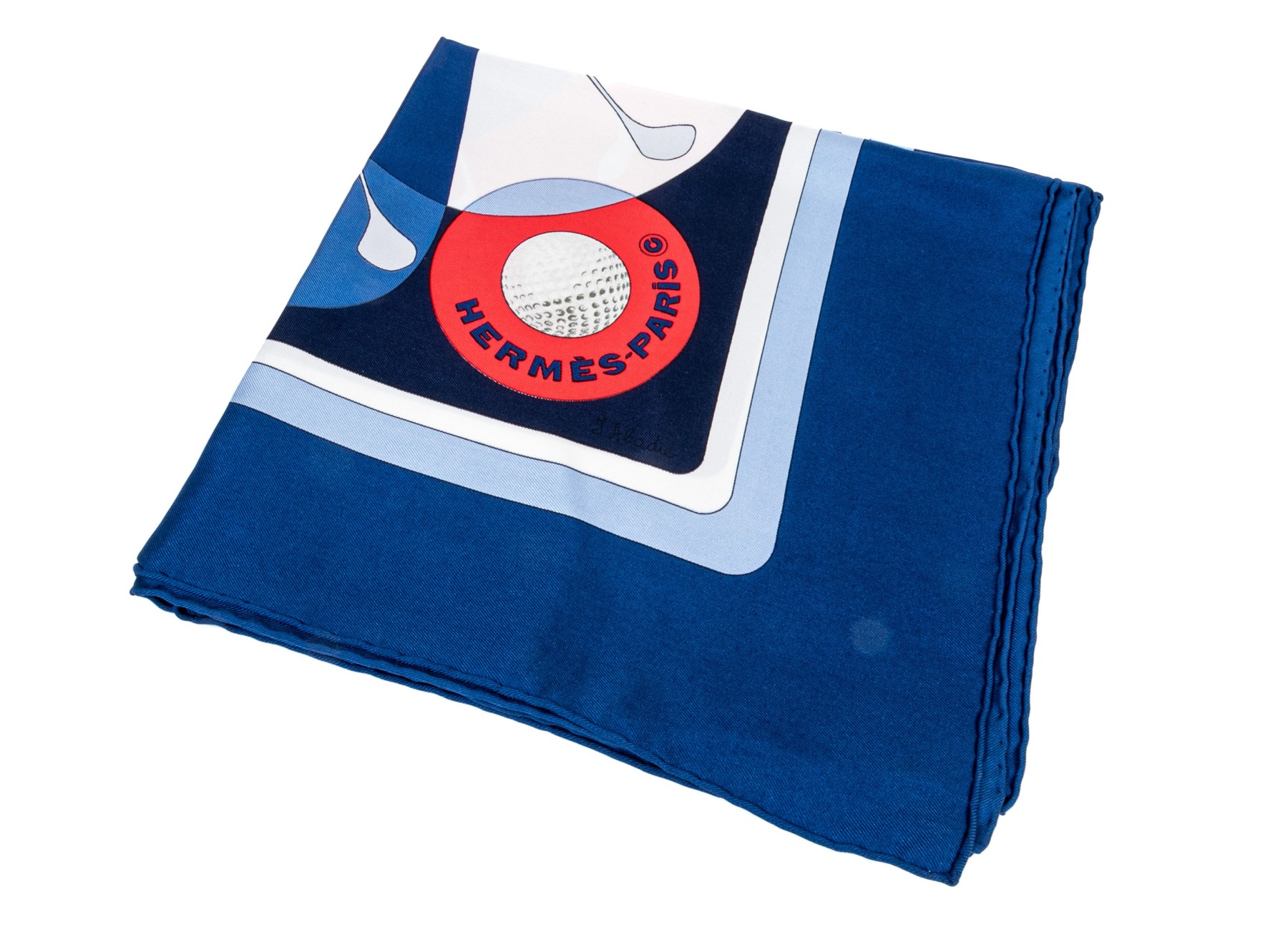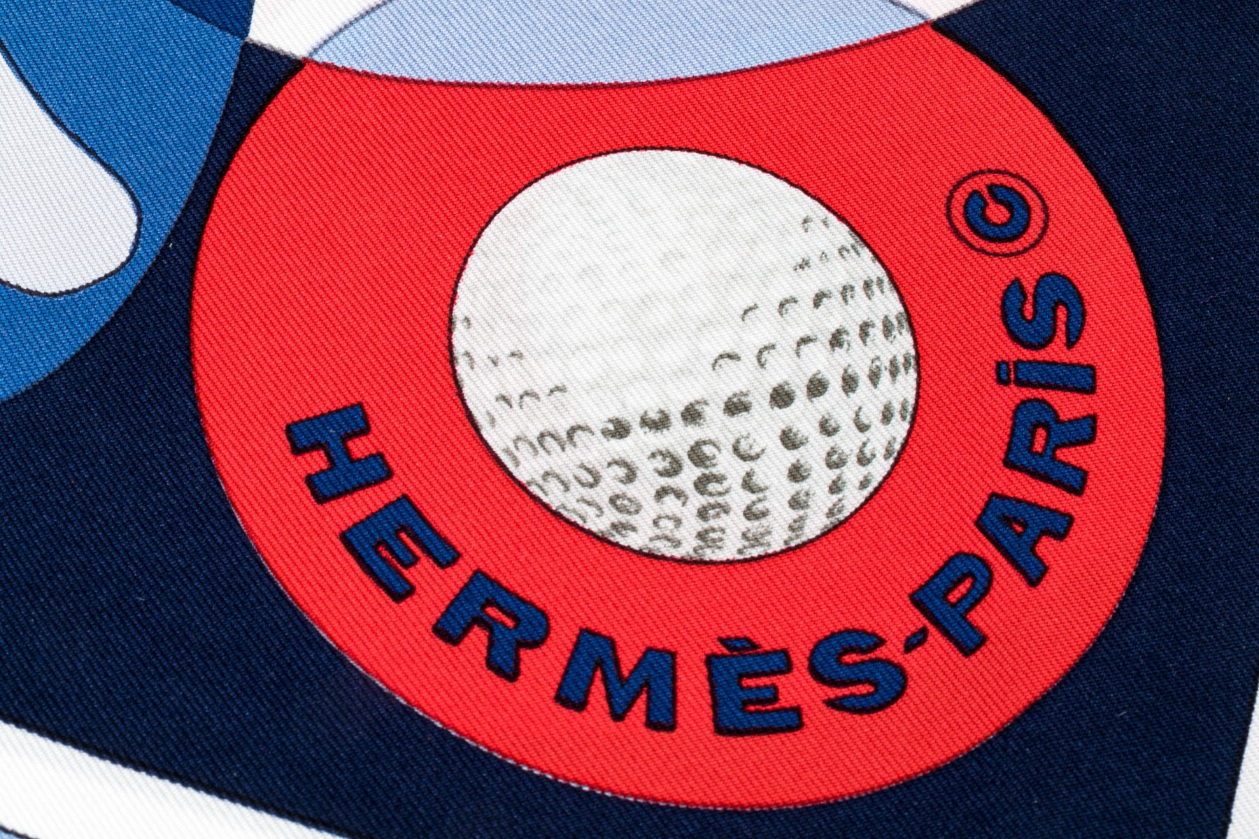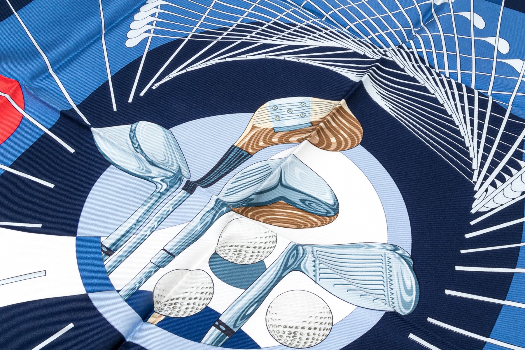 Hermès Paris striking "Swing" vintage golf motif silk scarf, by Julia Abadie
