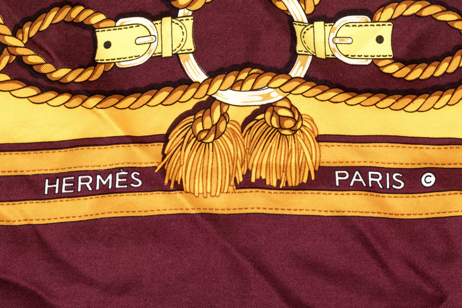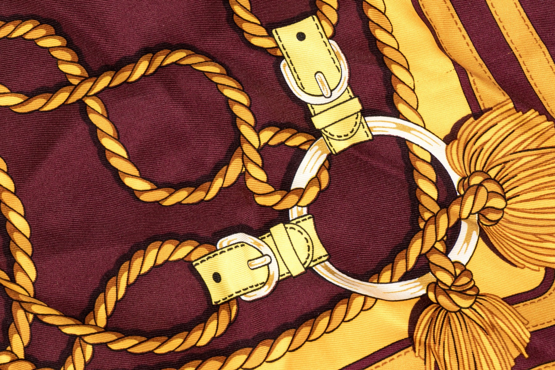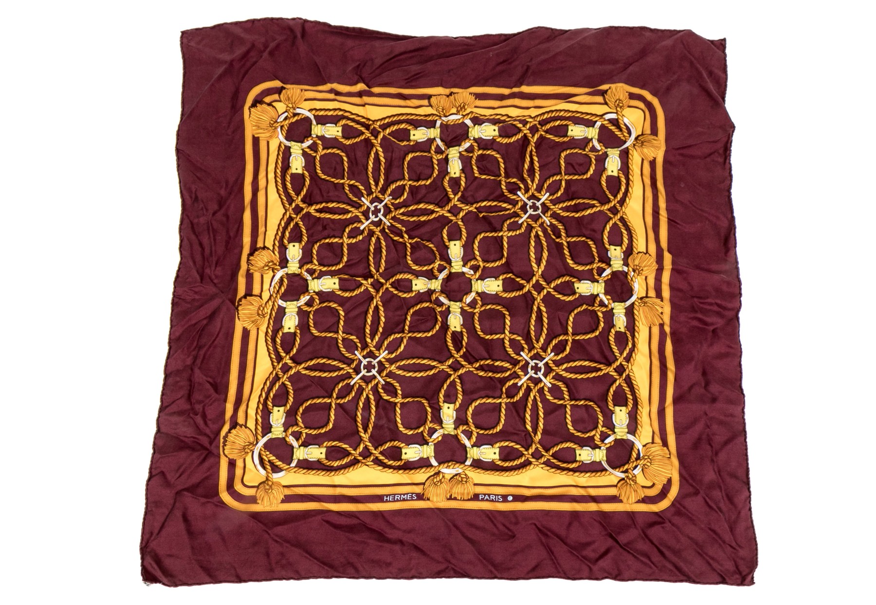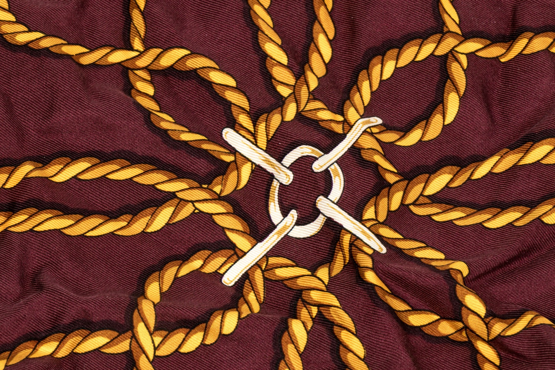 Hermès Paris vintage striking burgundy and gold rope motif silk scarf