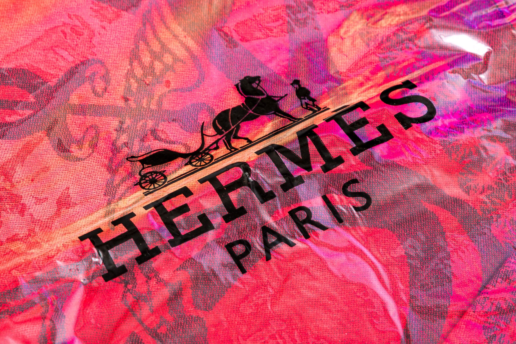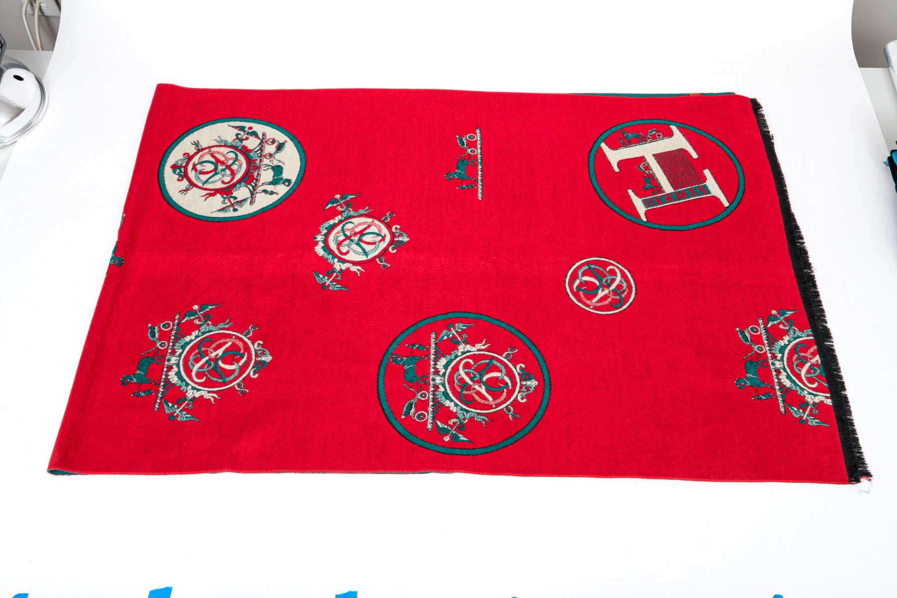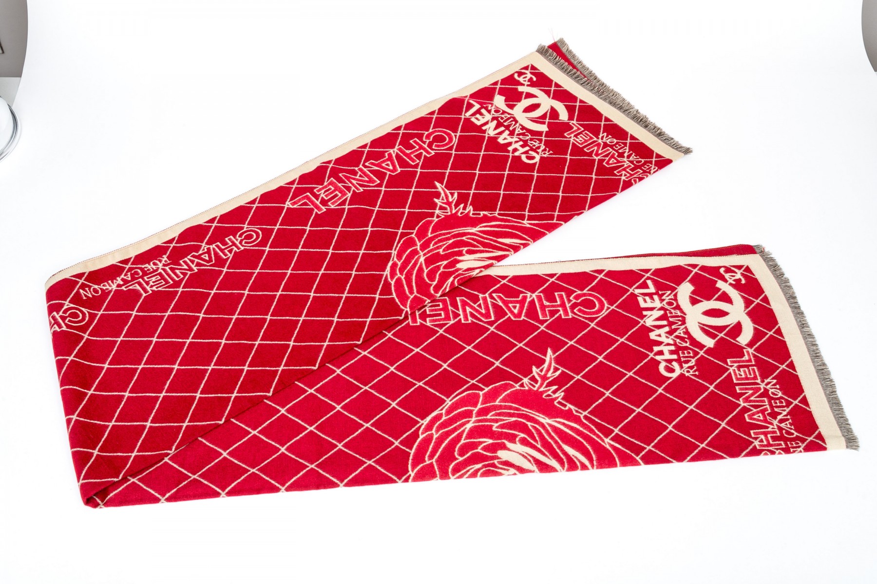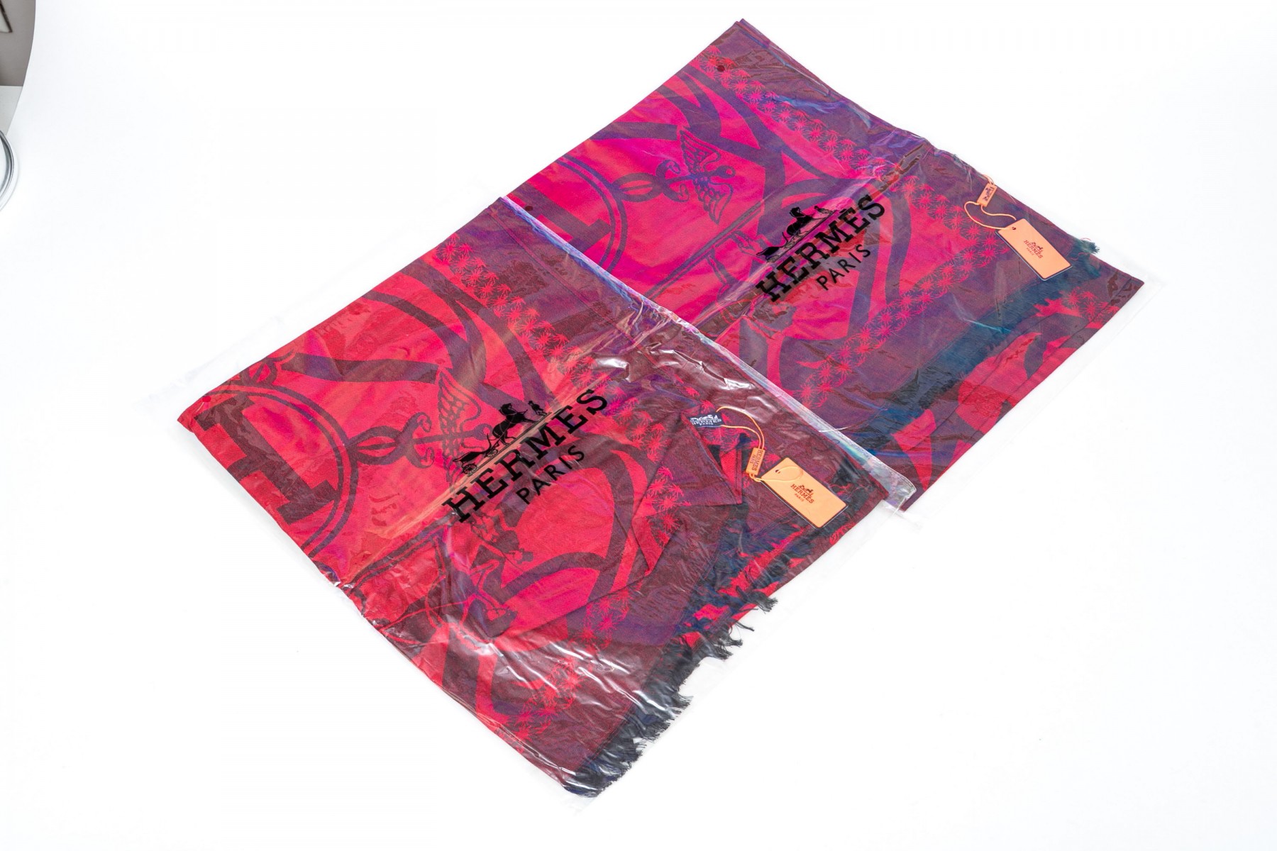 Dimensions: Various sizes ranging from 70" L x 34" W-Hermes orange silk scarf, 64" L x 26" W-Red and Green Hermes, 70" L x 27" W-Black and Multi Colored Hermes, 72" L x 26" W-Pink and Grey Chanel, 72" L x 24" W-Red and Tan Chanel.