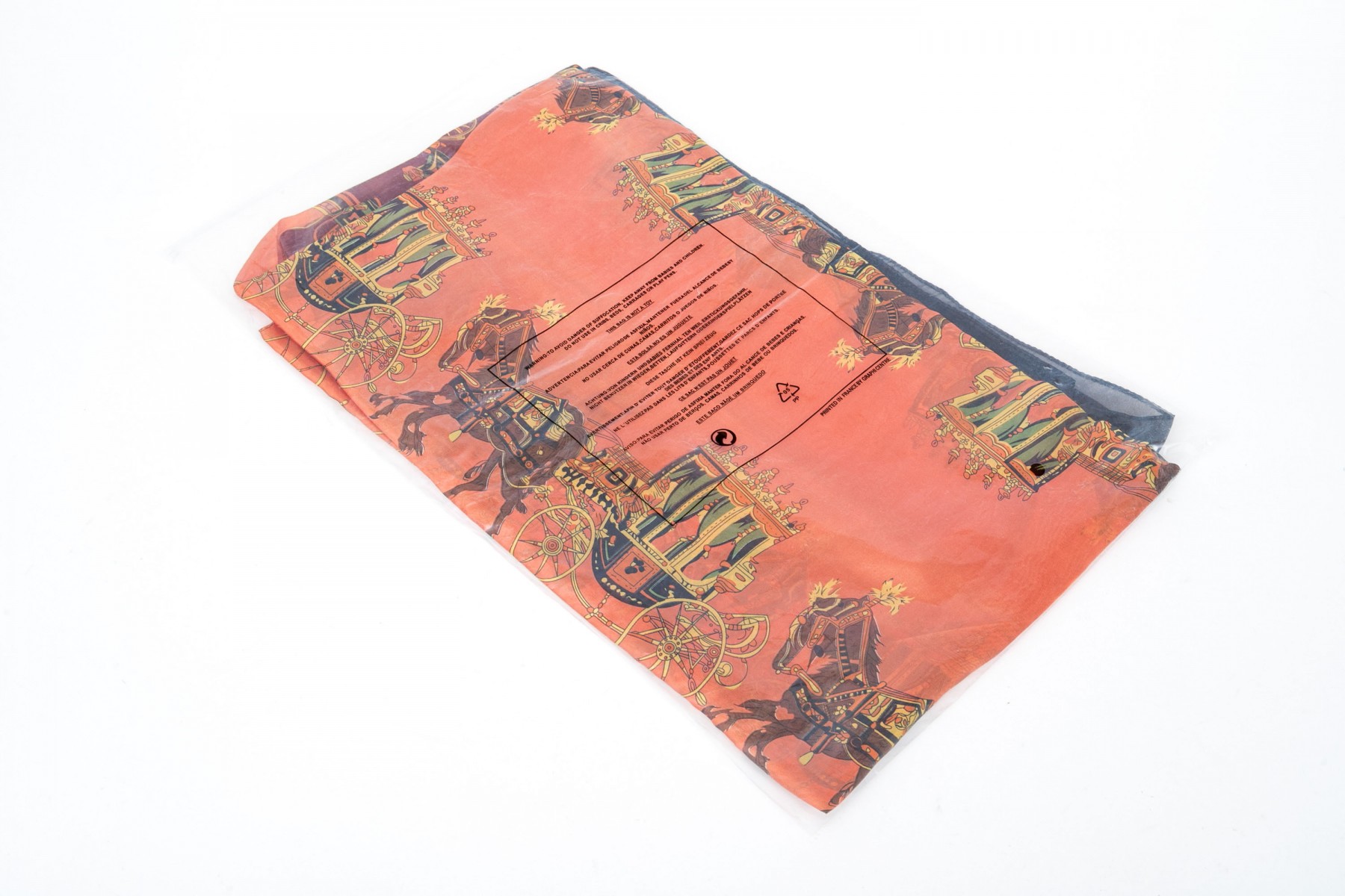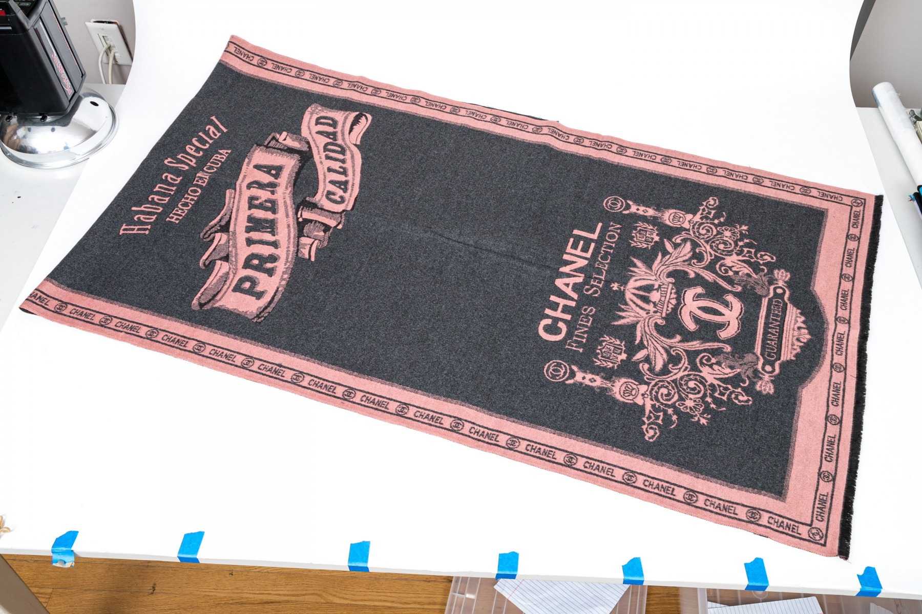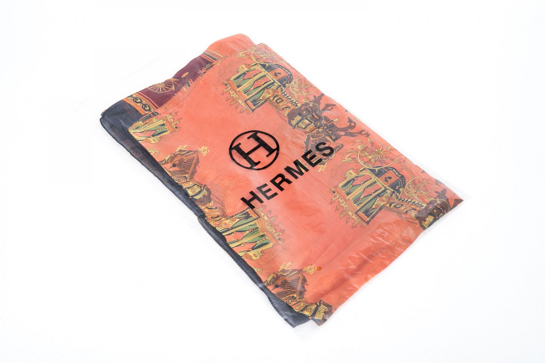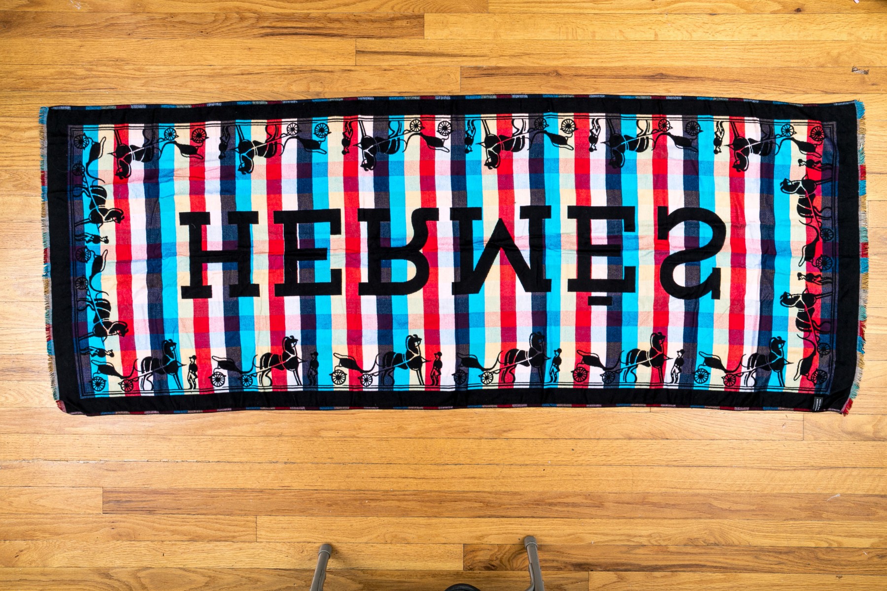 Dimensions: Various sizes ranging from 70" L x 34" W-Hermes orange silk scarf, 64" L x 26" W-Red and Green Hermes, 70" L x 27" W-Black and Multi Colored Hermes, 72" L x 26" W-Pink and Grey Chanel, 72" L x 24" W-Red and Tan Chanel.