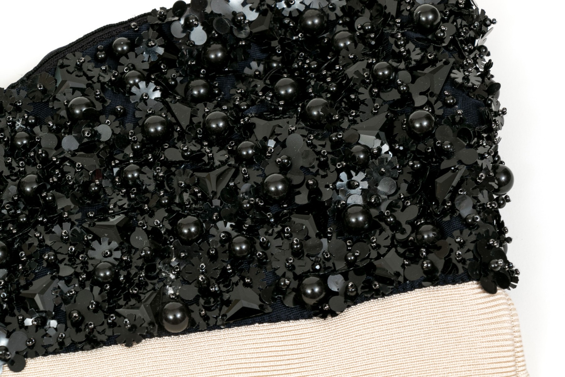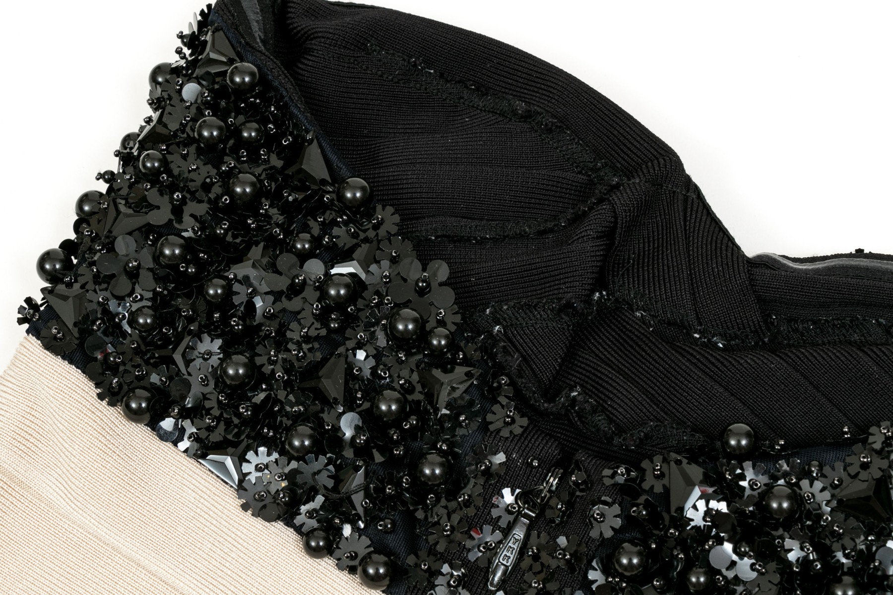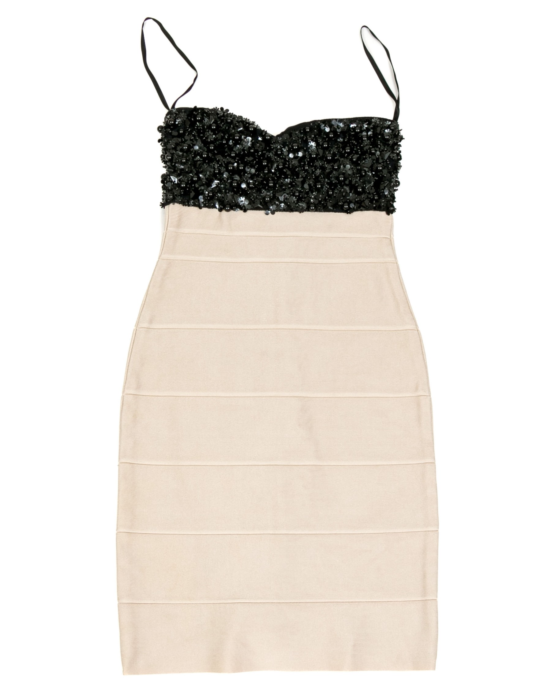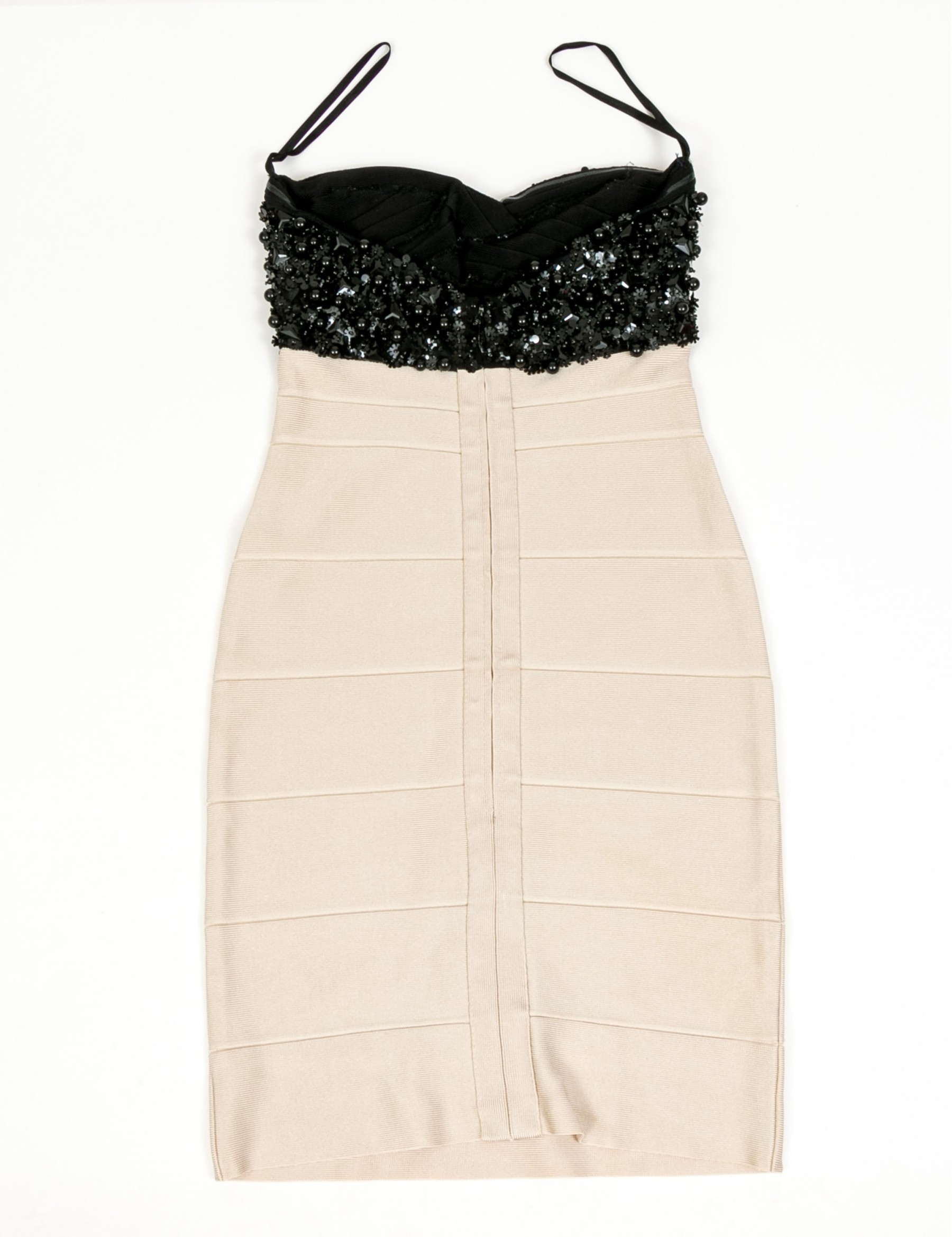 Hervé Léger elegant black and ivory bedazzled strapless sheath dress, size XS