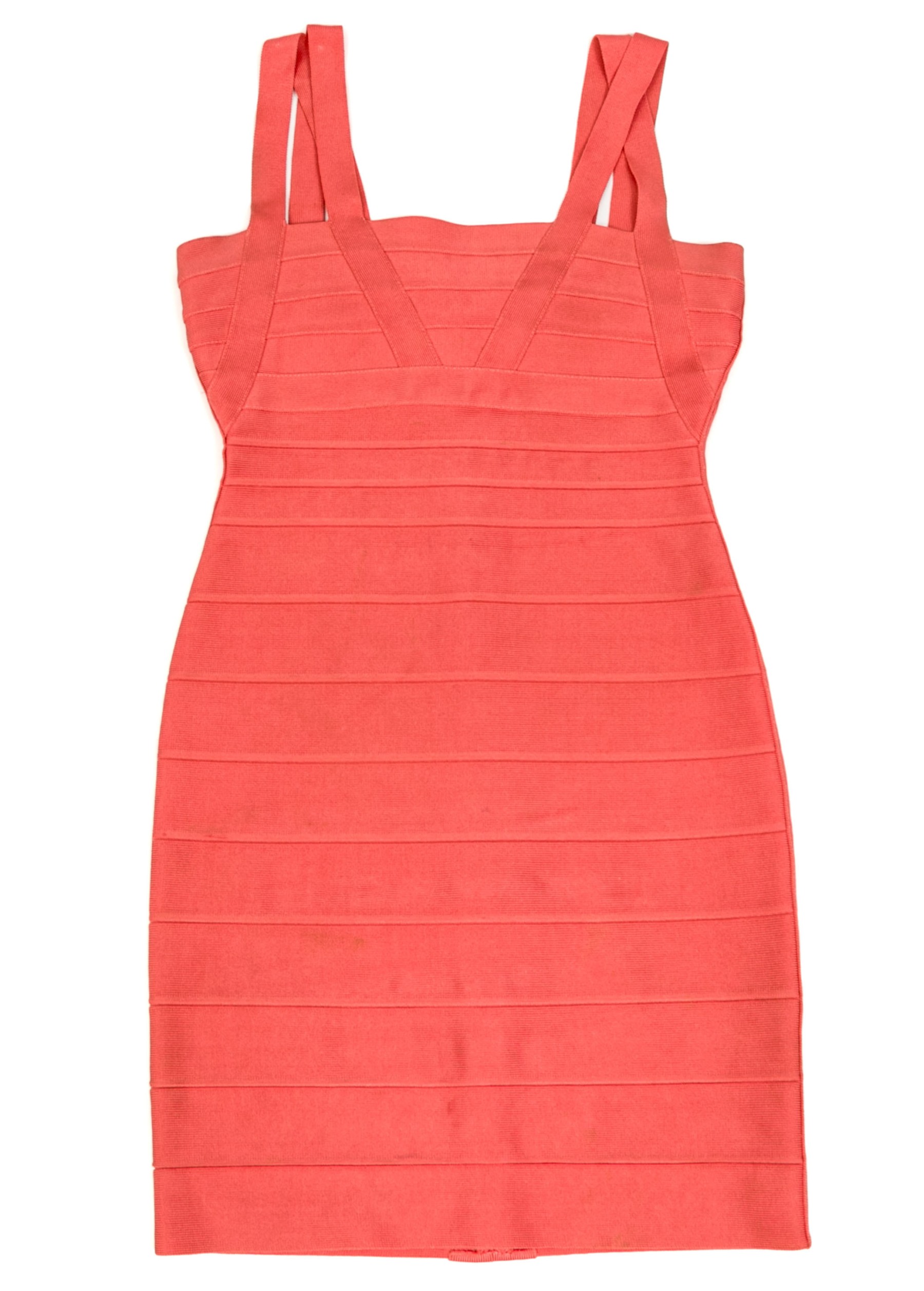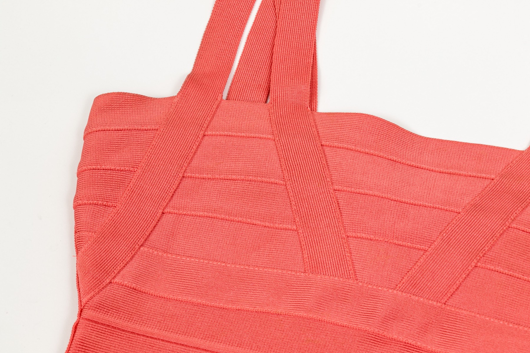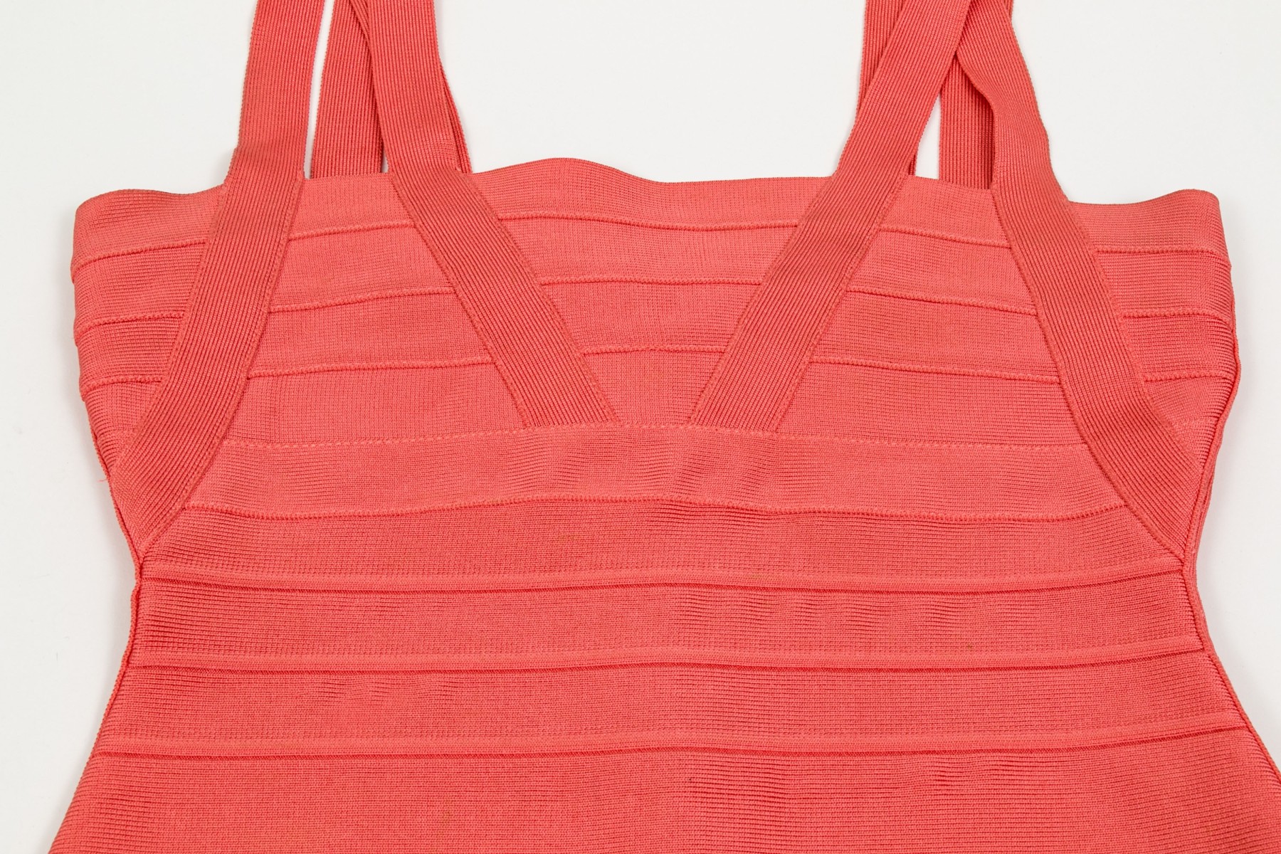 Hervé Léger lovely coral sleeveless sheath dress, size small