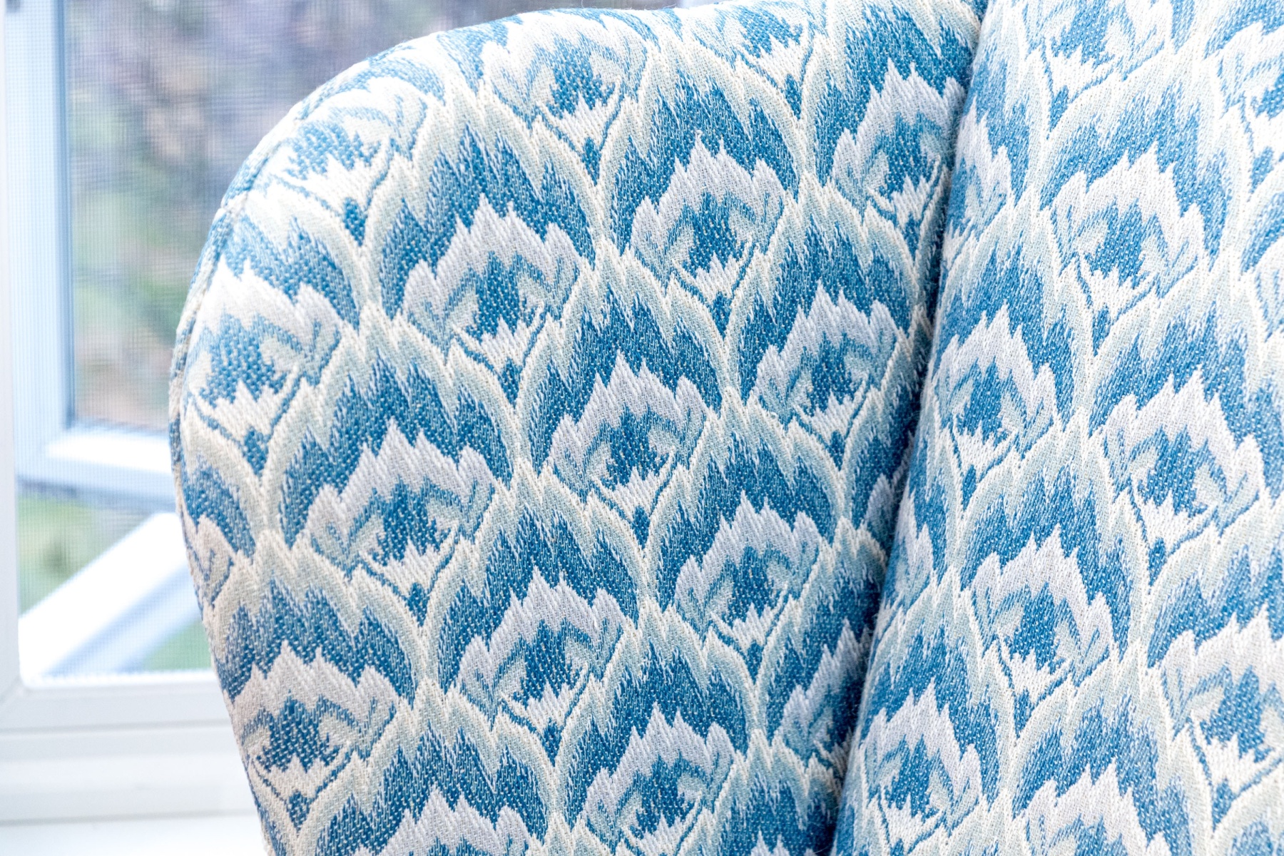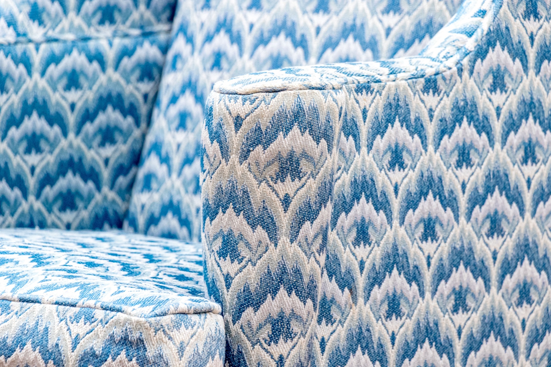Wear to the upholstery with some stain spots commensurate with age and use.