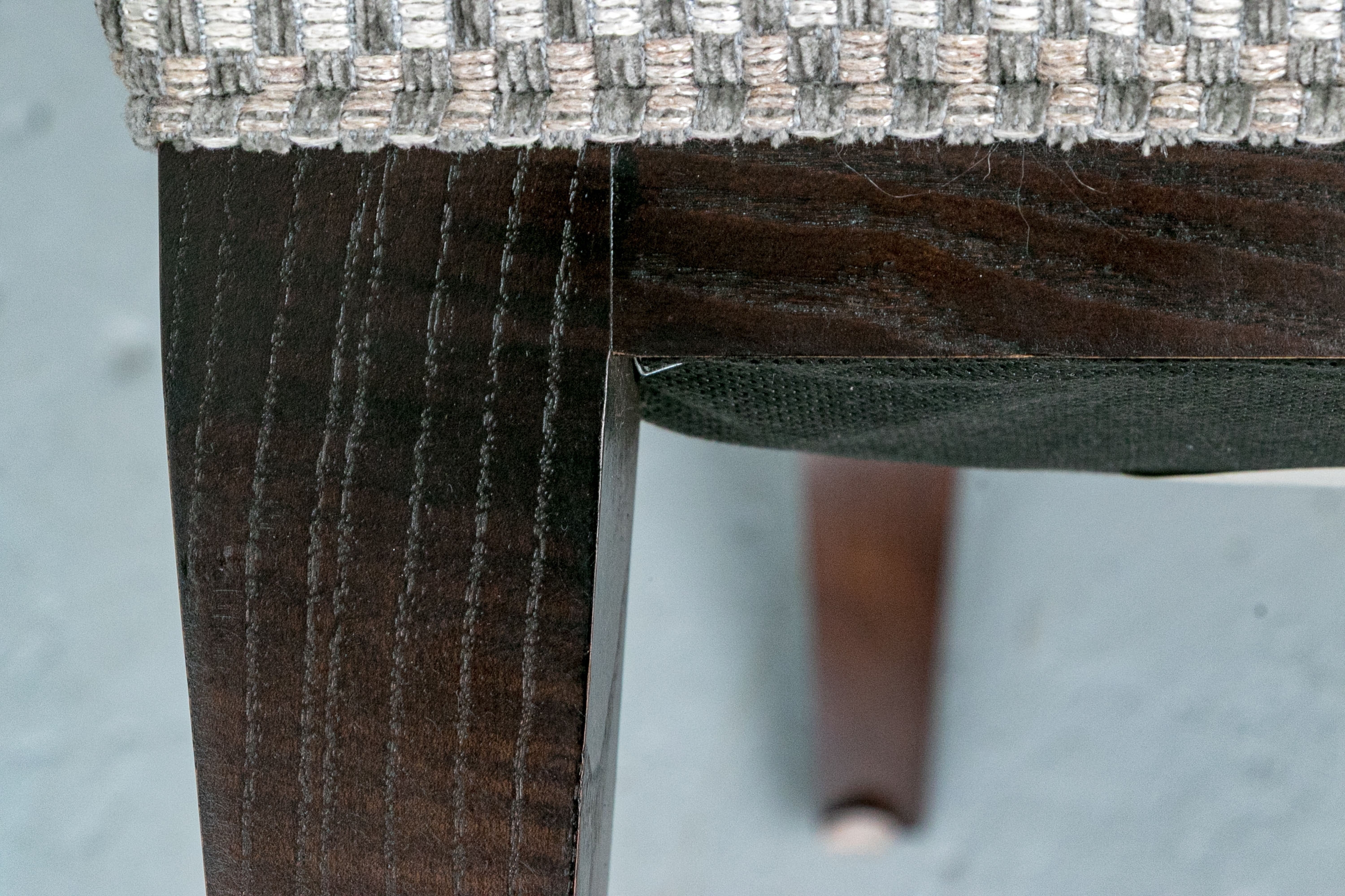 Condition: chair in overall good condition with just traces of use, the ottoman with a few snags to fabric.