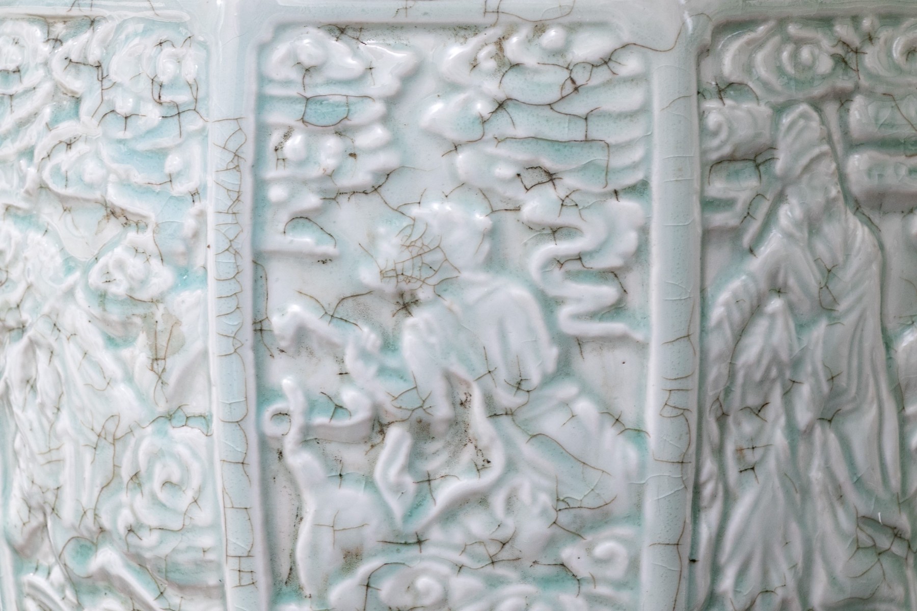 Condition: darkened crazing as can be seen in photos otherwise good condition and absolutely stunning in a soft blue palette.