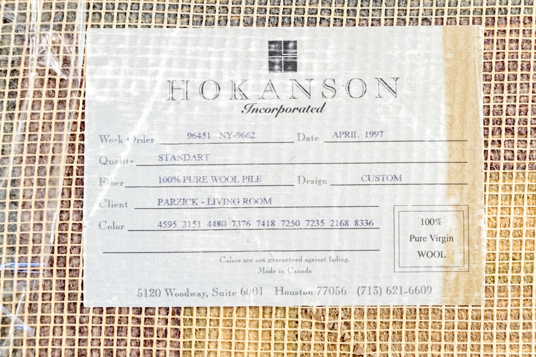 The carpet which bears a Hokanson incorporated label on verso from 1997, denotes the corpet as being 100% pure wool pile with a custom design.