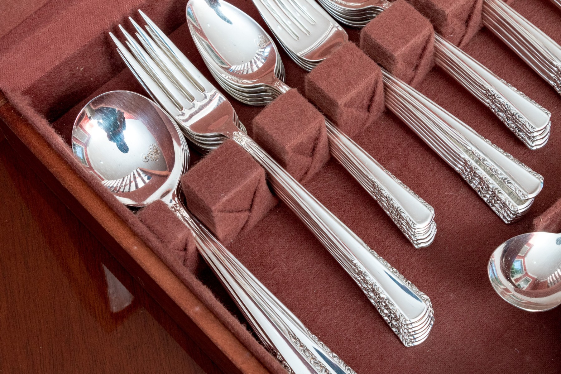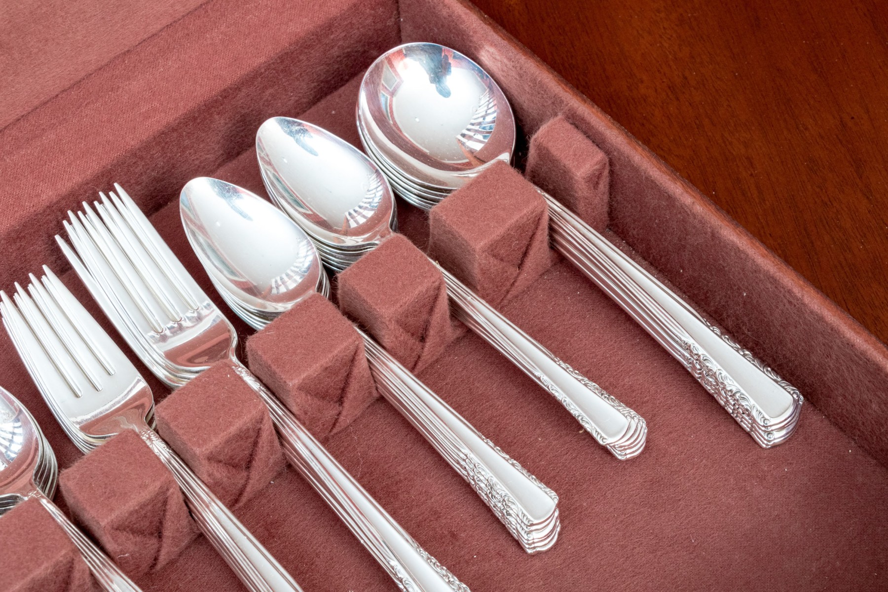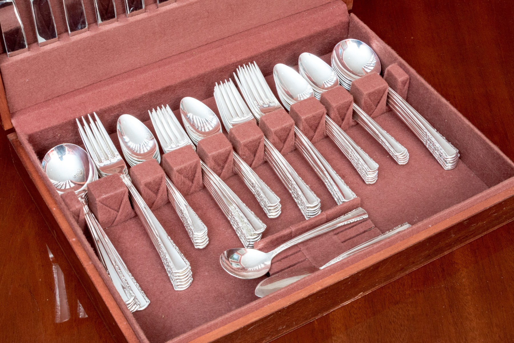 Good overall. Slight scuffs. Could use a cleaning but a great set of flatware for occasional or every day use. Please review the photos as they are part of the condition report.