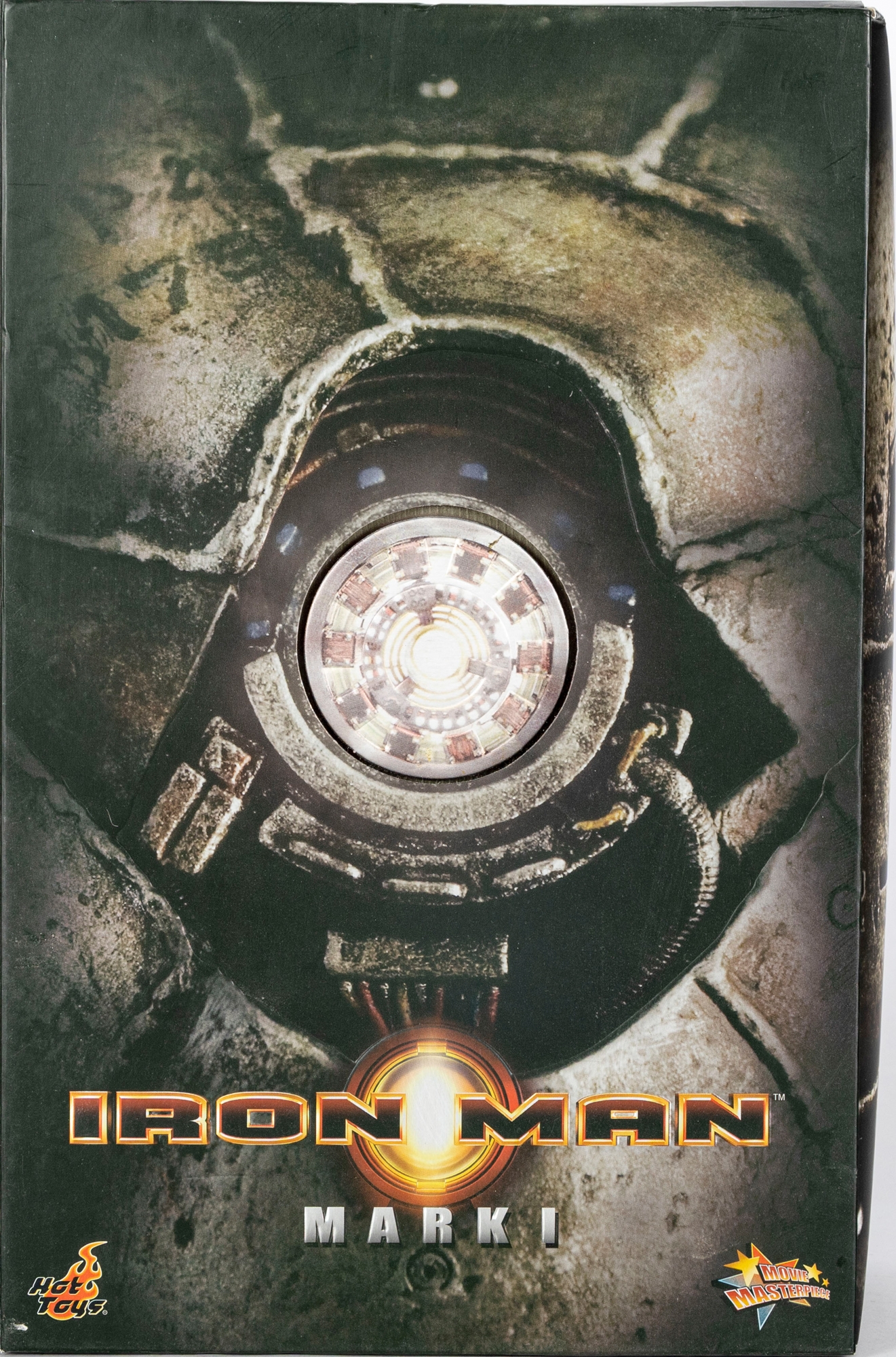 Highly detailed die-cast and plastic construction figure, accurately replicating the rugged, hand-forged armor Tony Stark built in captivity. Features intricate weathered metallic finish, authentic wiring and tubing details, and a light-up arc reactor in the chest. Presented in its original “Iron Man Mark I” collector’s box with artwork and viewing window.