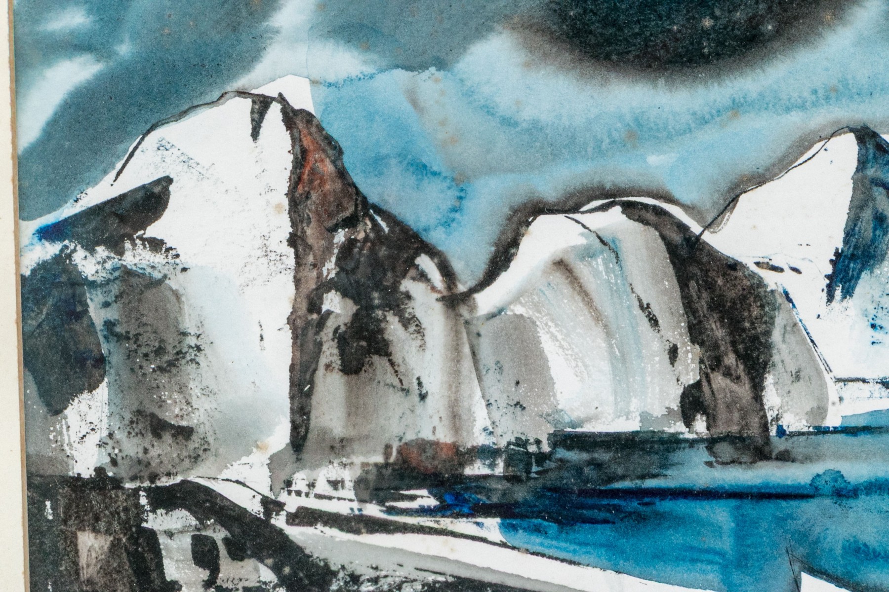 Foxing to verso, mat burn, and a discolored mat but still presents very nicely.