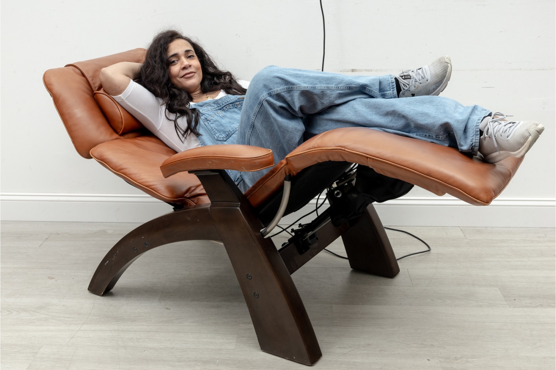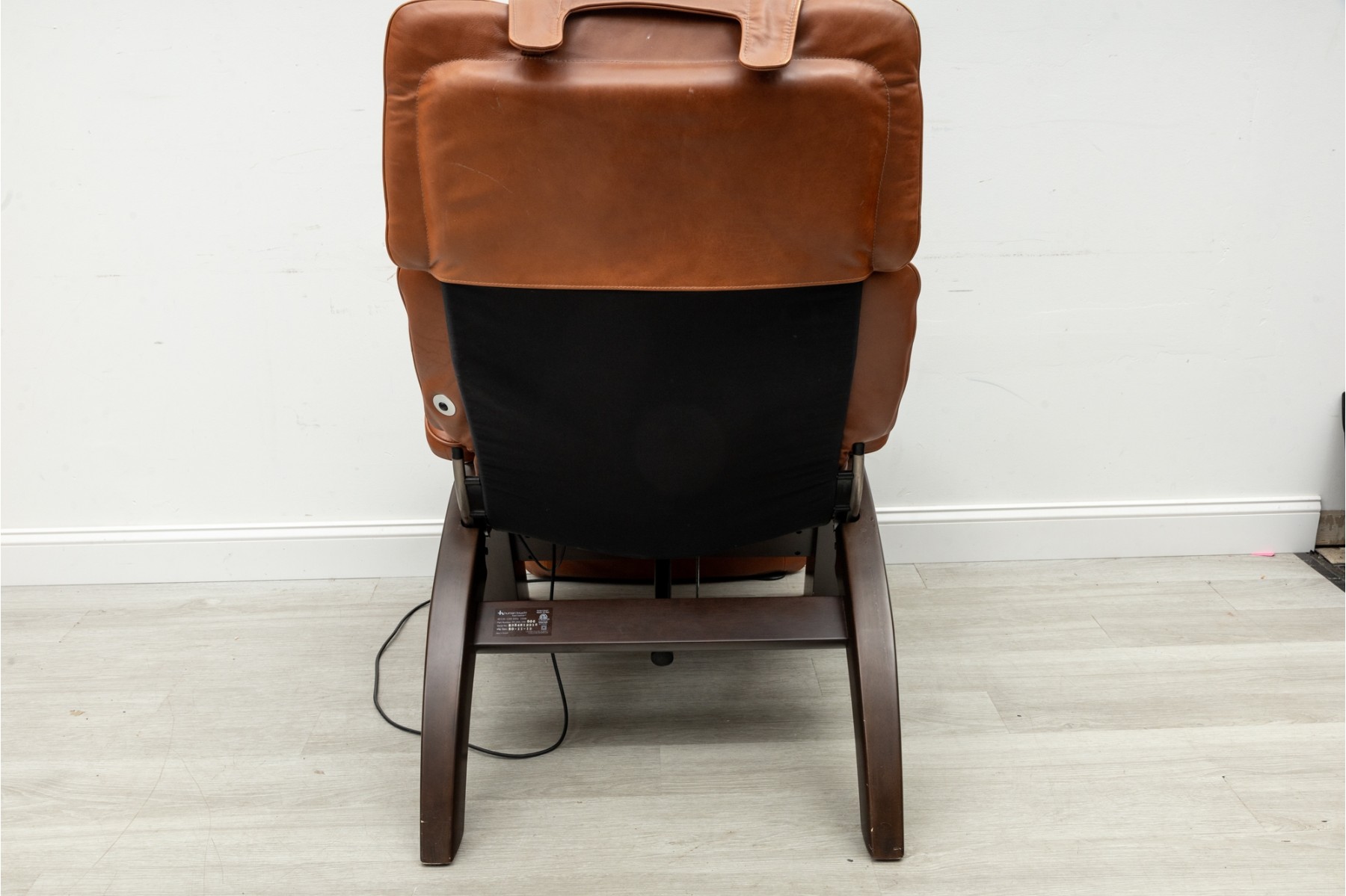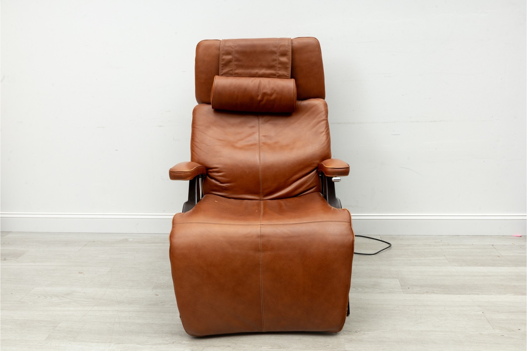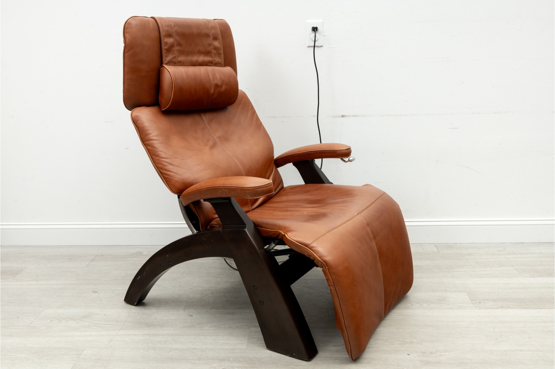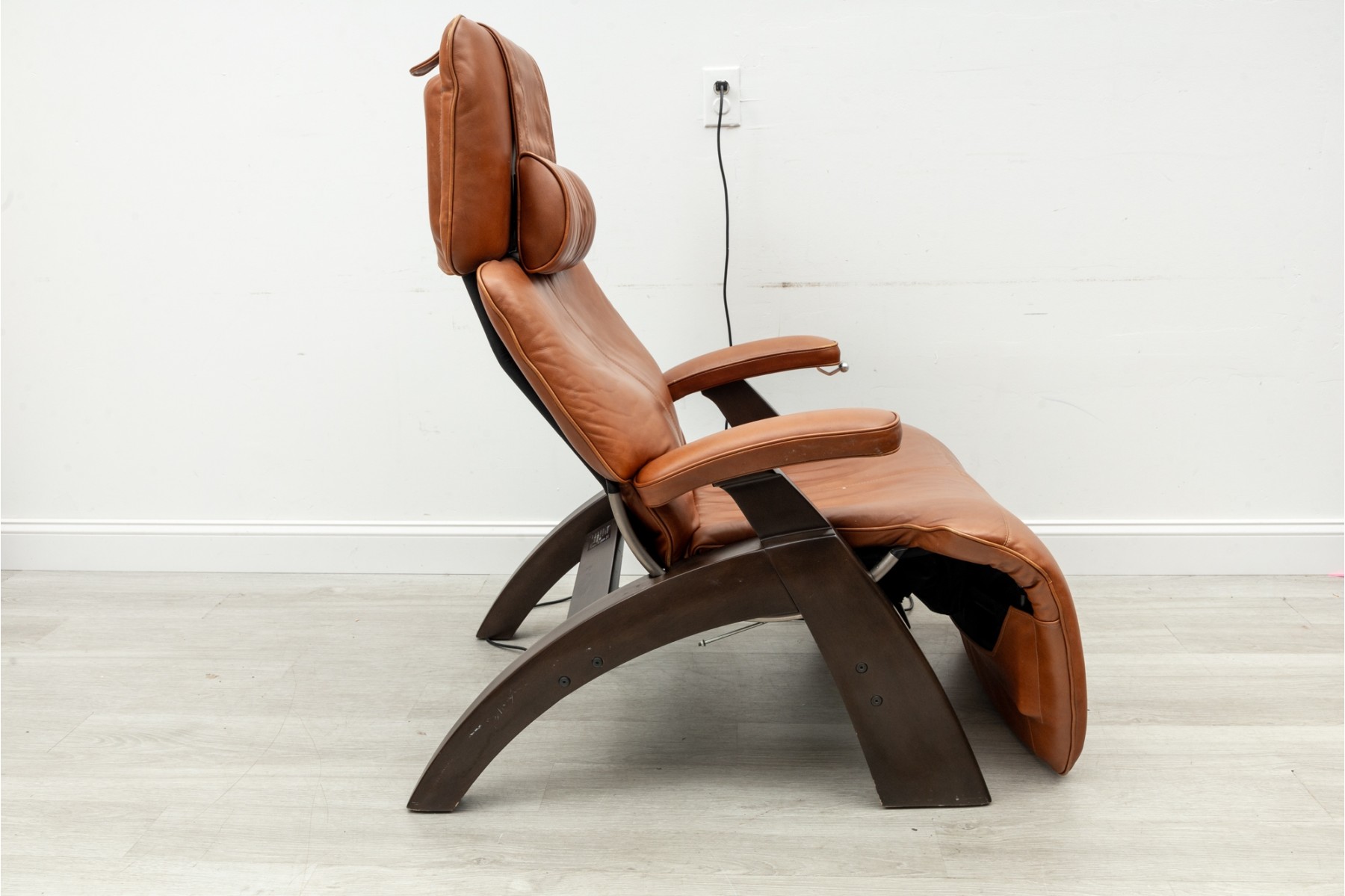 The Human Touch PC-095 Zero Gravity Recliner is a sleek, ergonomically designed chair that promotes relaxation and spinal alignment. It features a zero-gravity position that evenly distributes body weight, reducing stress on the spine and enhancing circulation. Upholstered in high-quality premium saddle leather material, it includes a smooth recline mechanism, padded armrests, and a contoured seat for optimal comfort.
