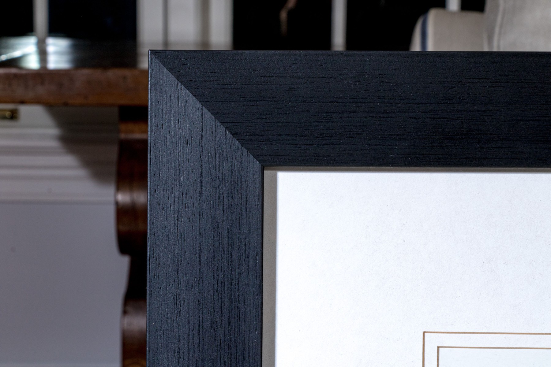 The work is presented matted within a black finished frame and glazed with plexiglass.