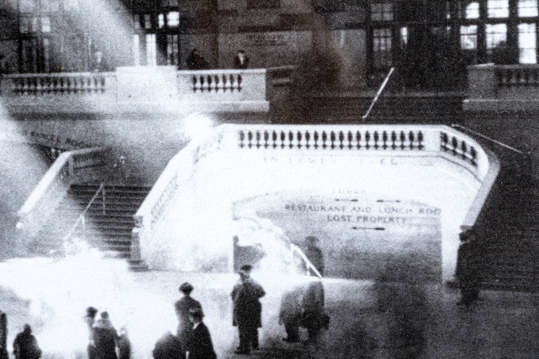 An iconic image of the 20th century. The work depicts the landmark site circa 1940's brimming with Americana and the exploits of the industrial revolution being bathed in sun light which appears to beam in through upper tiered windows.