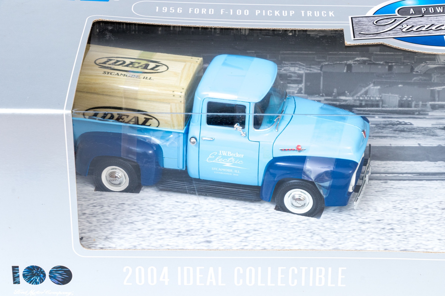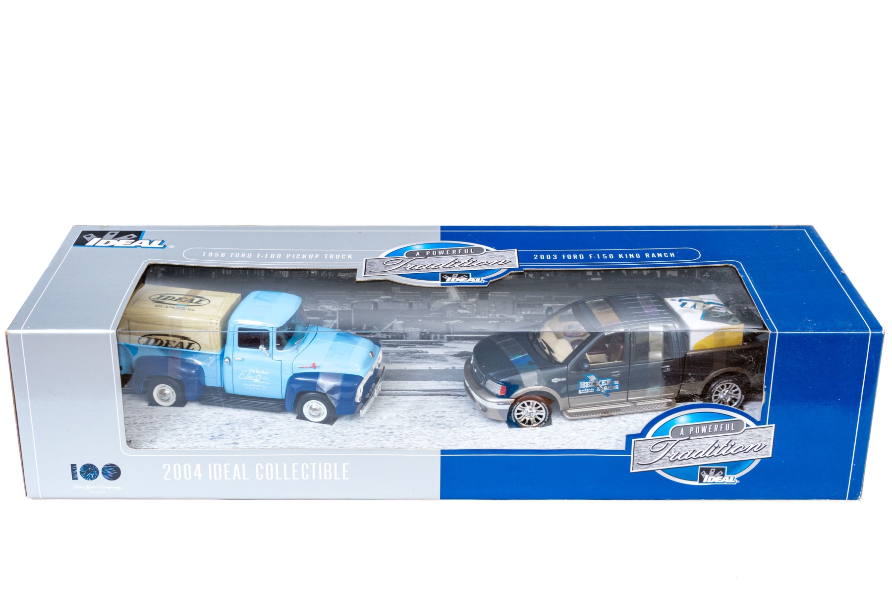 Ideal 2004 Collectible set including model cars of a 1956 Ford F-100 pickup truck and a 2003 Ford F-150 pickup truck.