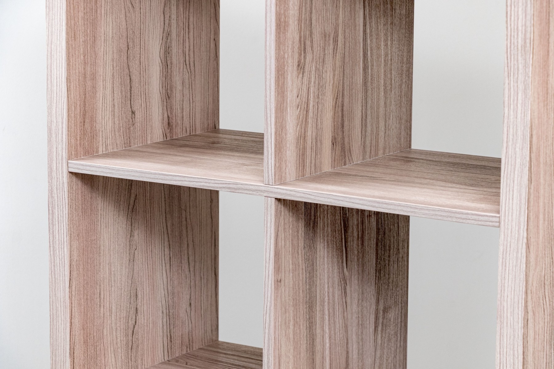 A lovely IKEA Kallax shelf unit in a white stained oak effect finish featuring eight square cubbies. Can be displayed vertically or horizontally to fit a wider range of dimensional needs.