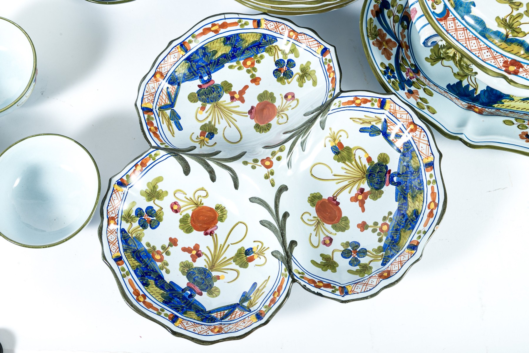Displays well. A handful of pieces have chipped rims, crazing, a few with hairlines.