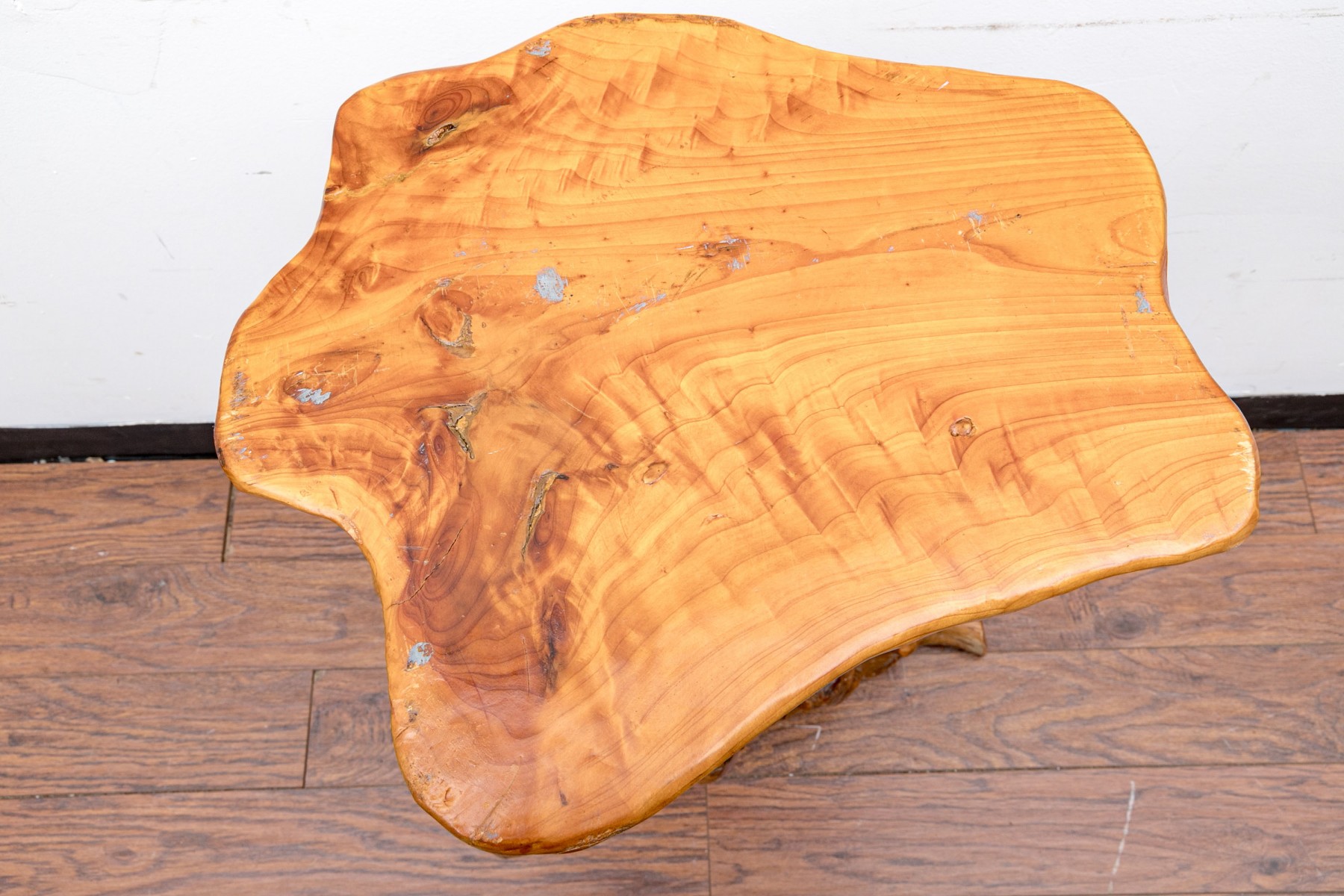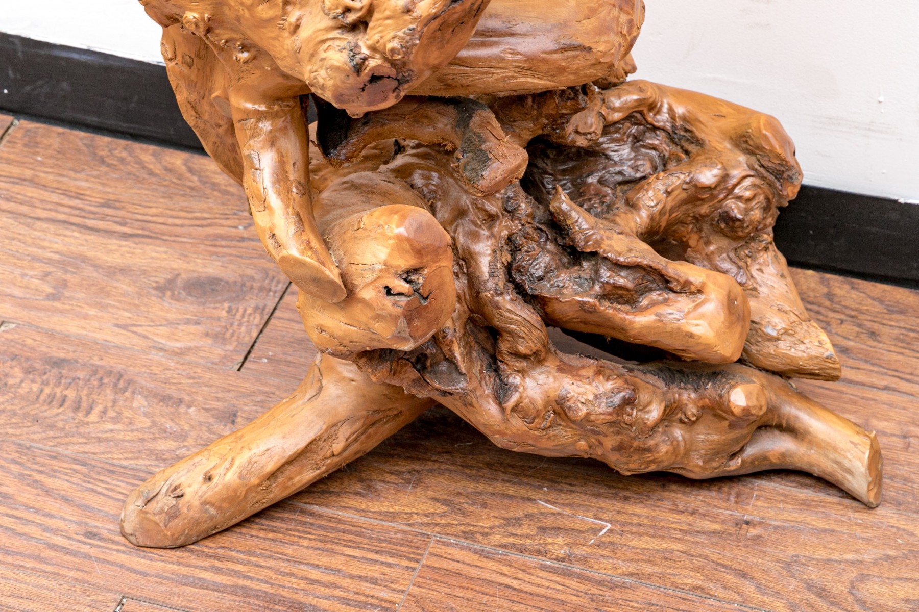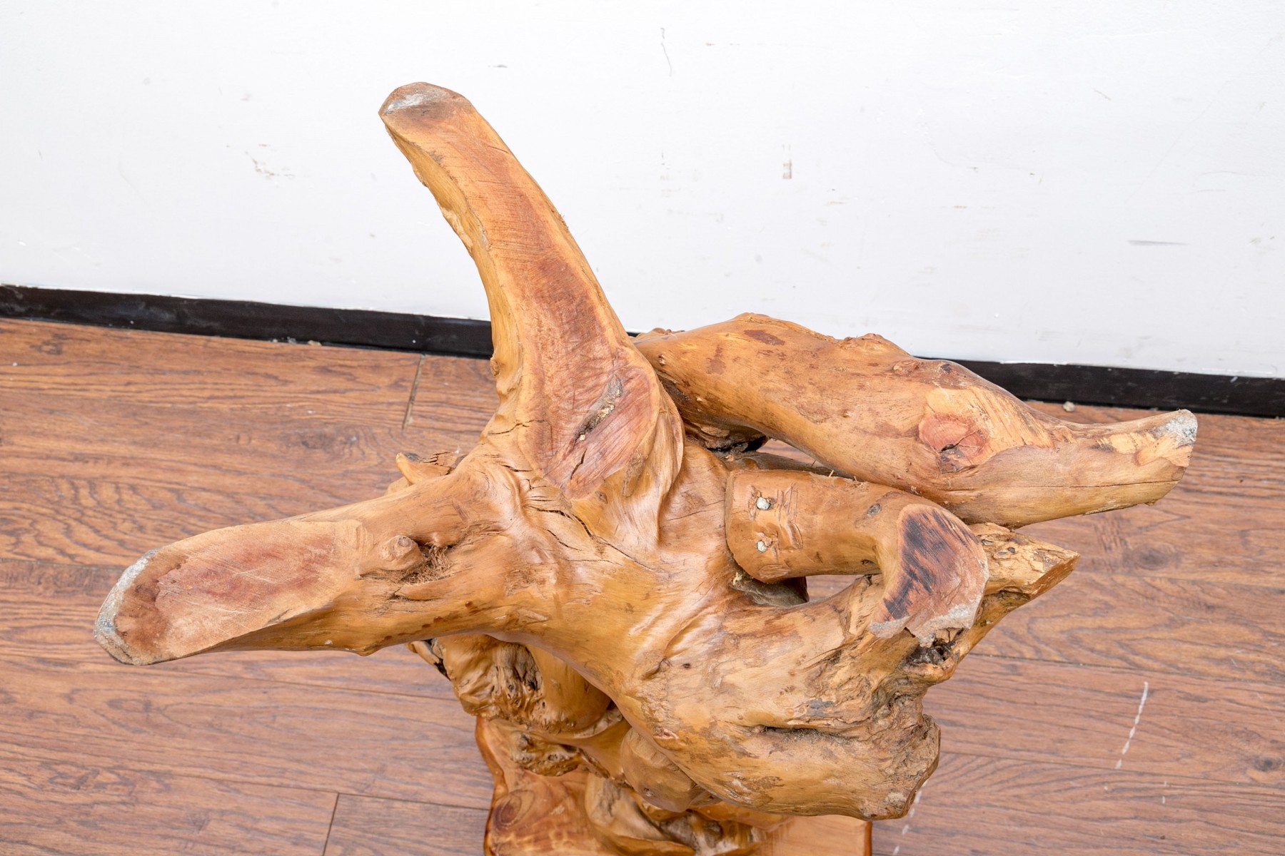 An impressive knotty wood stand in honeyed light brown, displaying intertwining branches for an organically flowing, asymmetrical form.